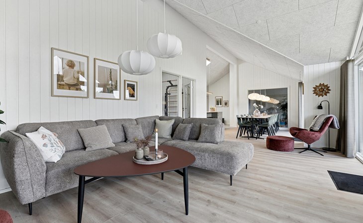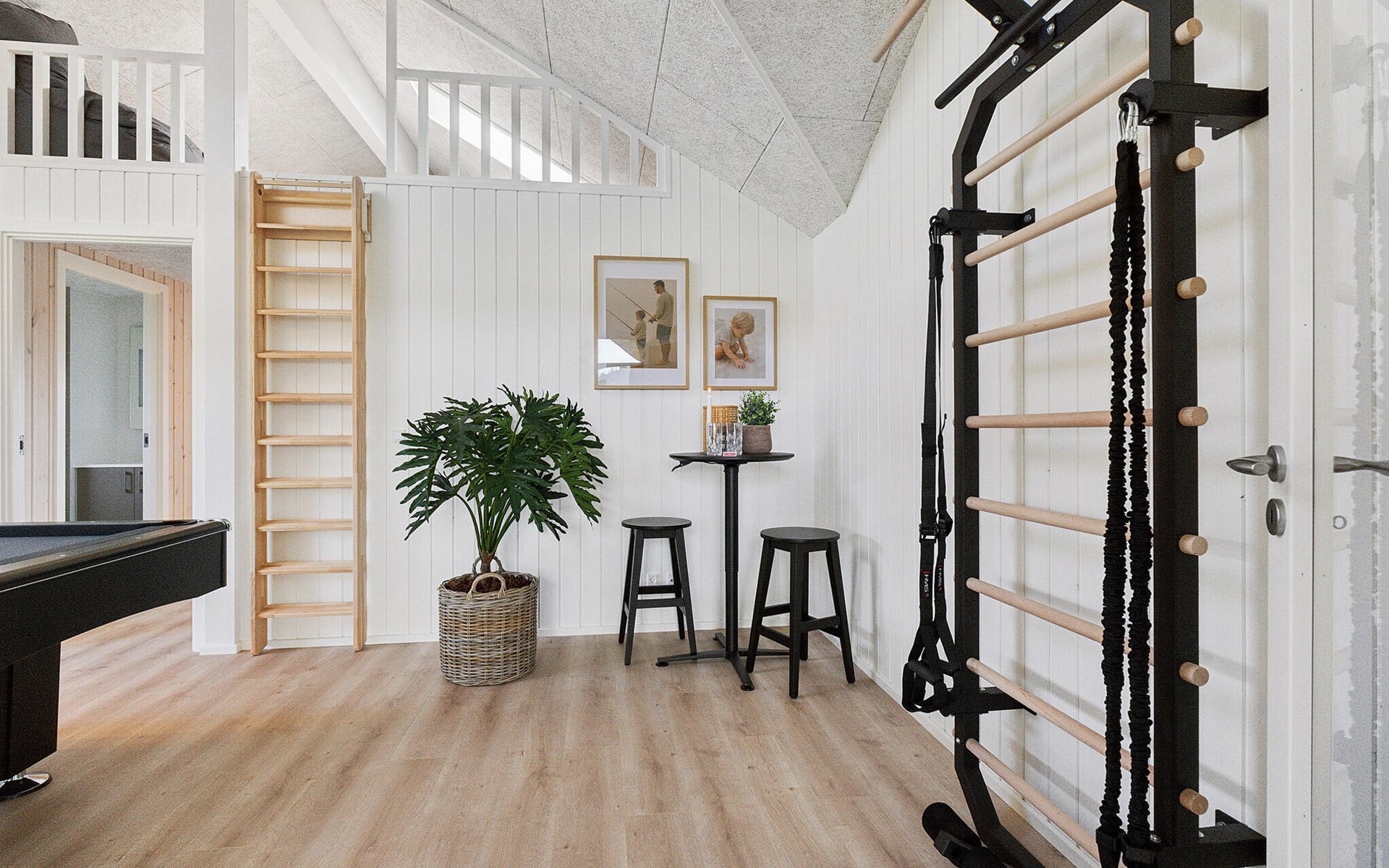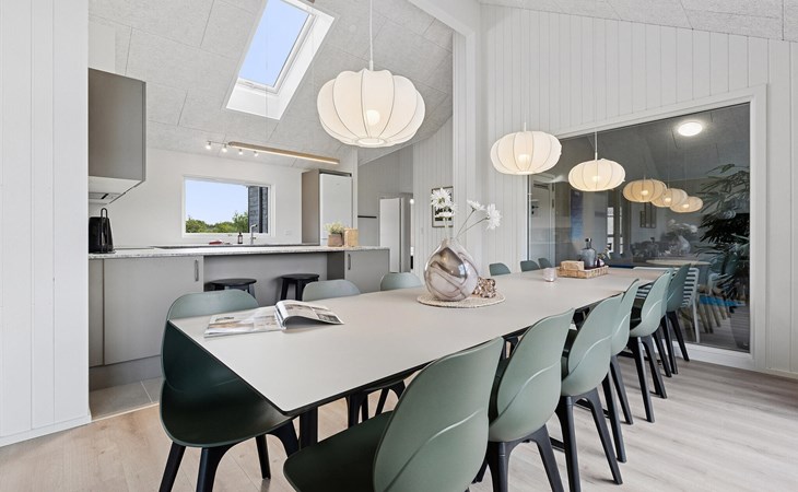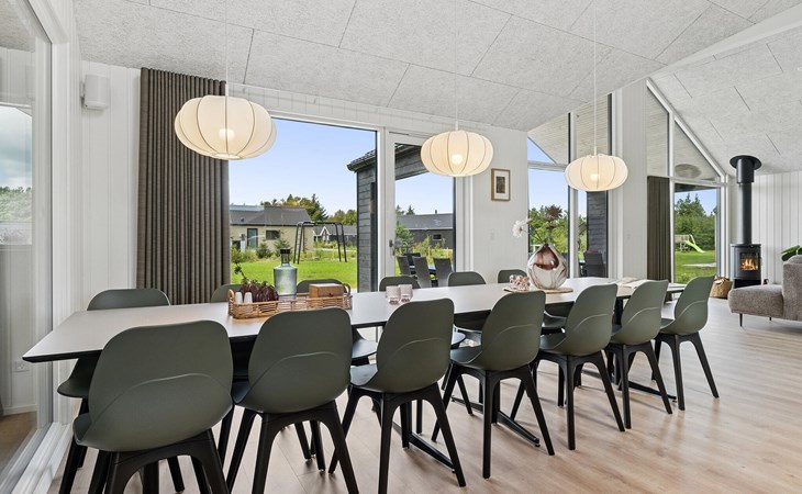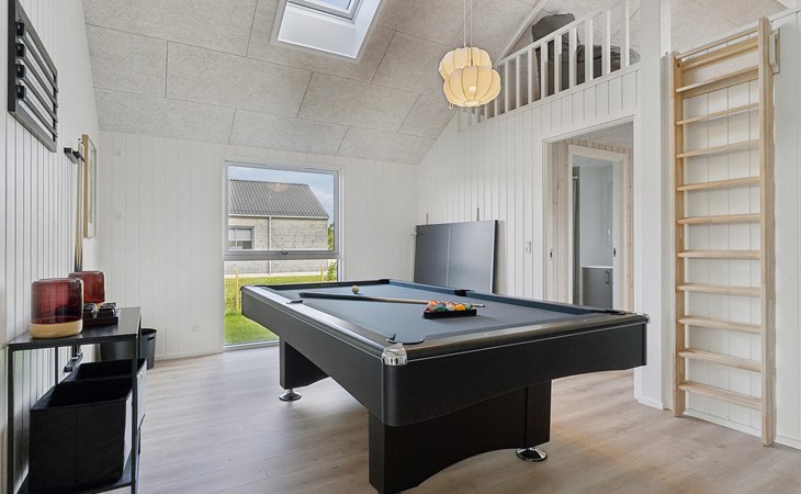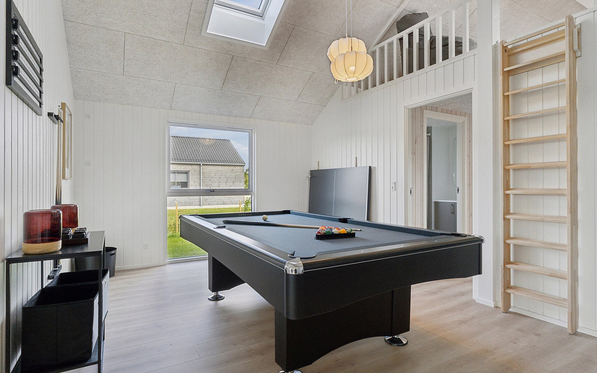 Geniet van een ontspannen vakantie in je stijlvolle, comfortabele vakantiehuis, dat veel ruimte biedt voor groepsactiviteiten en ontspanning. Het vakantiehuis ligt dicht bij de Noordzeekust en aan de rand van Blåbjerg Plantage. Strijk neer in de lichte woonkamer met zijn grote ramen en houtkachel. Ontspan op de zachte bank, kijk een film of geniet van gezellige avonden aan de eettafel met uitzicht op het terras. De open keuken is uitgerust met moderne apparatuur. Kook samen terwijl anderen de tafel al dekken of geniet van de ochtendzon bij het ontbijt. De activiteitenruimte met biljart, tv en slaapzolder zorgt ervoor dat je je nooit hoeft te vervelen. Een ander hoogtepunt is het privézwembad met een klein binnenzwembad voor het hele gezin.