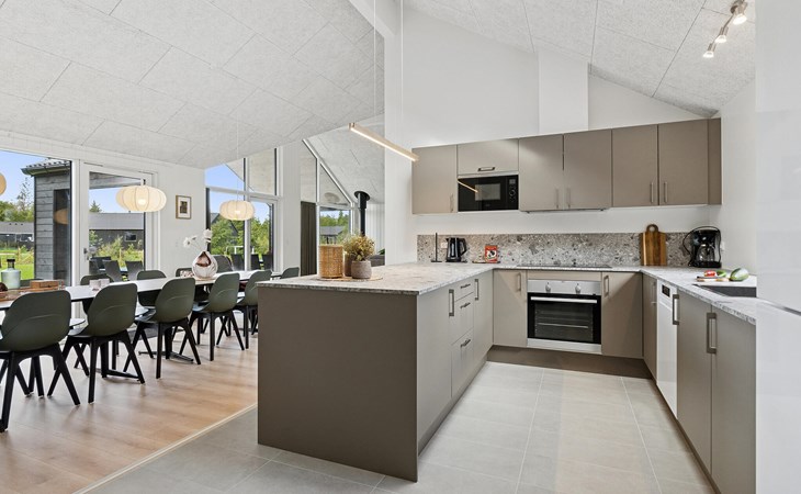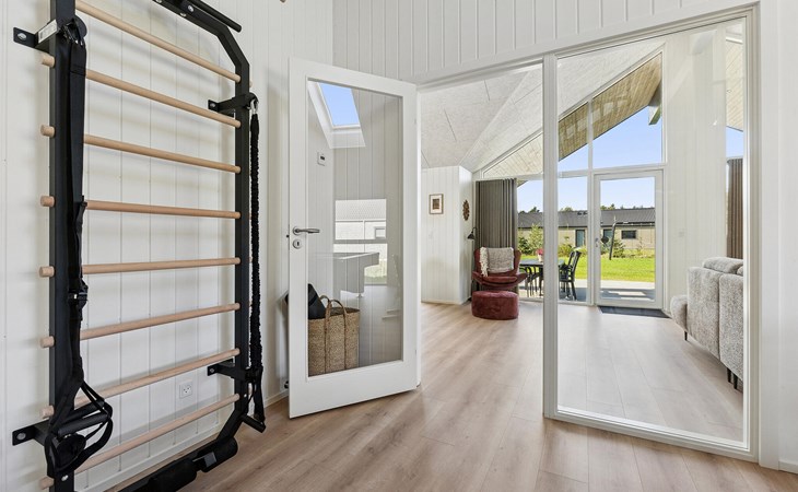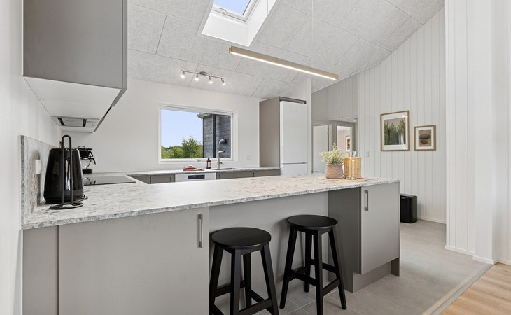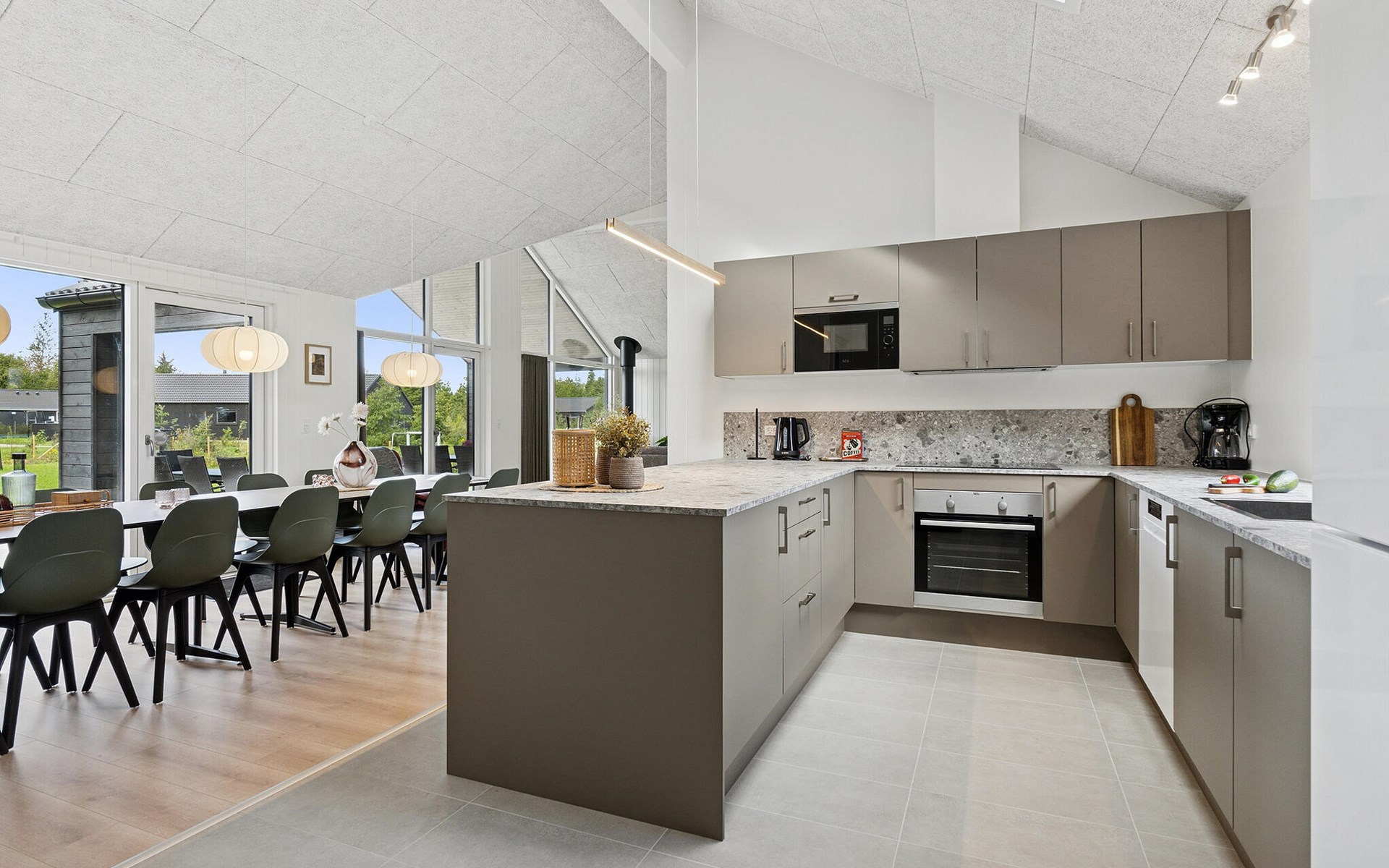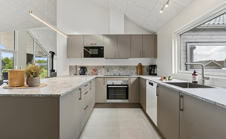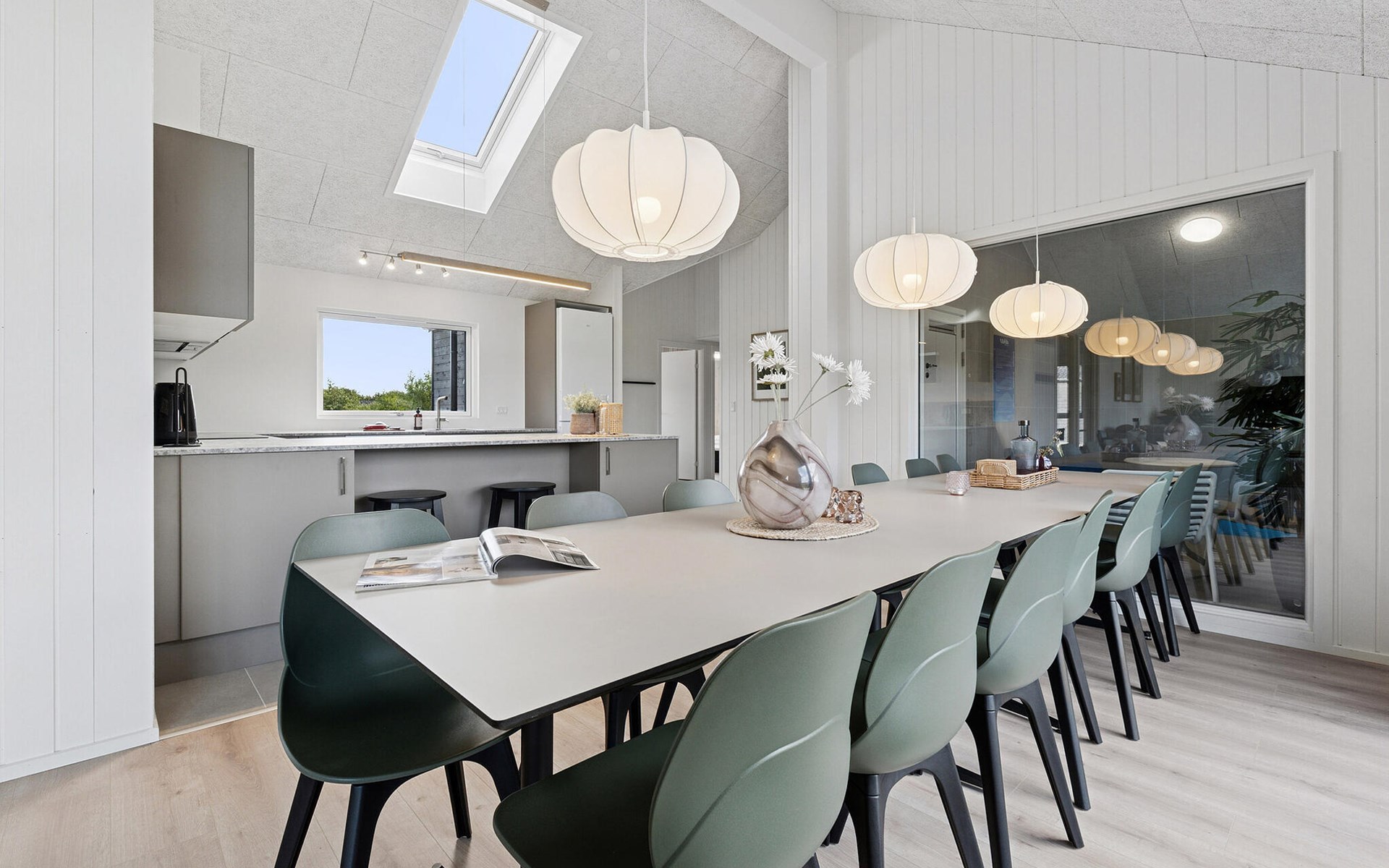Geniet van een ontspannen vakantie in je stijlvolle, comfortabele vakantiehuis, dat veel ruimte biedt voor groepsactiviteiten en ontspanning. Het vakantiehuis ligt dicht bij de Noordzeekust en aan de rand van Blåbjerg Plantage. Strijk neer in de lichte woonkamer met zijn grote ramen en houtkachel. Ontspan op de zachte bank, kijk een film of geniet van gezellige avonden aan de eettafel met uitzicht op het terras. De open keuken is uitgerust met moderne apparatuur. Kook samen terwijl anderen de tafel al dekken of geniet van de ochtendzon bij het ontbijt. De activiteitenruimte met biljart, tv en slaapzolder zorgt ervoor dat je je nooit hoeft te vervelen. Een ander hoogtepunt is het privézwembad met een klein binnenzwembad voor het hele gezin.