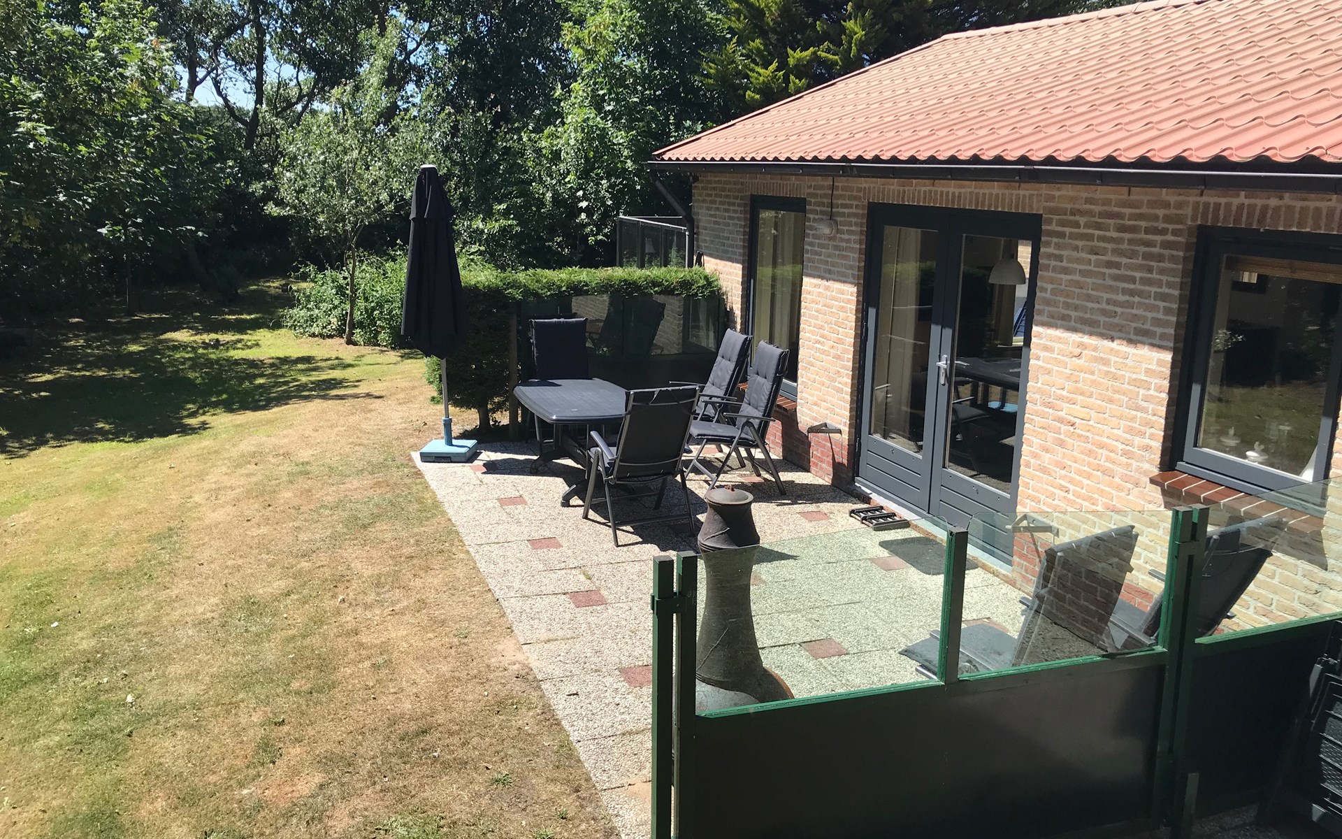 De bungalow staat op een royaal stuk eigen grond met terras. De tuin biedt veel privacy met terras op het zuiden en westen. Er is een eettafel met stoelen en 2 ligbedden. Er is eigen parkeergelegenheid. Niets staat een ontspannen verblijf in de weg!