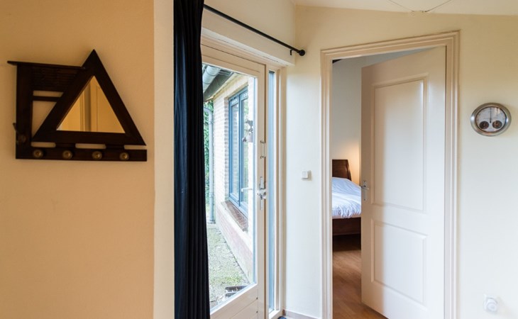 De wasmachine en droger staan in de bijkeuken net naast de keuken. Er is ook een strijkplank met een strijkijzer. Deze ruimte is tevens te bereiken via een buitendeur aan de oostzijde van de woning.