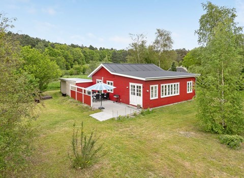 Dit klassieke houten vakantiehuis ligt in het vakantiegebied Skovmose.