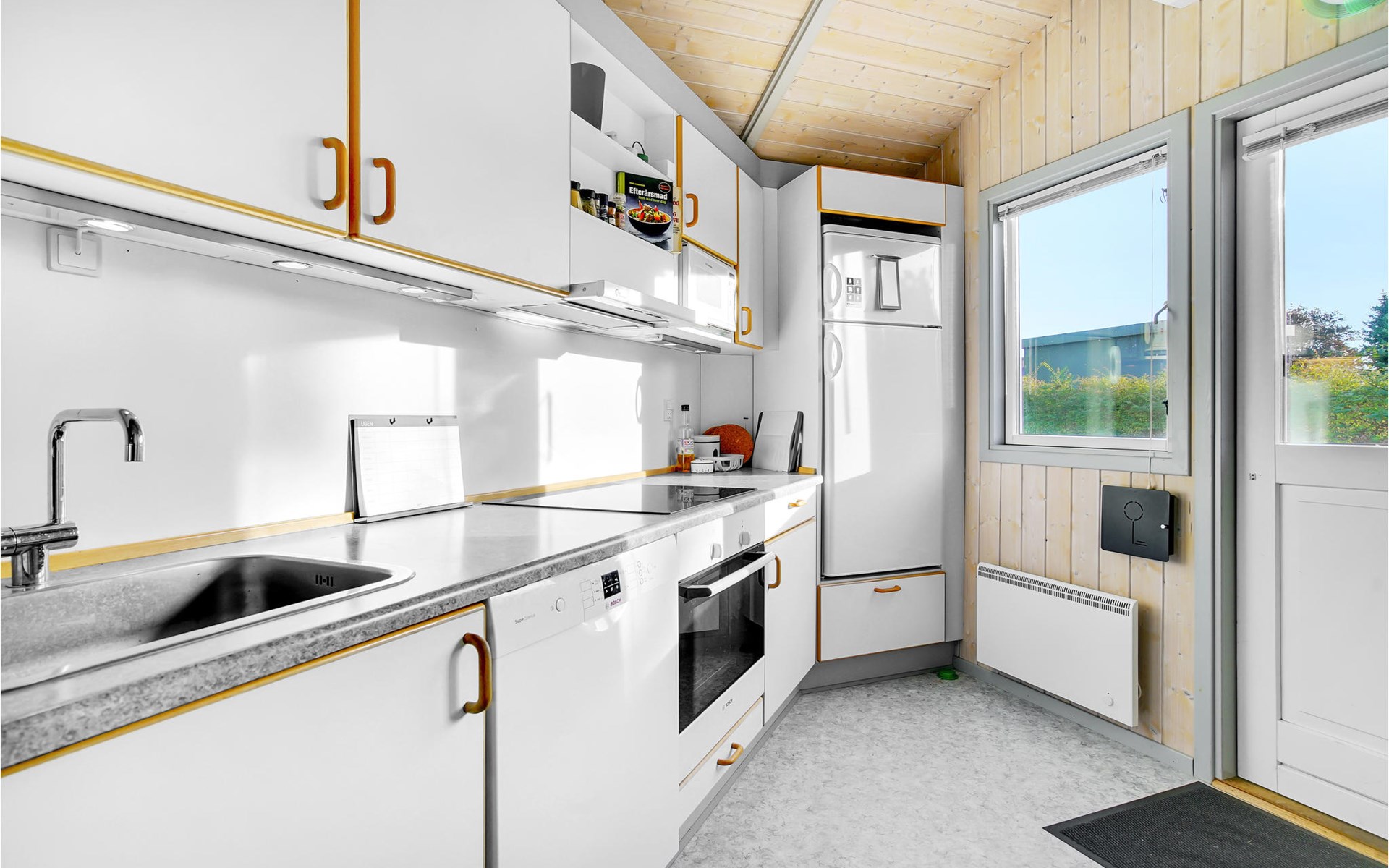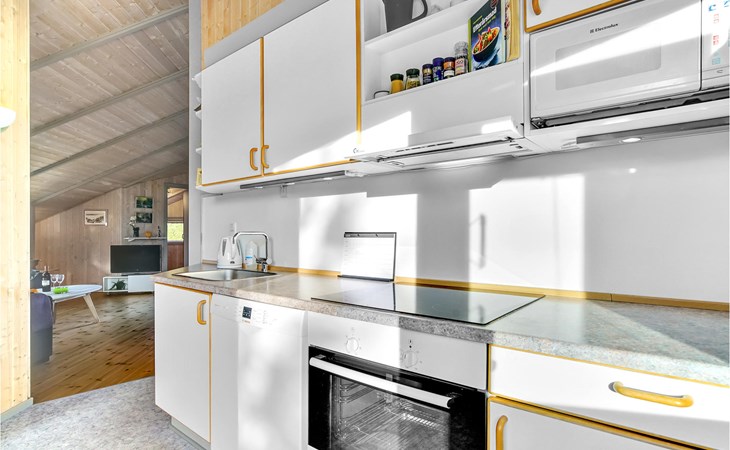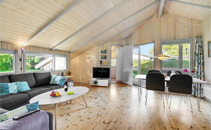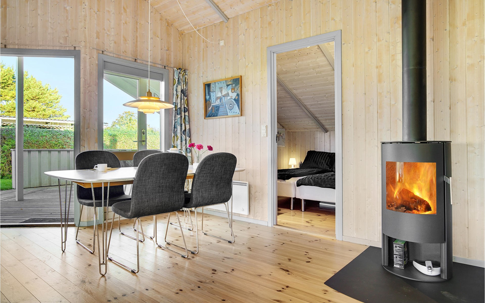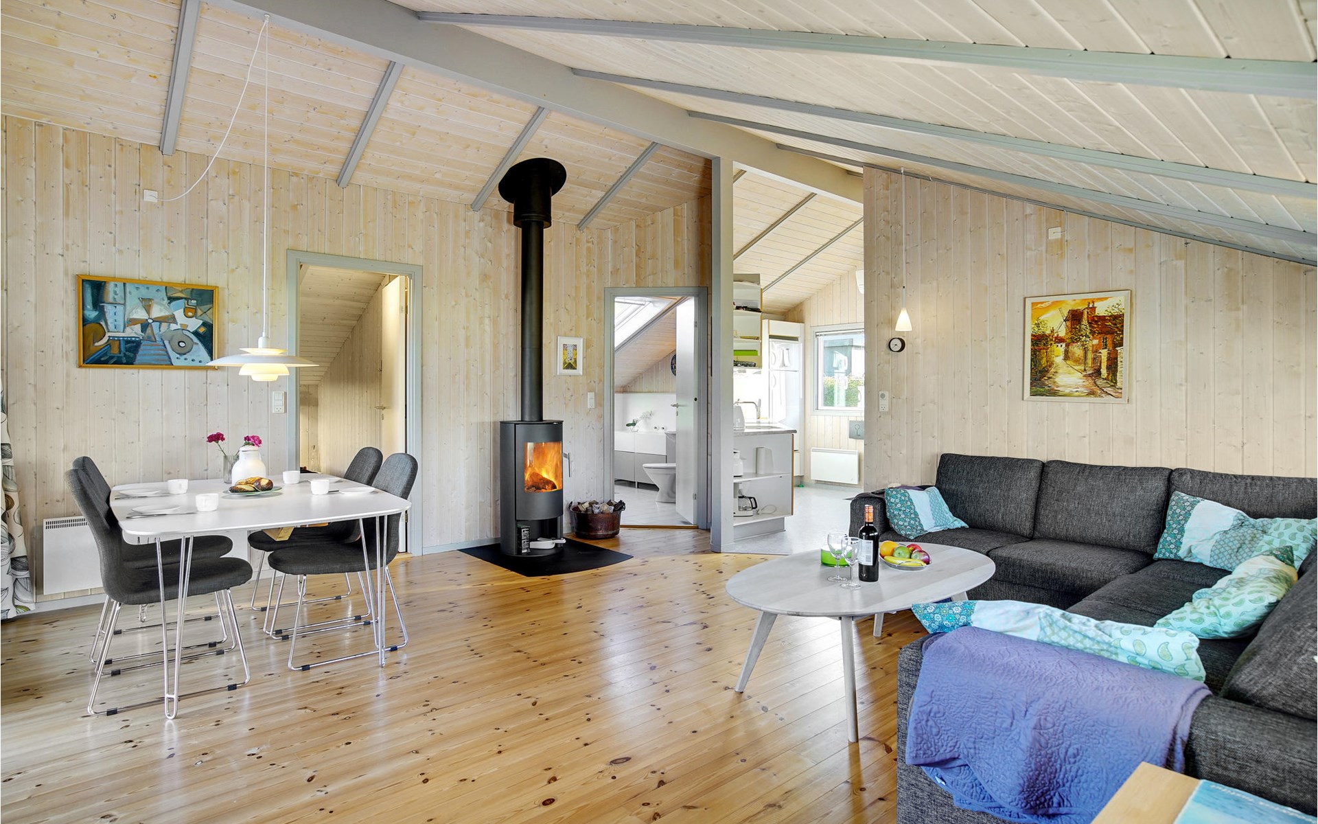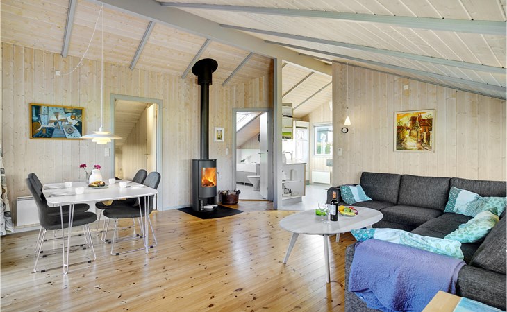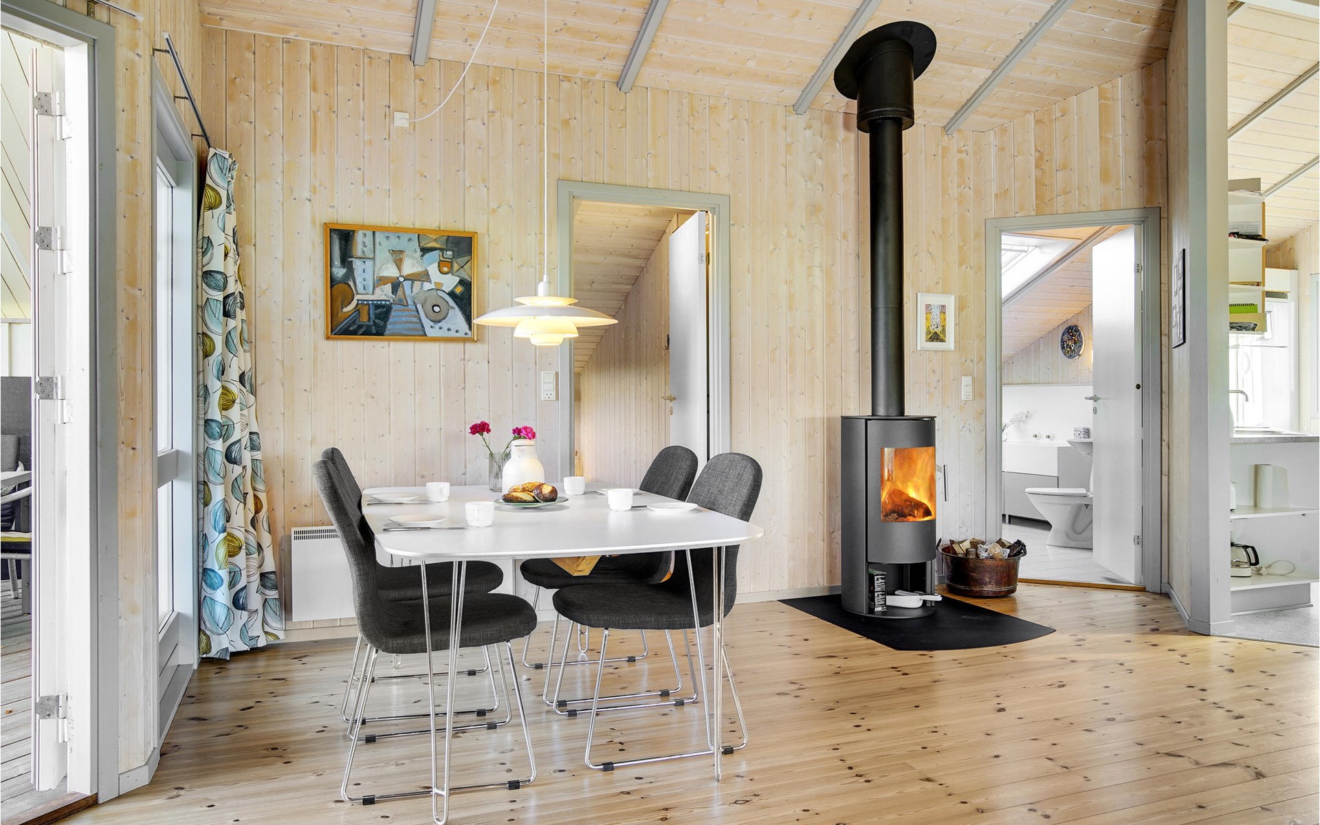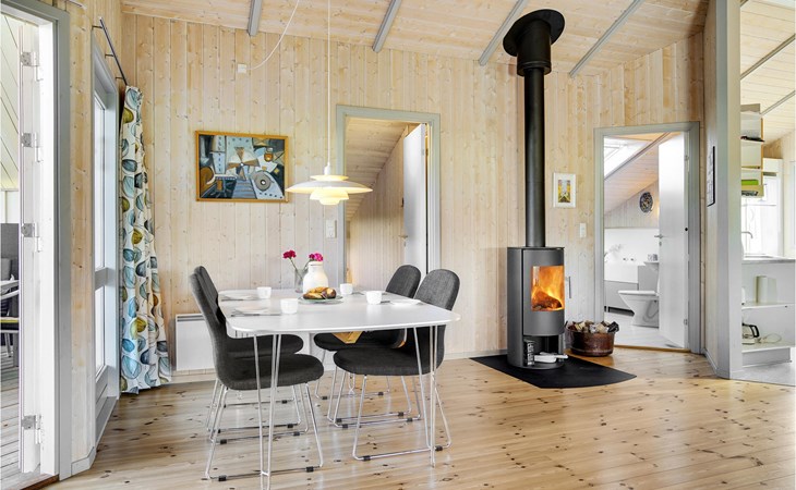 Het hart van het vakantiehuis is de gecombineerde woon- en eetkamer, waar u kunt samenkomen aan de eettafel voor spannende en onderhoudende bordspellen - of gewoon ontspannen voor de knisperende open haard. Of ontspan op het grote, overdekte terras voor gezellige avonden en heerlijke maaltijden terwijl de avondzon laag aan de hemel staat. De hartslag daalt in dit huis, terwijl de actieve gezinsleden zich kunnen verheugen op veel spel in de grote tuin en op de schommel.