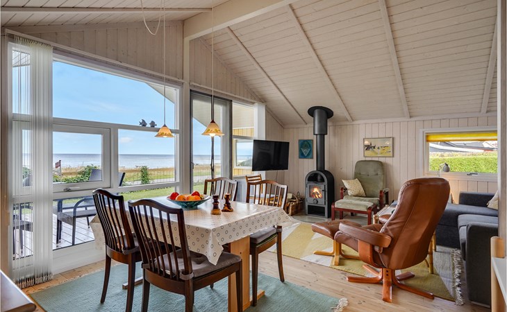 Licht vakantiehuis met houtkachel en panoramisch uitzicht, direct aan het strand gelegen.