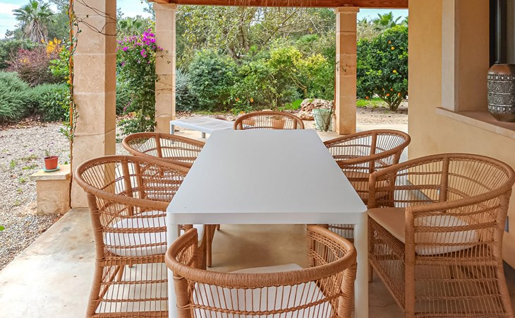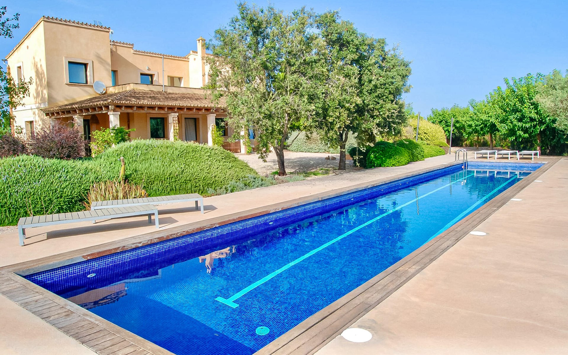 Mooie gedeeltes met grind en terrassen omringen deze finca, die een stijlvol vakantiehuis biedt voor maximaal 6 personen in het prachtige zuiden van Mallorca. Fruitbomen zoals granaatappels, pruimen en vijgen kenmerken het ruime terrein, net als rustieke olijfbomen. Je kunt comfortabel zitten in de lounge direct naast het huis of samen dineren aan de eettafel. Het 20 meter lange en uitzonderlijk grote zwembad is een geweldige plek om te sporten. Comfortabele ligstoelen op het omliggende zonneterras nodigen je uit om te ontspannen. Als je wilt, kun je hier ook wat natuurlijke schaduw vinden. Het balkonterras, waar ook comfortabele ligstoelen staan, biedt een weids uitzicht. Een gemetselde houtskoolbarbecue is beschikbaar voor barbecue-avonden.