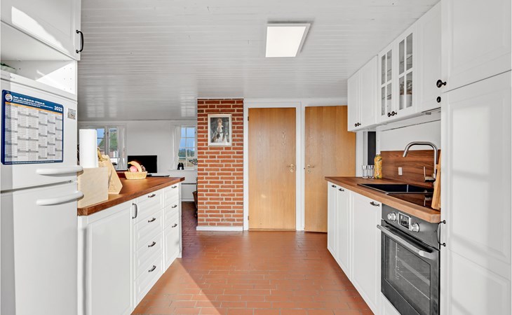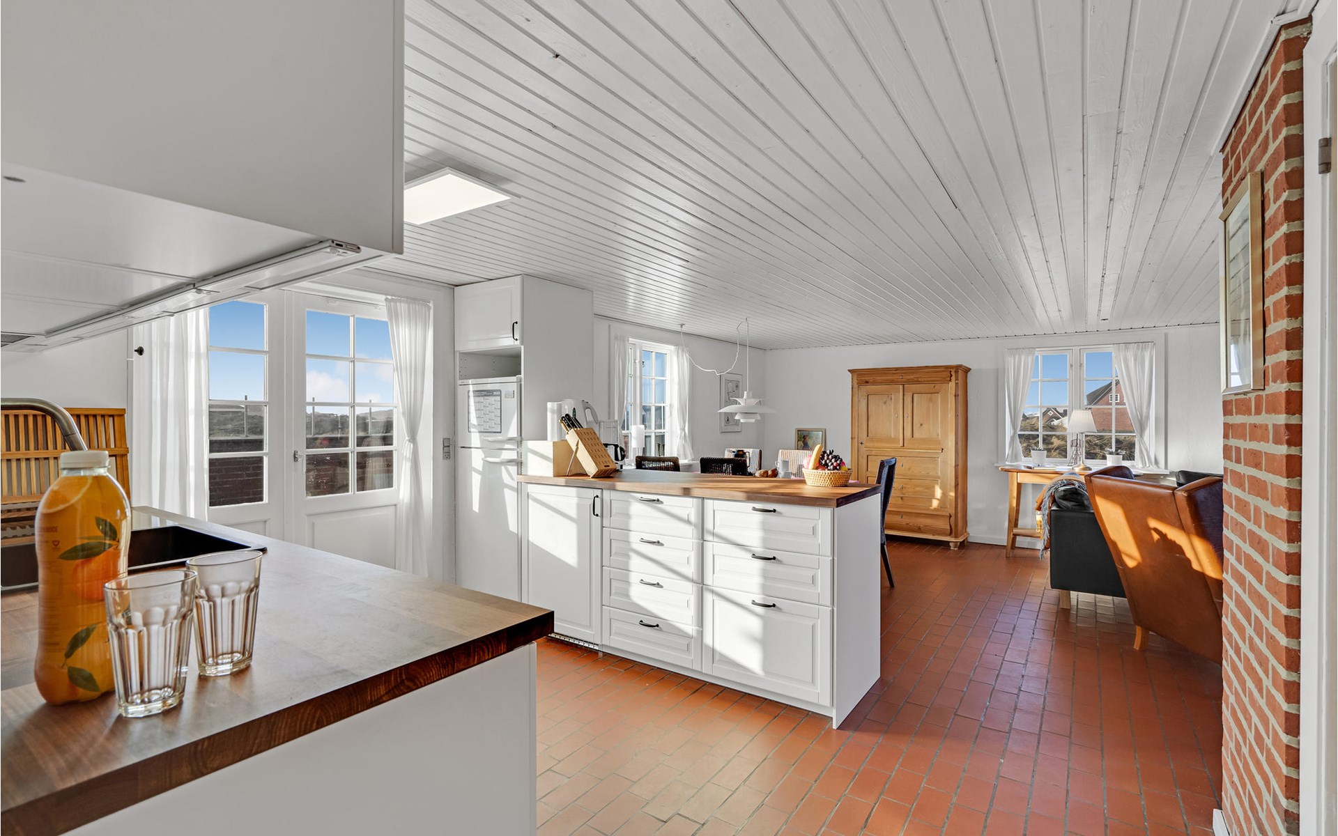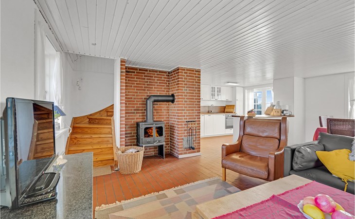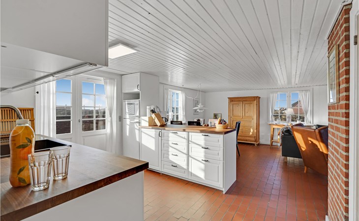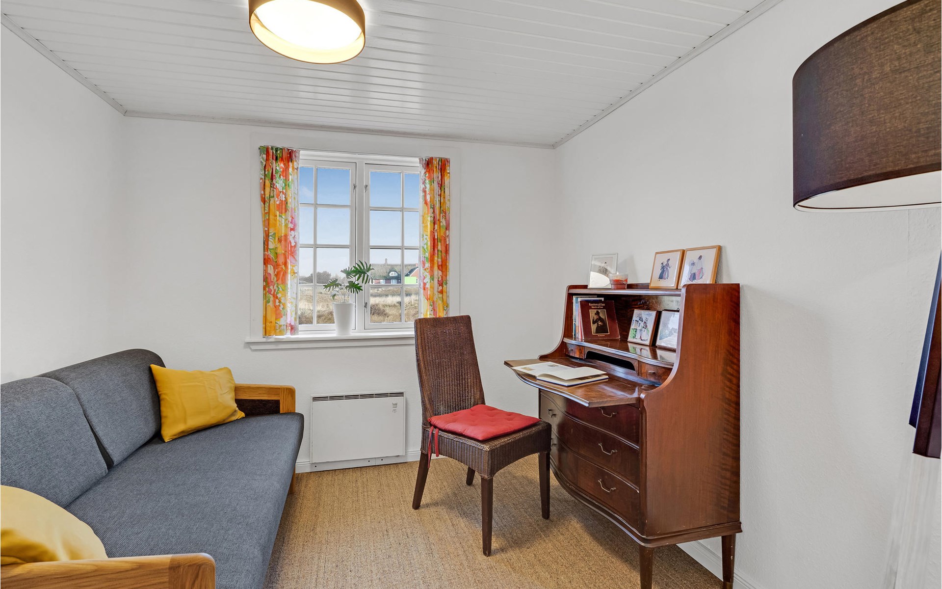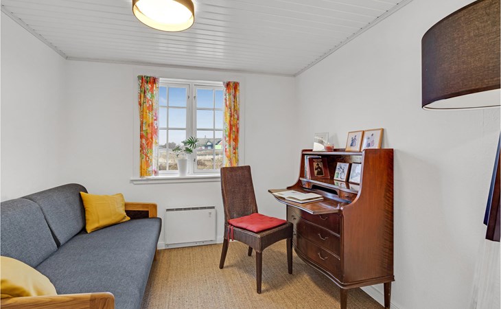 Dit typische Fanø-huis ligt op een prachtig natuurperceel en verwelkomt je met zijn gezellige inrichting en huiselijke sfeer. Geniet met je gezin van de mooie kamers op twee prachtige verdiepingen, die je 's avonds rust en ontspanning bieden en overdag vermaak en gezelligheid. Begin de dag met het bereiden van een heerlijk ontbijt voor het gezin in de grote, open keuken en sluit de avond af met een filmavond bij het knisperende haardvuur. Vanuit alle ramen op de begane grond heb je een fantastisch uitzicht op het omringende duinlandschap dat alleen geëvenaard kan worden door het uitzicht op de Noordzee op de 1e verdieping. Als je wat meer ruimte nodig hebt, kun je de kleine extra kamer gebruiken als kantoor of leeskamer. Ga naar buiten en geniet van de uren zon op het beschutte terras op het zuiden en lees een goed boek.