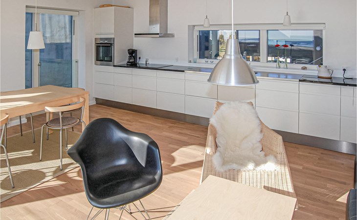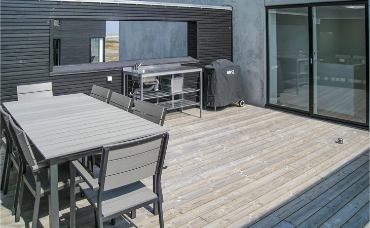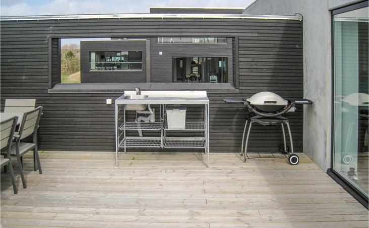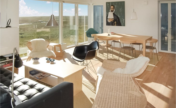 Exclusief vakantiehuis met een prachtig panoramisch uitzicht op de Waddenzee vanuit bijna het hele huis. De Waddenzee ligt voor de deur - het is een van de belangrijkste wetlands van Europa en een van de belangrijkste natuurgebieden van Denemarken. Het is een landschap van wetlands, strand, weilanden, duinen en een ongelooflijk diverse vogelpopulatie. In de verte kunt u het eiland Sylt zien liggen. Een paar honderd meter van het huis ligt aan de ene kant de idyllische haven van Havneby, met zijn kleine viswinkels en de regelmatige veerverbinding naar Sild, aan de andere kant vindt u golfbanen, tennisbanen en restaurants. In het verlengde van de promenade voor het huis lopen bovendien natuurpaden door het moeras- en dijklandschap. Het prachtige Sønderstrand, een van de breedste van Europa, ligt op slechts 2 km afstand, waar u een breed scala aan recreatieve activiteiten vindt. Het huis is gebouwd in 2009 en maakt deel uit van het bekroonde, moderne, milieubewuste architectuurproject 'Sorte Sol' (Zwarte Zon). Alleen al het wonen in zo'n interessant gebouw is een belevenis op zich. Bij de bouw en inrichting zijn eersteklas materialen gebruikt, het interieur harmonieert met de architectuur, is licht en informeel Scandinavisch van opzet. De grote keuken-woonkamer is van alle gemakken voorzien en heeft bijvoorbeeld op afstand bedienbare rolluiken. Verder heeft het huis 4 slaapkamers met bureaus in 2 slaapkamers en een badkamer op elke verdieping. De flatscreen-tv met dvd-speler is draagbaar en kan in alle kamers worden aangesloten. Tot slot heeft u een geweldig uitzicht op het platteland op het grote zonneterras, er is hier ook een buitenkeuken en een eethoek. Het huis is perfect voor 2 gezinnen om te ontspannen en tot rust te komen, u kunt hier zelfs in alle rust werken. Excursies zijn ook gemakkelijk te regelen vanaf hier. Golfers vinden een van de mooiste 18-holes linksbanen op een paar 100 meter van het huis en bij Sønderstrand kunt u kitesurfen, strandzeilen, deltavliegen en nog veel meer. U heeft veel mogelijkheden om de unieke natuur van Rømø te verkennen. Wat dacht u van een boottocht naar het eiland Sild met de veerboot Rømø-Sild.