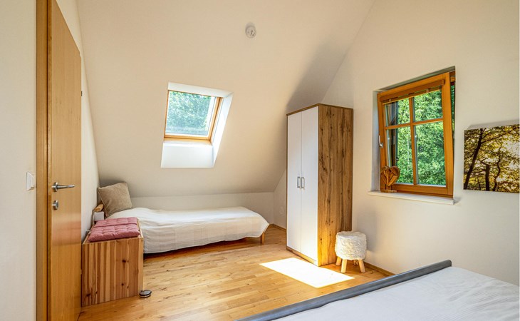 wandelpaden, is dit vakantiehuis het ideale uitje voor gezinnen, actieve vakantiegangers en kenners. Ontspan in de lichte kamers onder decoratieve houten plafonds, een comfortabele bank nodigt u uit om uw voeten omhoog te leggen na een bewogen dag en geniet van de rustgevende stilte.