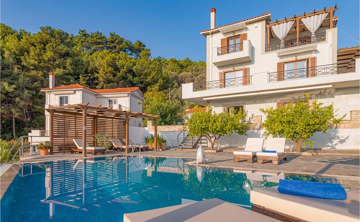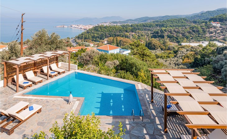Dit moderne vakantiehuis ligt in de buurt van het pittoreske dorpje Kokkari. Het is minimalistisch maar tegelijkertijd zeer smaakvol ingericht en heeft voldoende ruimte voor maximaal negen personen. De tuin rondom het huis en het zwembad is een aangenaam rustige plek om te vertoeven. Geniet van een drankje bij het zwembad terwijl u de zon onder ziet gaan. U kunt uw ontbijt en diner nuttigen op een van de overdekte terrassen met een adembenemend uitzicht op zee. Het eiland Samos, de woonplaats van Pythagoras, staat bekend om zijn archeologische vindplaatsen, die hier alomtegenwoordig zijn. Profiteer van verschillende stranden met kristalhelder zwemwater en verheug u op heerlijke visgerechten in traditionele taverna's. De dorpen Puthagorion en Kokkari zijn zeker een bezoek waard. Wandelliefhebbers zitten hier goed: Samos wordt gekenmerkt door tal van natuurpaden. Er is voor elk type wandelaar wat wils.