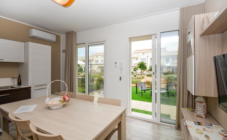 Je kunt een verfrissende duik nemen in het grote gemeenschappelijke zwembad nadat je hebt genoten van een ijsje op je terras. Of je wandelt naar het nabijgelegen zandstrand en duikt zo de zee in.