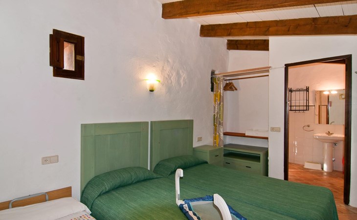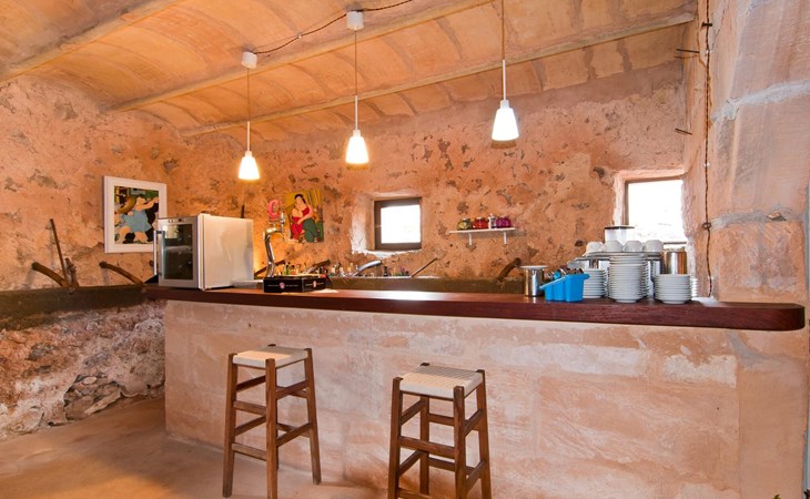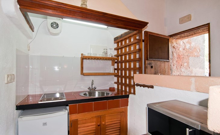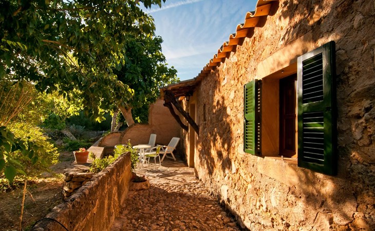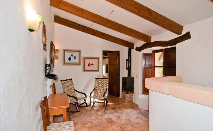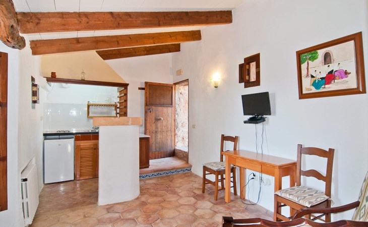 Misschien is het Sa Porquera, dat ooit het opfokcentrum was voor de biggetjes van het landgoed. Kort voor de geboorte werden de moedervarkens naar deze schuur gebracht om hen en de biggen te helpen. De varkenshouder woonde vlakbij in Es Porque en kon dus snel ter plaatse zijn als hij nodig was. De stenen voederbakken van de biggen zijn vandaag de dag nog steeds te zien op het terras. Je Son Sureda verblijf zou bestaan uit een slaapgedeelte met twee bedden van 0,9 x 2 meter, een badkamer met douche en een woonkamer met typisch Mallorcaanse schommelstoelen en een kleine eettafel. Op dagen dat je de hele dag op het terrein wilt blijven, kun je snacks, salades en kleine maaltijden bereiden in de kitchenette met koelkast, twee keramische kookplaten, magnetron en koffiezetapparaat. Vanaf het terras heb je een prachtig uitzicht op het groen en kun je volledig ontspannen aan tafel of op een van de comfortabele ligstoelen. Gun jezelf een adempauze met een goed boek tussendoor. En er zijn een aantal bestemmingen die de moeite waard zijn: Stadsleven of zeebries? Vanuit je villa-accommodatie kun je gemakkelijk de verschillende kanten van het eiland verkennen. Op ruim 15 kilometer afstand liggen de stranden te wachten op zonaanbidders, surfers en gezinnen. Het uitgestrekte Son Serra de Marina en het bijna twee kilometer lange zandstrand in de richting van Colònia de Sant Pere bieden genoeg ruimte om meer dan alleen een handdoek uit te spreiden. Als je van bovenaf wilt genieten van de blauwe tinten, rijd dan naar Betlem en beklim de 5 kilometer naar de kleine Ermita. Natuurlijk zijn er ook meer uitdagende routes voor wandelschoenen en mountainbikes. De Ma-3322, die soms hoorbaar is afhankelijk van de windrichting, brengt je naar het stadje Manacor voor een spontaan uitstapje naar het historische centrum of om te winkelen op de vitaminemarkt. Als je de kathedraal in Palma wilt bezoeken, laat je de auto gewoon achter bij het treinstation en neem je de bus of de trein. Vakantiehuis op het platteland met veel natuur voor villa gasten. Voel je thuis op het landgoed Son Sureda agroturismo, dat tussen schapenweiden en wijngaarden ligt en elf zelfstandige appartementen en studio's, een grote U-vormige binnenplaats en meerdere zwembaden heeft. Manacor, een van de metropolen van het eiland, ligt op slechts 9 km afstand. Het is ideaal om te winkelen op de dagelijkse fruit- en groentemarkt, voor excursies en een ontspannen diner in een restaurant. En op de Badia dAlcúdia, in de richting van Son Serra de Marina en Colònia de Sant Pere, vind je nog enkele stranden die nog niet overvol zijn.