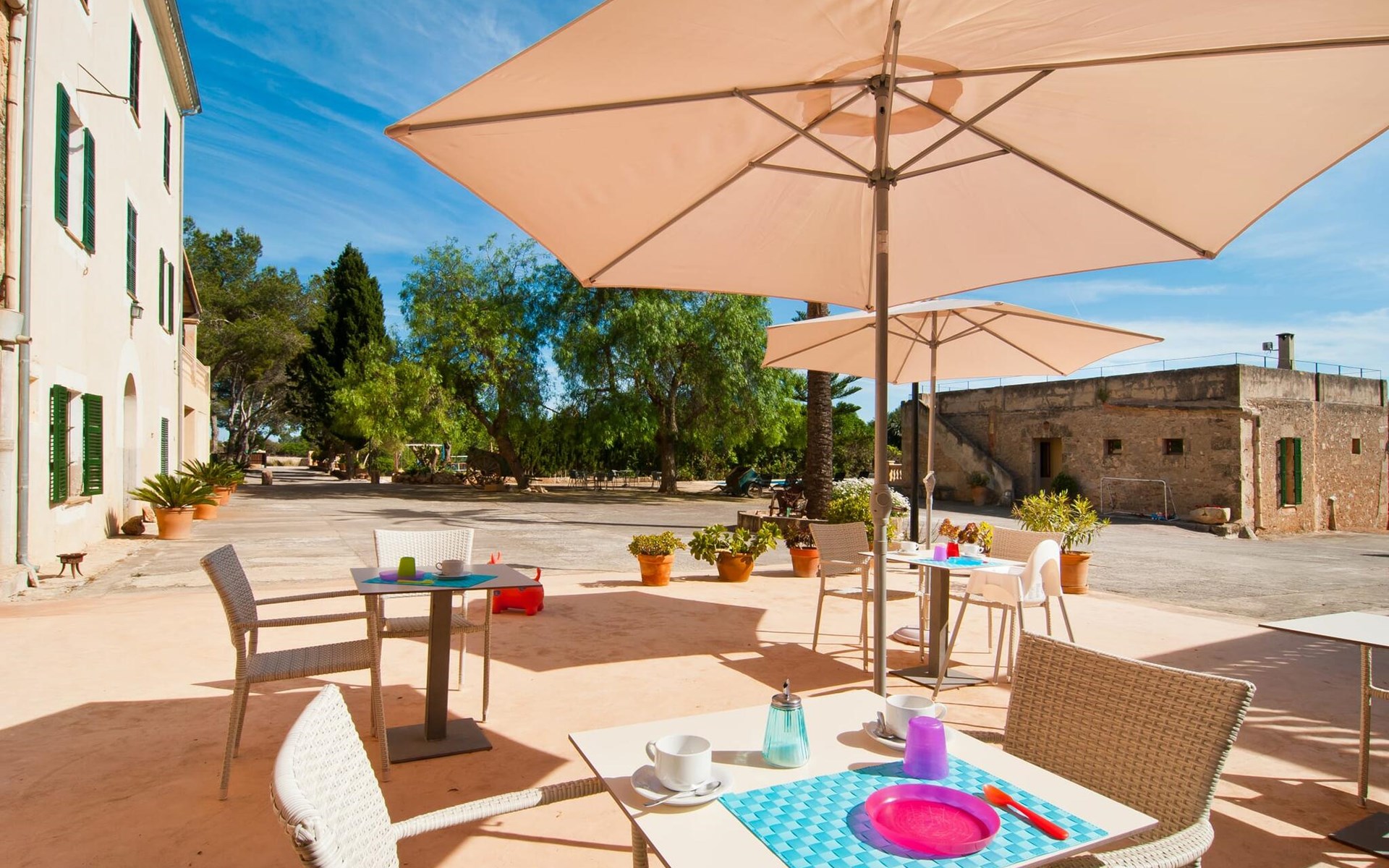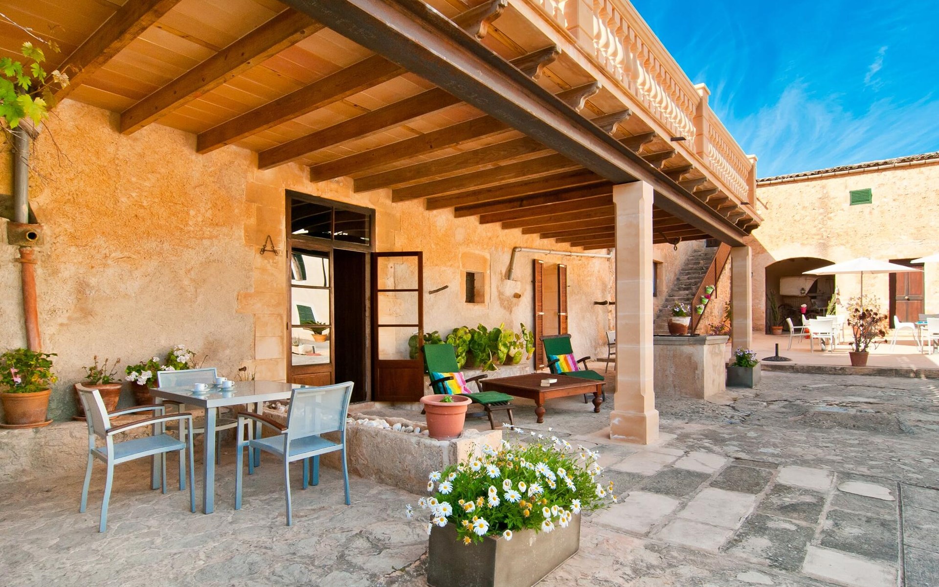 Het indrukwekkende landgoed Son Sureda, met zijn 1.500.000 m², heeft zich na 500 jaar landbouw, wijnbouw en veeteelt aangepast aan vakantiegasten van alle leeftijden. De namen van de elf vakantiewoningen, die verdeeld zijn over het hoofdgebouw, de burgemeesterswoning en de bijgebouwen met een of twee tweepersoonskamers, verwijzen nog naar hun vroegere gebruik. Tijdens je wandelingen rond de oude muren ontdek je veel oude paardenkoetsen en interessante landbouwwerktuigen. Je kunt genieten van je privacy op je eigen kleine terrassen op de begane grond of met uitzicht en hebt de mogelijkheid om andere vakantiegangers te leren kennen aan de vele tafels en stoelen of bij de gemeenschappelijke barbecue op de grote binnenplaats. Je kunt je Mallorca-ochtend beginnen in de indrukwekkende gewelven (de voormalige paardenstallen) of buiten op het open terrein met een uitgebreid, typisch eilandontbijt, dat je kunt bestellen. Twee zwembaden met ligstoelen en buitendouches, een peuterbad, een speeltuin met schommels, zandbak, klimrek, voetbalveld en kippenhokken zorgen voor ontspanning voor alleenreizenden en koppels, maar ook voor boerderijvakanties voor gezinnen. We zijn er zeker van dat er een flat is die perfect bij je past.
