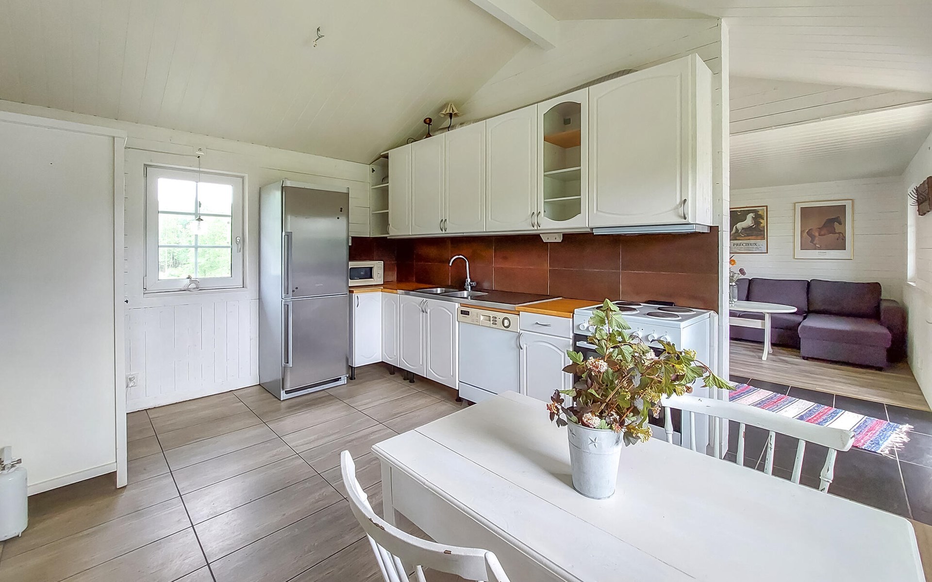 Kom aan met je gezin en stap binnen in het charmante houten huis. Het gezellige interieur biedt je een warme en uitnodigende sfeer, ideaal voor gezinnen. Kom 's ochtends samen voor een heerlijk ontbijt in de eetkeuken en plan je activiteiten voor de dag aan de eettafel.