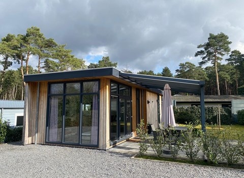 Tiny Lodge TL118 beschikt over een elektrische hottub en een sauna in de tuin én de tuin is volledig omheind