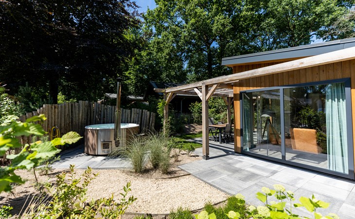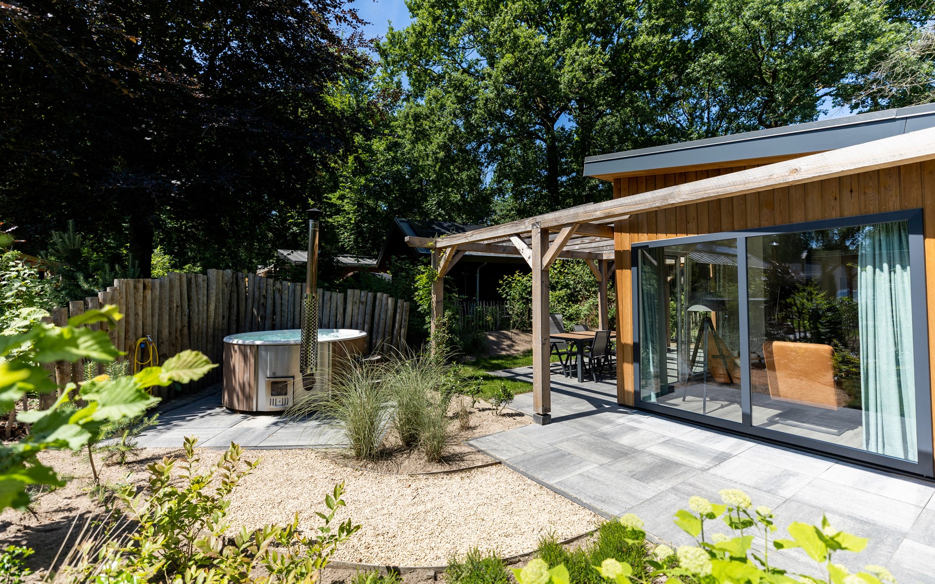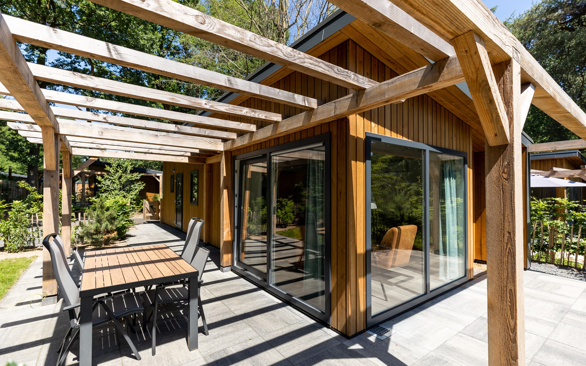 Maak kennis met ons type accommodatie de Heide Lodge Eco met een pergola, Luxe, ruim opgezet, duurzaam gebouwd, stijlvol, volledig gas los en met een hottub in de tuin! Geschikt voor 4 personen. Hieronder vindt u bij ‘Details’ woning specifieke informatie.