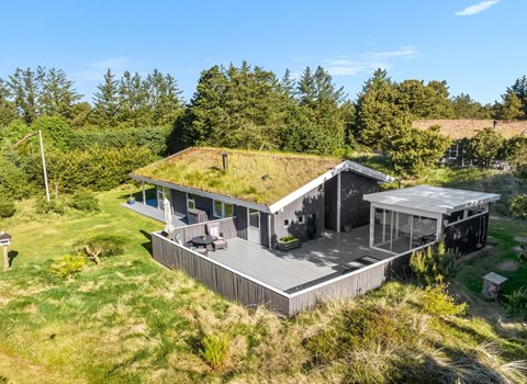 Op een groot, open natuurperceel in Blåvand ligt dit gezellige huis met rieten dak en moderne inrichting. De terrassen zijn overdekt, zodat u zelfs bij regenachtig weer buiten kunt zitten en barbecueën. Er is een whirlpool en sauna in het huis, dus het is een goede uitvalsbasis voor een ontspannende vakantie. Op de 1e verdieping is er een activiteitenruimte waar u vele gezellige uurtjes kunt doorbrengen. Het huis biedt 3 slaapkamers en een alkoof met 2 slaapplaatsen op de 1e verdieping, evenals een gastentoilet.