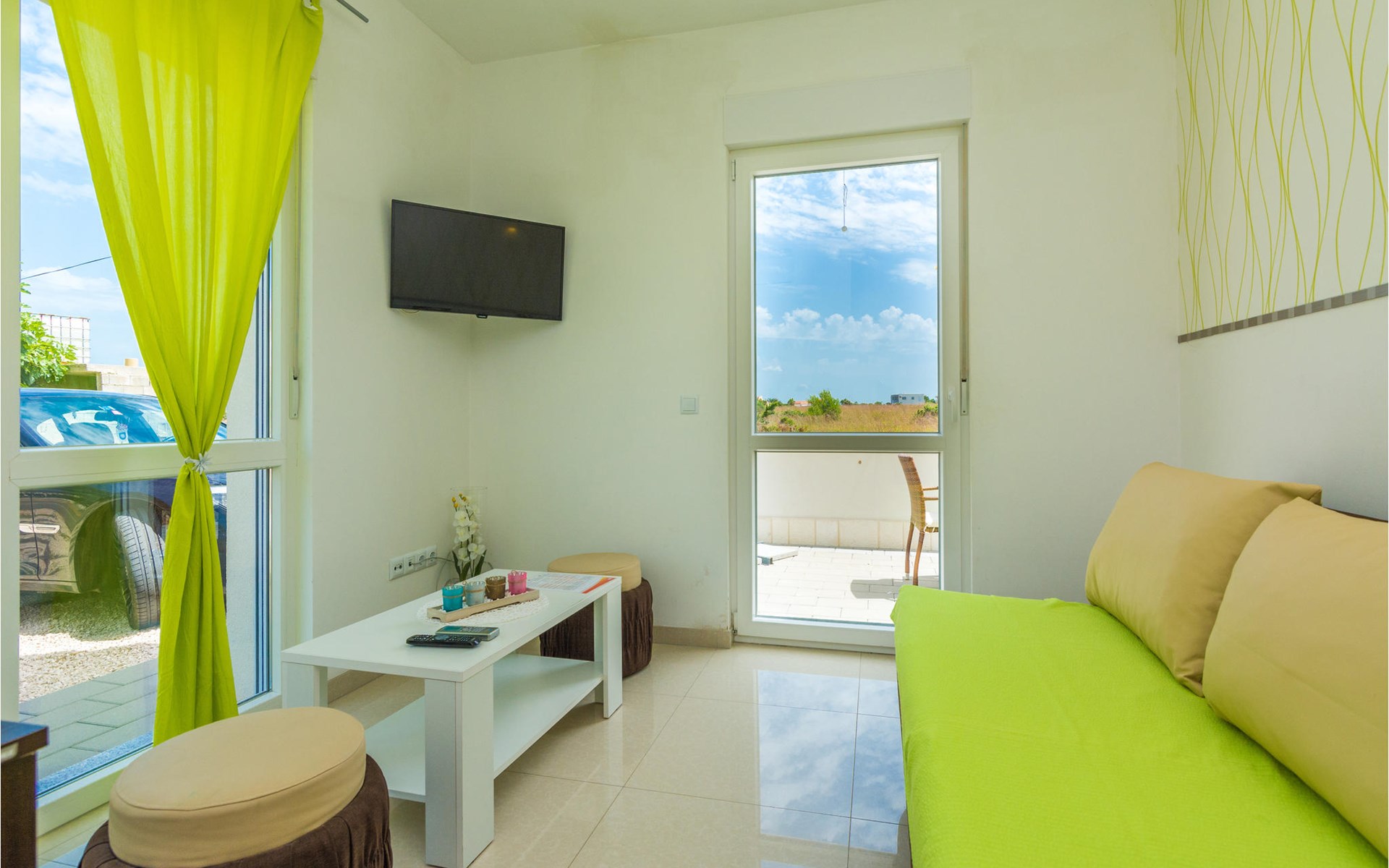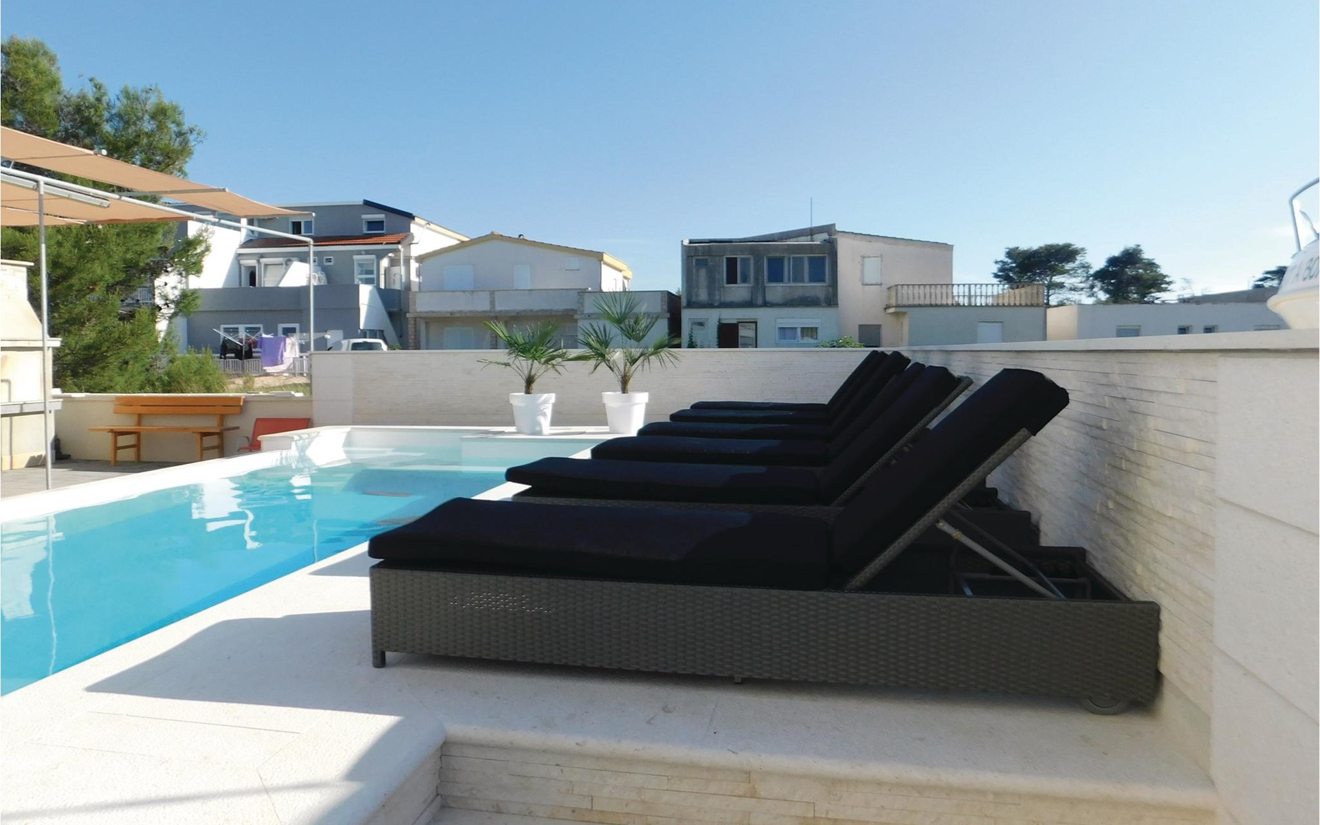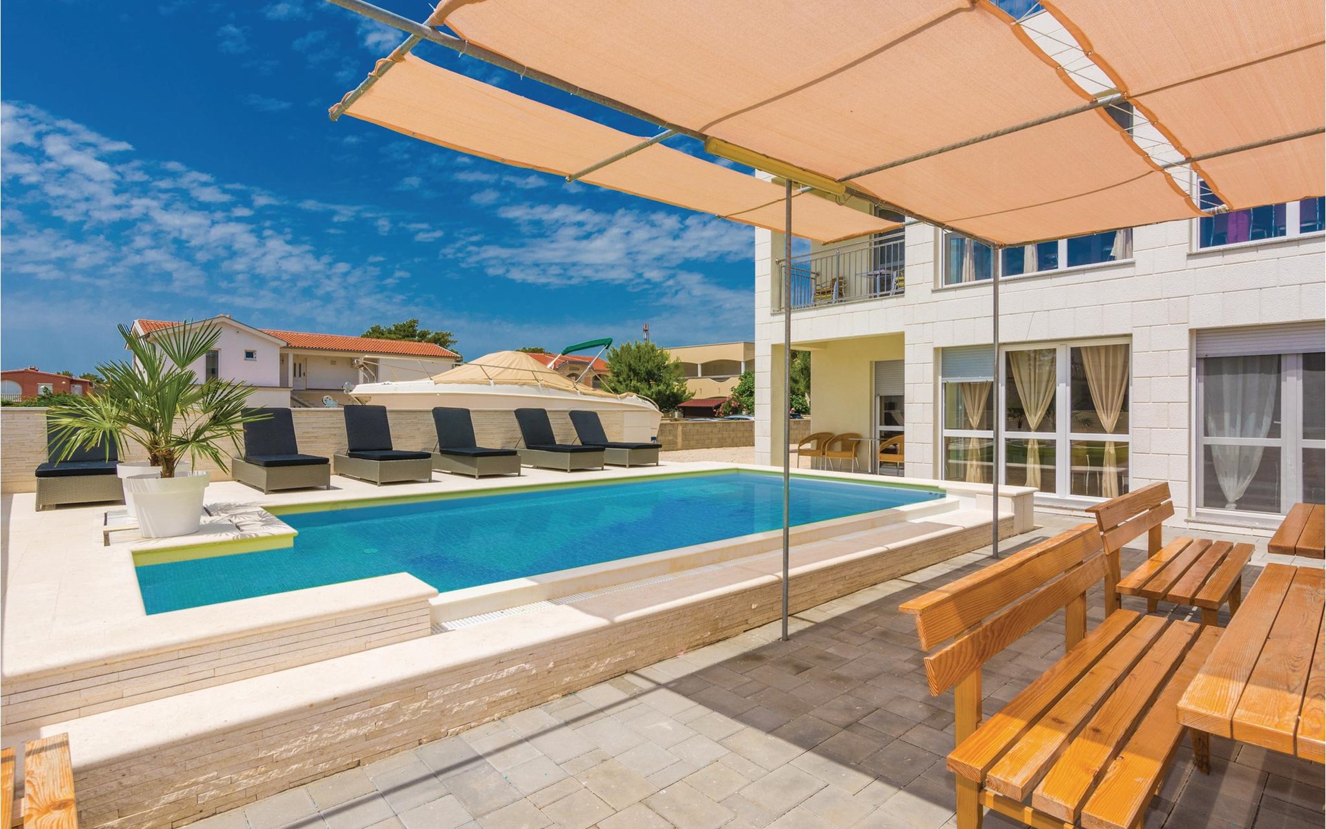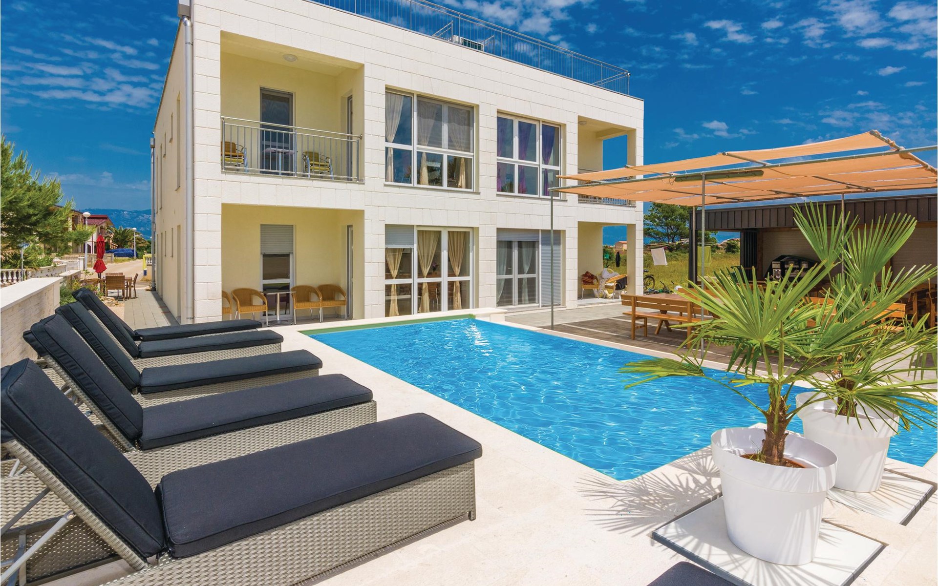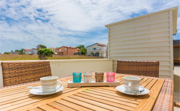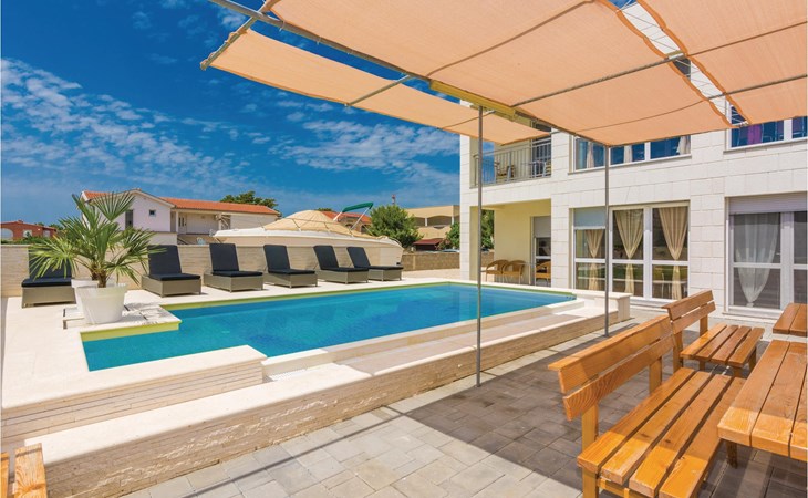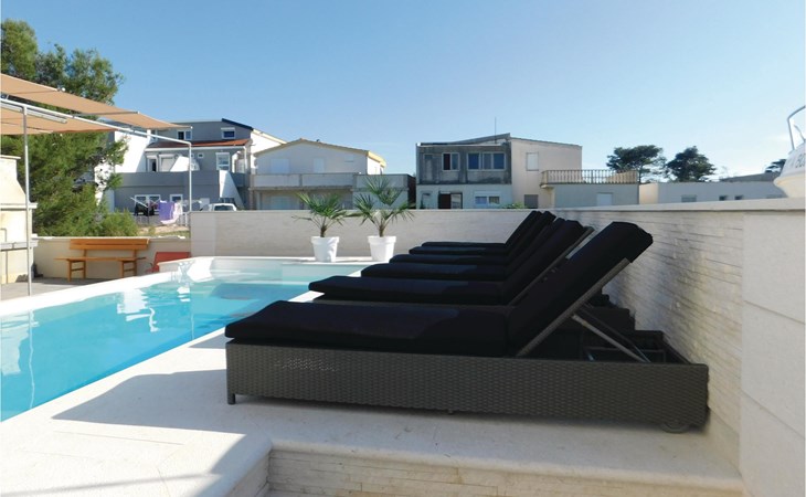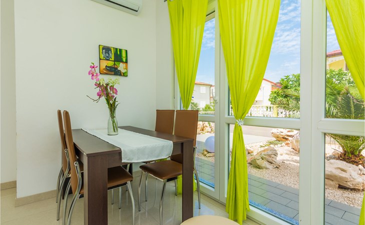 Zes lichte en modern ingerichte vakantiewoningen bevinden zich op de begane grond en de eerste verdieping van dit appartementengebouw. Alle appartementen hebben toegang tot het ruime terras bij het buitenzwembad met barbecue en zitje. Het terras op de binnenplaats wordt gedeeld door de gasten in CDA513 en CDA516. Vir is een noordelijk Dalmatisch eiland dat vanuit het zuiden door een brug met het vasteland is verbonden. Het is een eiland van contrasten met een imposante rotskust aan de noordkant en kindvriendelijke zandstranden in het zuiden en oosten.