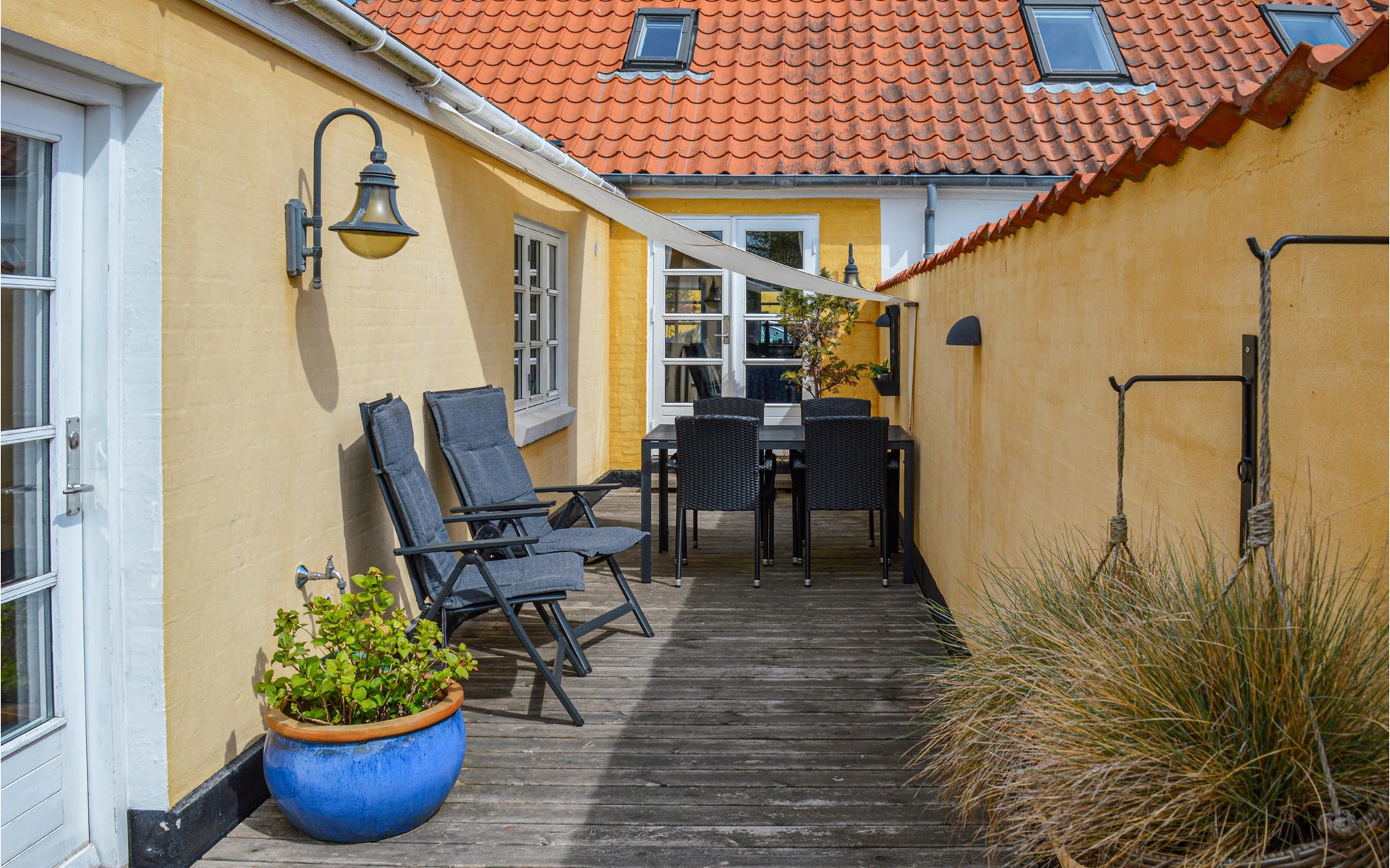 Dit liefdevol gerestaureerde vakantiehuis ligt in het hart van het charmante oude stadje Sæby, direct aan de haven. De smaakvolle inrichting in een bijpassende stijl geeft het huis karakter en charme en zorgt ervoor dat het vakantiegevoel meteen begint. Het huis is uitstekend uitgerust en biedt alles wat je nodig hebt voor een ontspannen vakantie. Vanuit de woonkamer heb je toegang tot een idyllische binnenplaats, die je privacy biedt en een ideale gelegenheid om van het buitenleven te genieten. De gedeeltelijk overdekte buitenruimte nodigt je uit om te genieten van de frisse lucht, zelfs op koelere avonden.