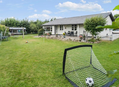 Goed onderhouden houten vakantiehuis met lichte en moderne inrichting op een mooi natuurgrondstuk. Het huis heeft een gezellige, gecombineerde woon/eetkamer en een kleinere, open keuken. Op het grote terras kunt u genieten van vele vakantie-uren. U kunt internetten via mobiele breedband. Vanuit het huis kunt u naar beneden lopen naar het strand en het is ook niet ver naar het gezellige vissersdorp Snogebæk, met rokerij, kleine restaurants, winkels en cafés. Het huisje ligt aan een kleine weg, die in de zomer vaak door fietsers wordt gebruikt, en daarachter ligt de landweg. Hier huurt u een goed en comfortabel vakantiehuis in een mooi en bekend vakantiehuisgebied.