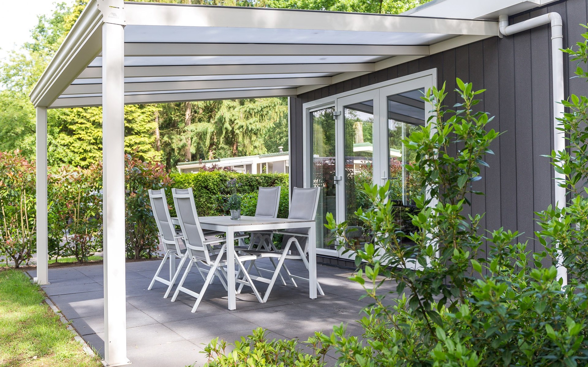 Geniet van luxe en comfort in de Park Lodge met Sauna. Speciaal ontwikkeld voor Park Berkenrhode. De veranda grenst aan de living.