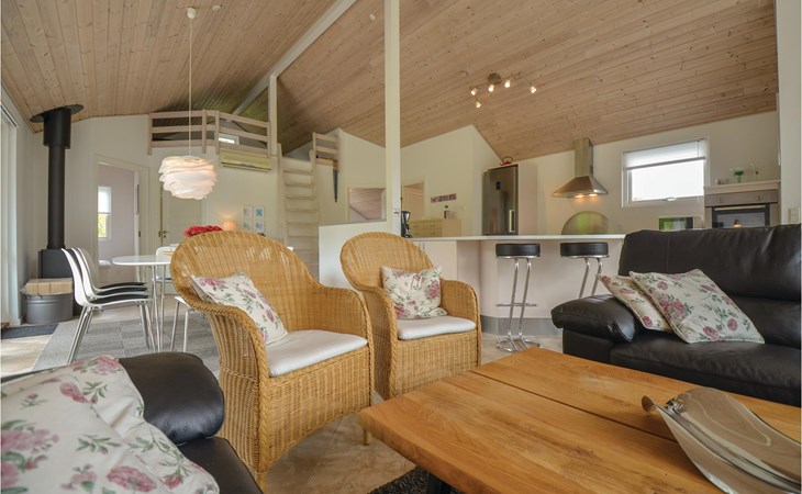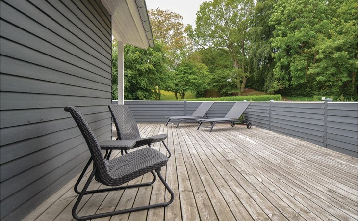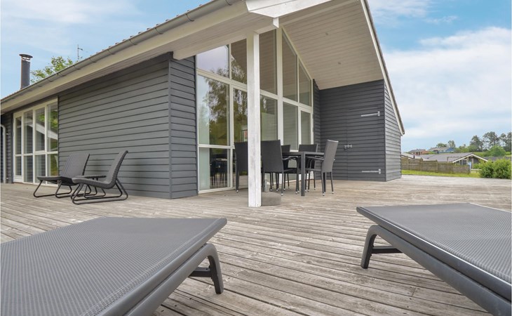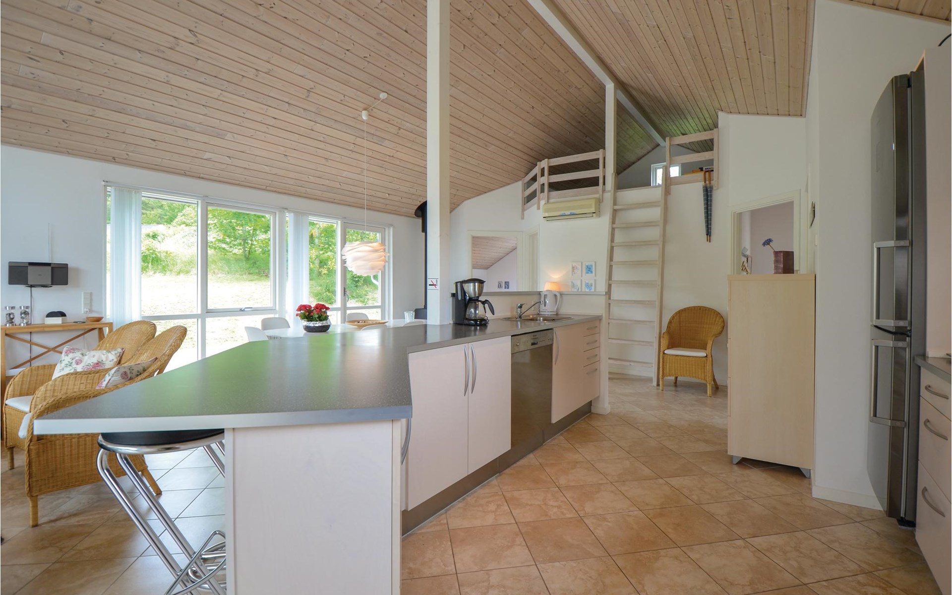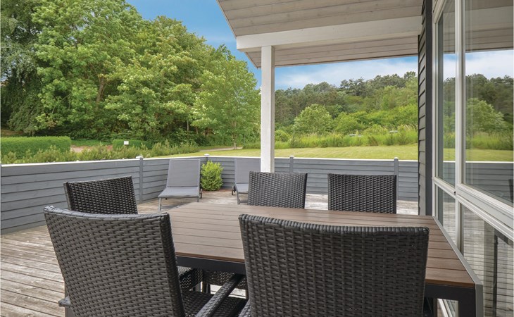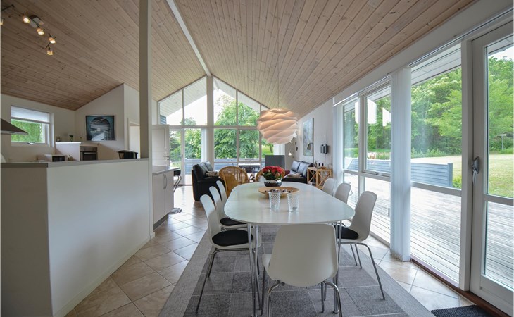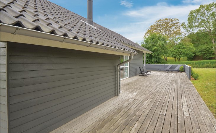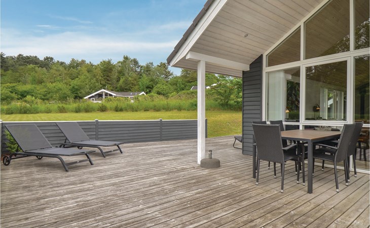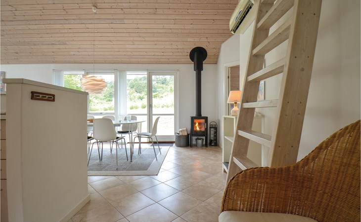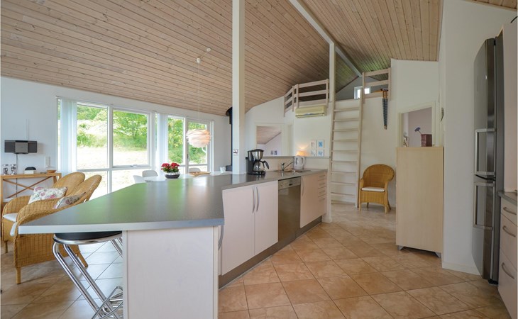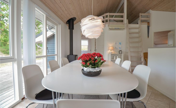 Het vakantiehuis van de bouwer! Een gezinsvriendelijk en eersteklas bouwwerk met goede details en comfort voor het grotere gezin of twee kleine gezinnen. Het huis is ingericht met modern meubilair. Zowel buiten als binnen biedt het voorzieningen van zowel praktische als luxe aard. Er is onder andere een energiebesparend warmtepomp/airconditioningsysteem geïnstalleerd. De omgeving is ideaal voor actieve vakantiegangers, want er is een fiets/wandelpad langs het water naar Ebeltoft. Het strand, de kruidenier en enkele restaurants liggen op loopafstand. Binnen een uur rijden kunt u vele Oost-Jutse attracties bereiken.