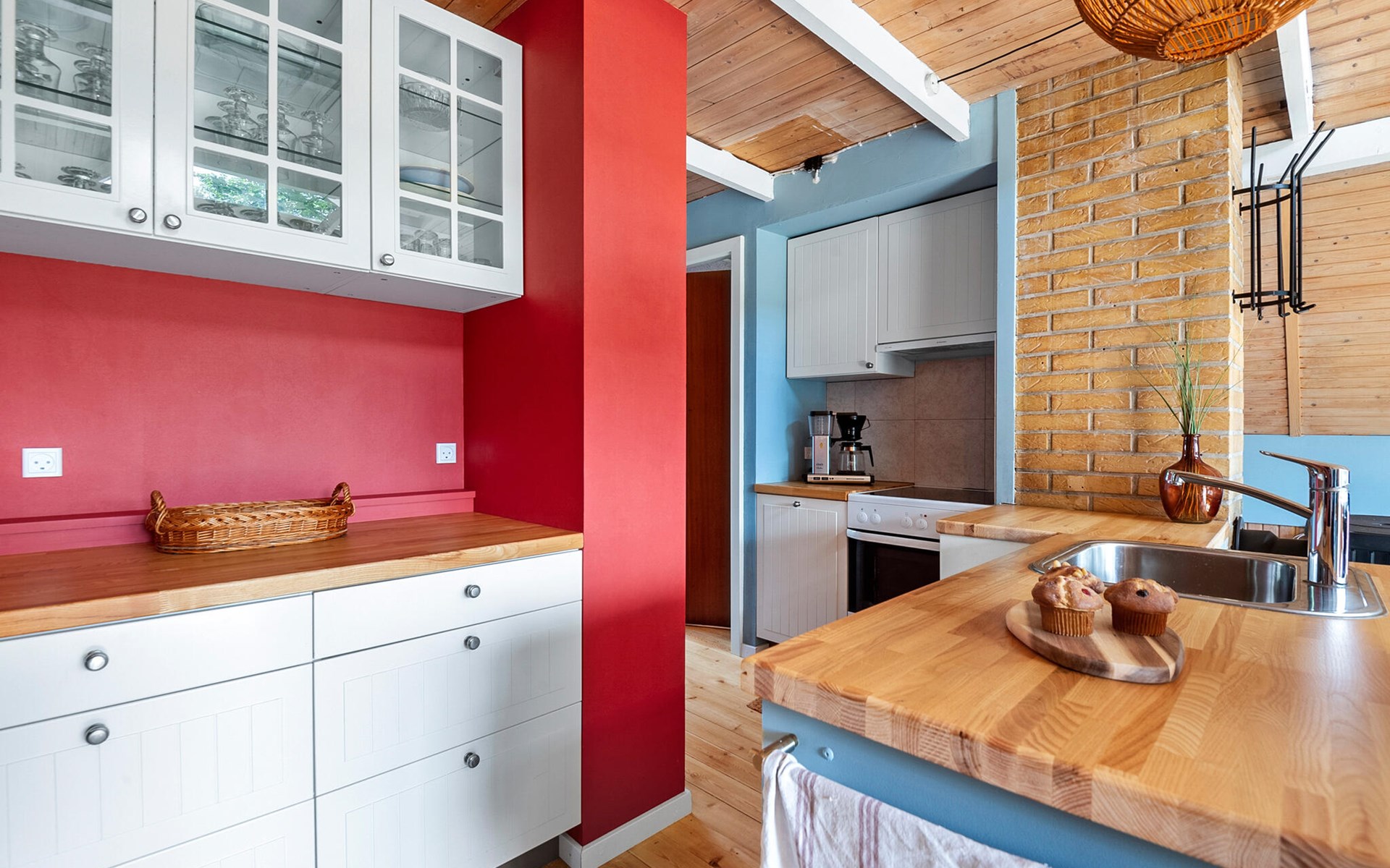 Dit lichte en gezellige huis biedt u alles wat u nodig heeft voor een aangenaam en ongecompliceerd verblijf: een lichte woonkamer met een grote bank, vrolijke kleuraccenten en rustieke houten meubels. Ontspan in deze gezellige sfeer en geniet van wat tijd om te lezen, naar muziek te luisteren of tv te kijken.