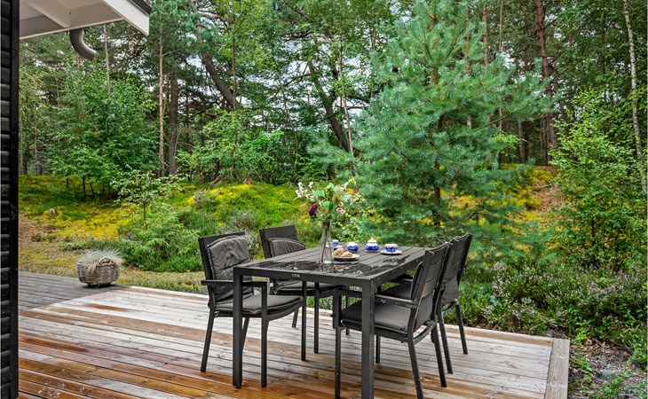 Vanuit de woonkamer heeft u toegang tot een mooi, gedeeltelijk overdekt houten terras met loungemeubilair en een gasbarbecue, waar u uw maaltijden buiten kunt bereiden. Hier kunt u genieten van de frisse lucht, een goed boek lezen, 's avonds een kopje koffie drinken of een goed glas wijn drinken. Rondom het huis is er volop ruimte voor fysieke ontwikkeling.