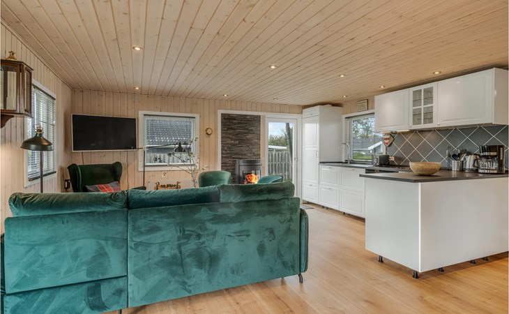 Dit charmante en gezellige vakantiehuis in Følle Strand ligt op een mooie afstand van het strand.