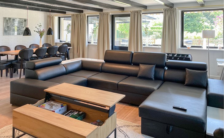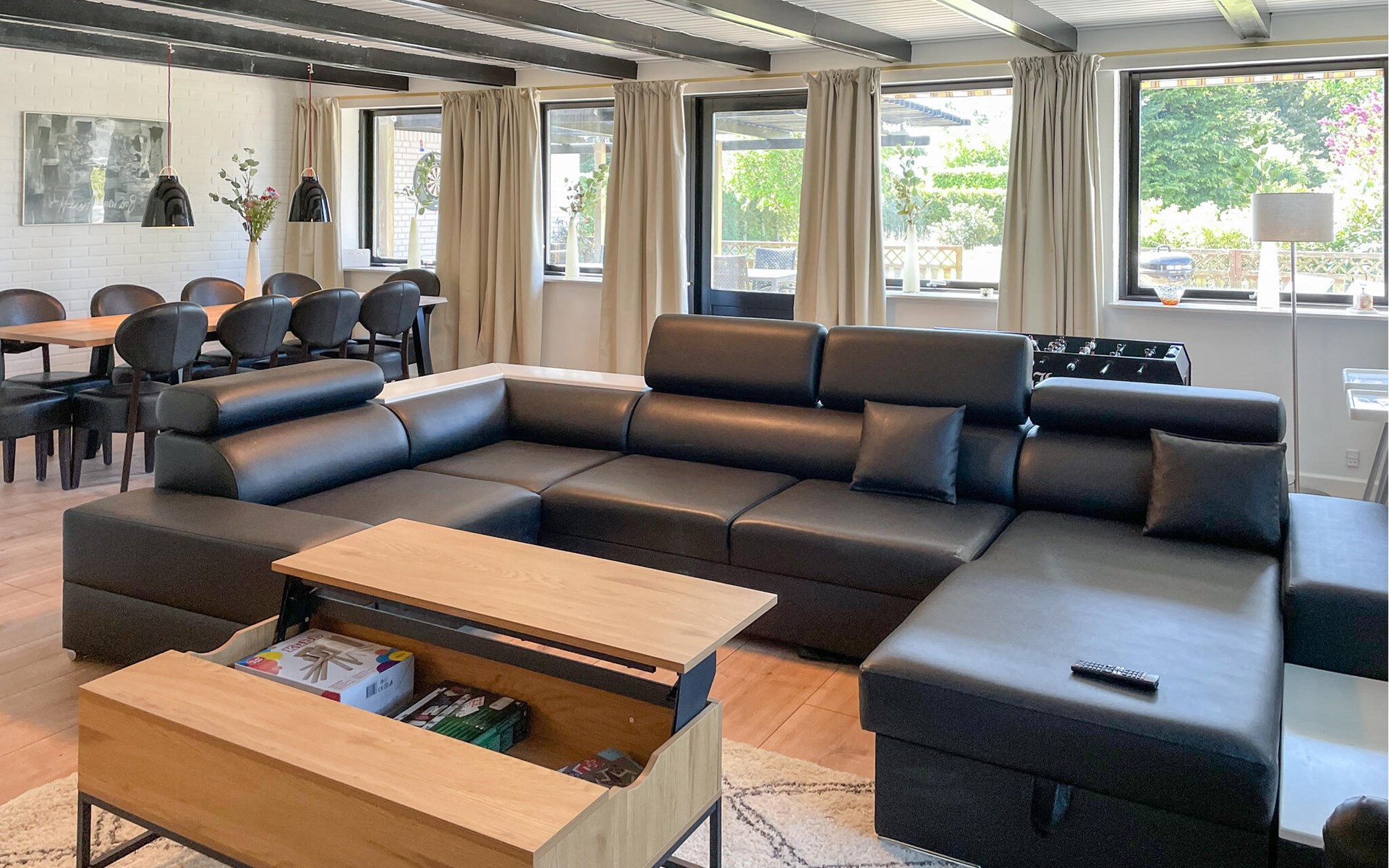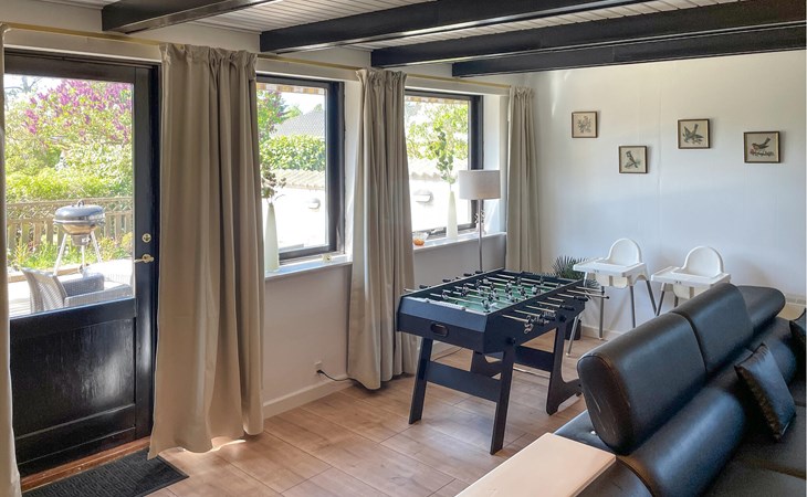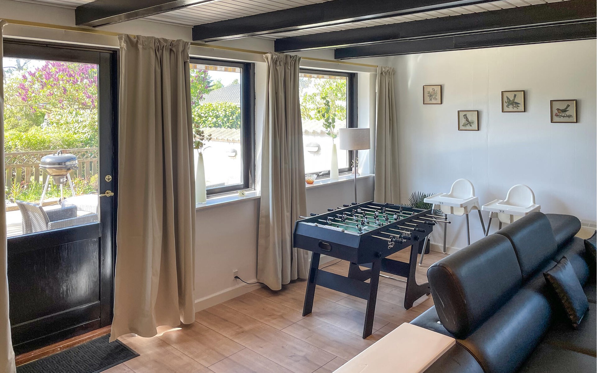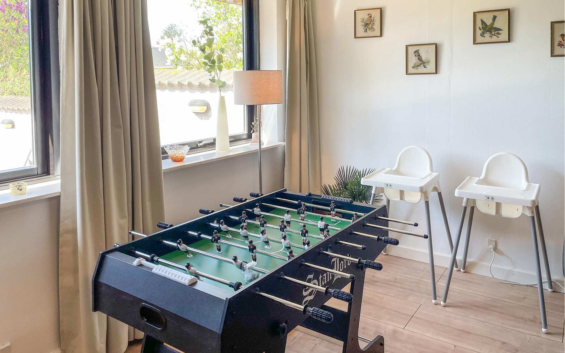 Je vakantiehuis is een aangename plek voor een pauze met het gezin. Begin de dag met een ontbijt aan de mooie eettafel en laat je blik dwalen over de goed onderhouden tuin. De open woonkamer met grote ramen zorgt voor een gezellige sfeer. Ontspan op de bank met een goed boek of laat je vermaken door een film. Er staat ook een tafelvoetbaltafel tot je beschikking.