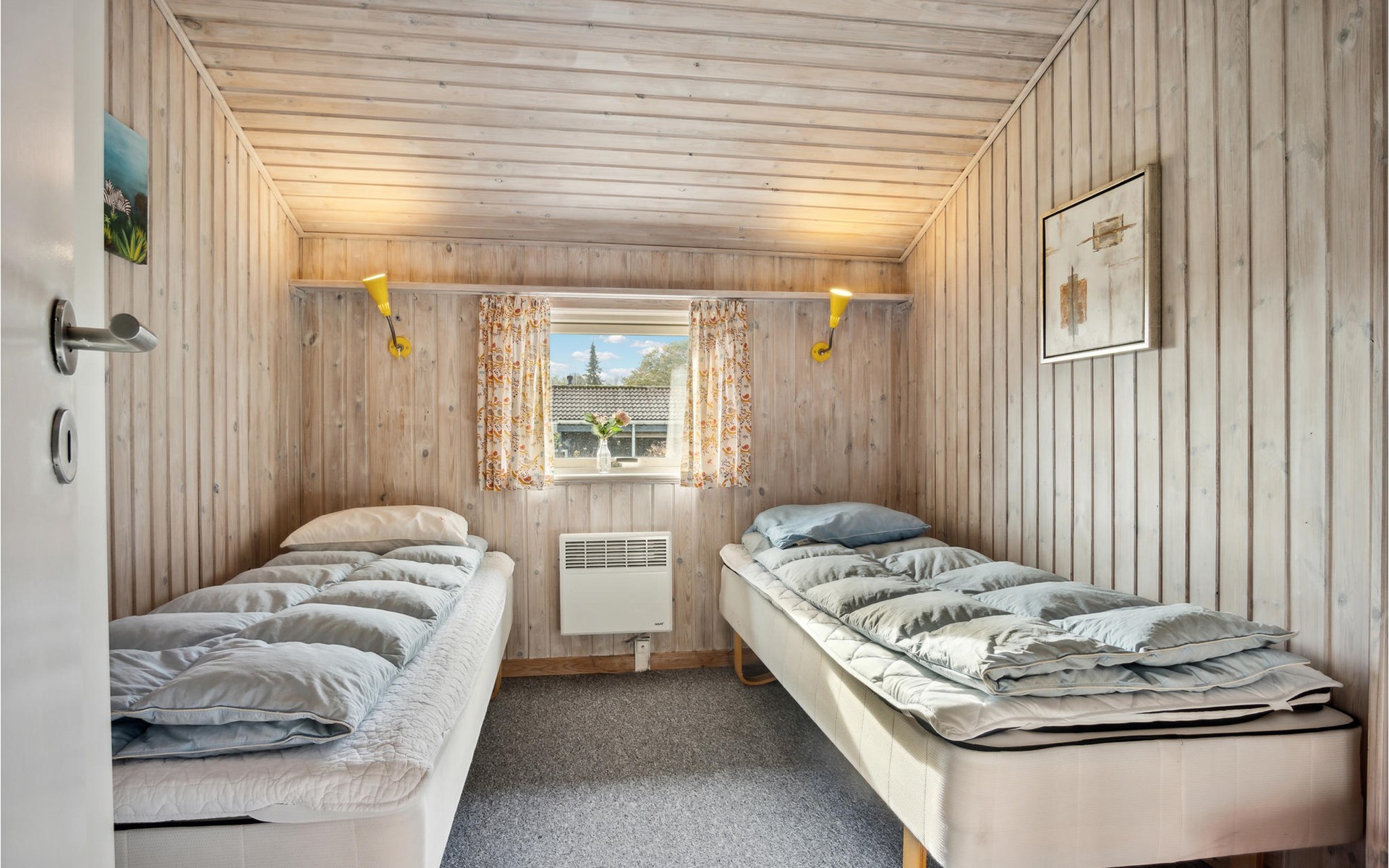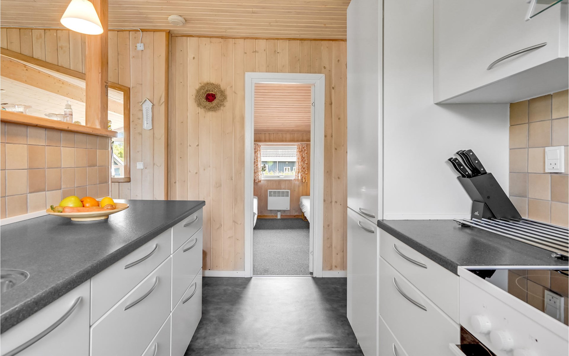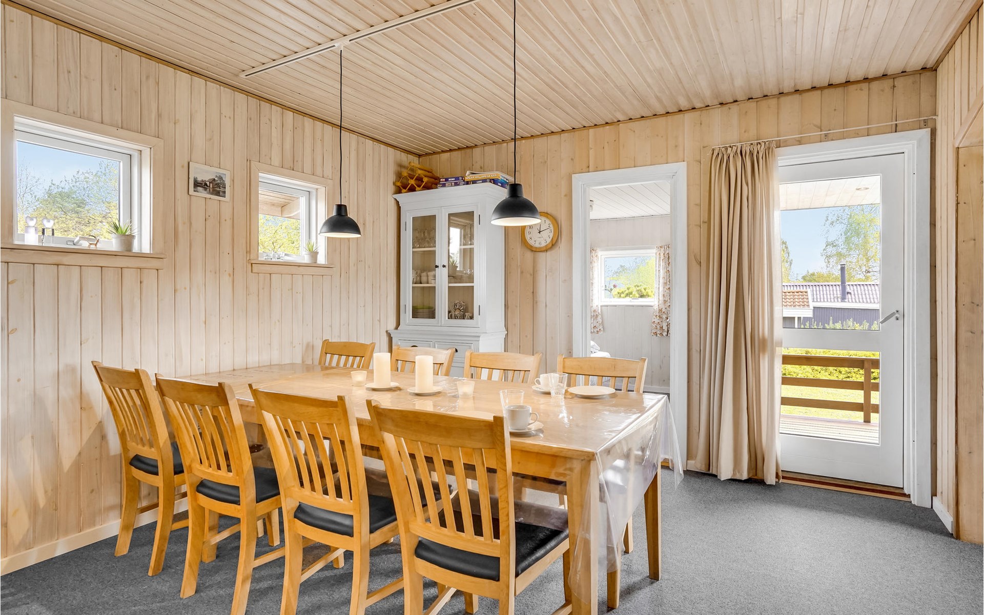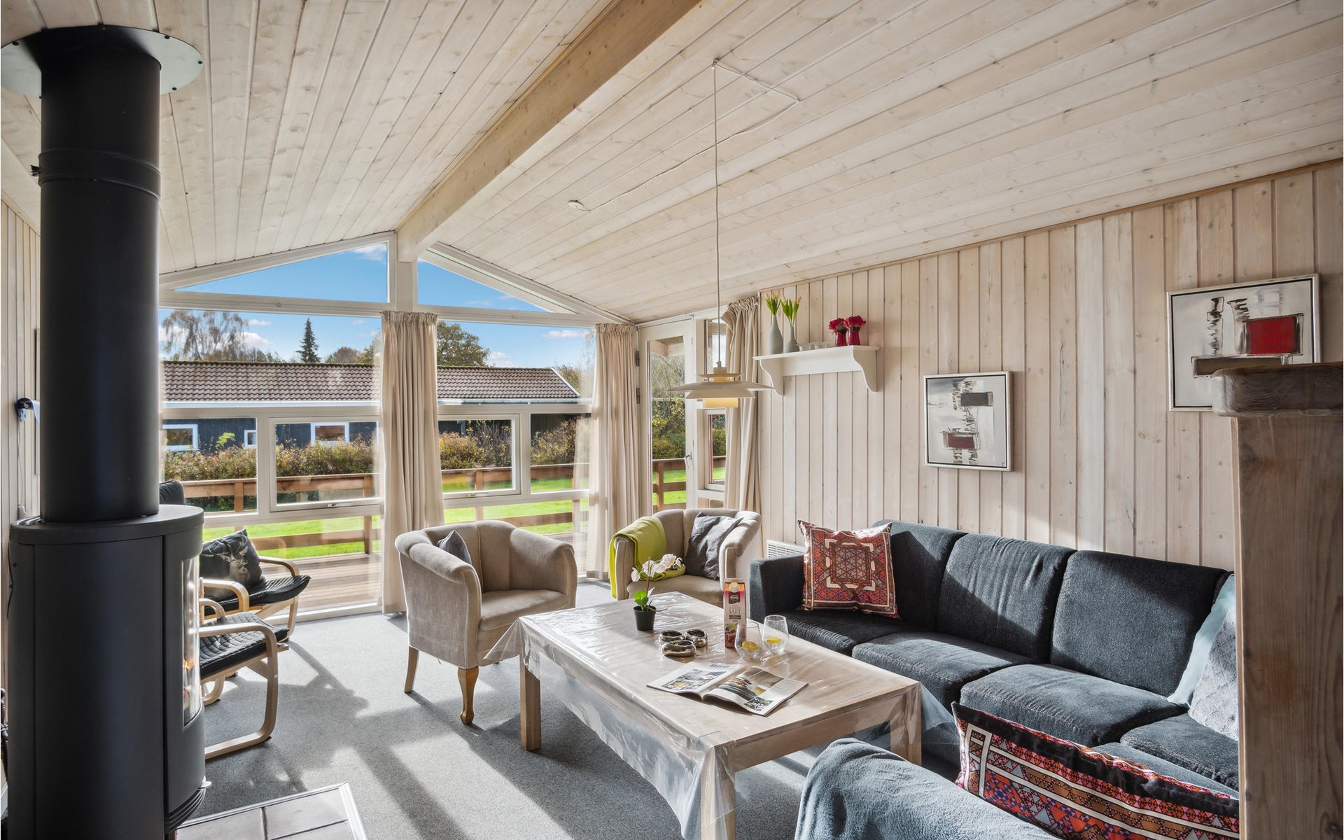 Pas gerenoveerd houten huis midden in een groot vakantiehuizengebied, omgeven door een mooi gazon en aan het einde van een kleinere doodlopende weg met zeer weinig verkeer.