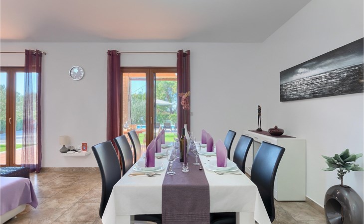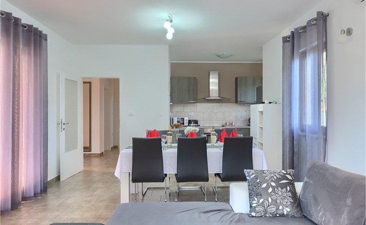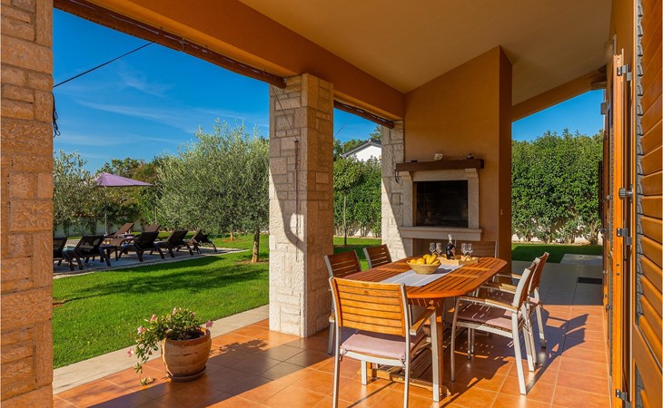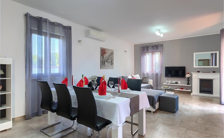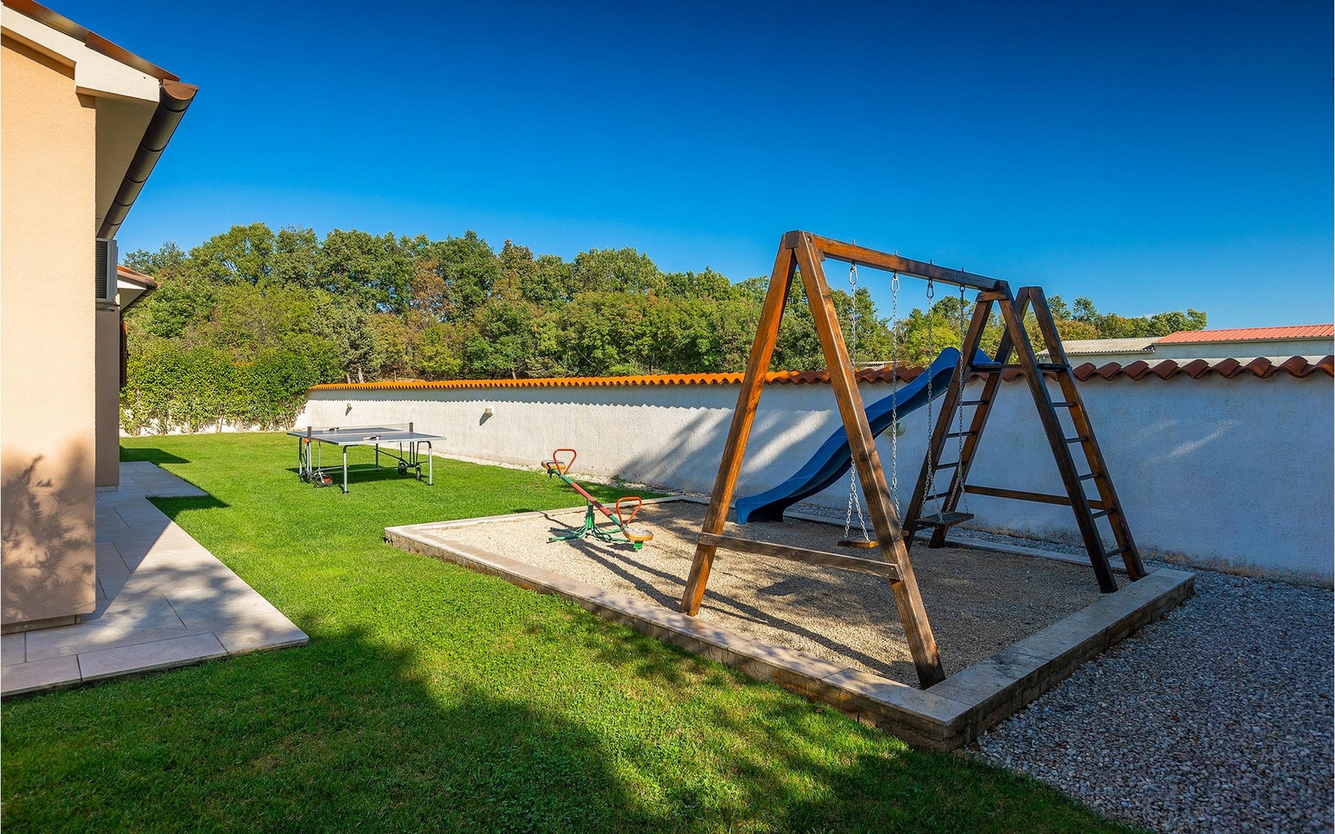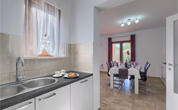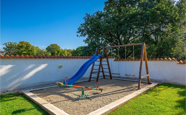 Villa Tina Barban heeft een totale oppervlakte van 170 m2 en is verdeeld in 2 huizen. Omdat het twee aparte huizen zijn op een gedeeld terrein, is dit perfect voor twee families of twee groepen vrienden. De villa is geschikt voor maximaal 12 personen in totaal. Elk huis bestaat uit een woonkamer met een open haard die een gezellige sfeer creëert, een volledig uitgeruste keuken, een eetkamer, twee slaapkamers en twee badkamers. Beide stijlvol ingerichte huizen hebben een overdekt terras met een eethoek en een barbecue waar je kunt genieten van onvergetelijke momenten met je familie of vrienden. De olijfbomen geven de verzorgde tuin een traditioneel Istrisch tintje. Een groot buitenzwembad nodigt je uit om jezelf te verfrissen op warme zomerdagen! Er zijn ligstoelen en een buitendouche rond het zwembad. Uw kinderen zullen zeker genieten van de kleine speeltuin in de tuin! Er is ook een privéparking voor 4 auto's. De villa biedt alles wat je maar kunt wensen voor een ontspannen vakantie in Istrië! Villa Tina Barban ligt in het kleine dorpje Dobrani, dat behoort tot de gemeente Barban. De schilderachtige baai van Raski Zaljev, met talloze natuurlijke stranden en een kristalheldere zee, ligt op 3 kilometer afstand. Dankzij de centrale ligging is het dorp Dobrani een uitstekend uitgangspunt voor excursies, fietstochten of wandeltochten. De regio Istrië biedt een verscheidenheid aan natuurlijke schoonheden en culturele bezienswaardigheden die je niet mag missen. De villa ligt op ongeveer 20-30 kilometer van de toeristische kustplaatsen zoals Pula, Pore, Rovinj, Labin en Rabac. Deze steden hebben talloze cafés, clubs en restaurants waar je zeker eersteklas gastronomische lekkernijen zoals Istrische gerookte ham en olijfolie moet proberen. Voor gezinnen met kinderen raden we een uitstapje naar een waterpark aan. De ideale keuze voor een ontspannen en toch spannende vakantie!
