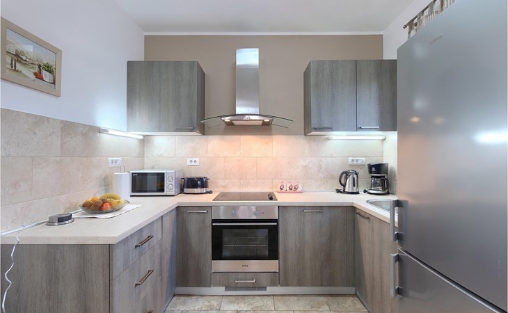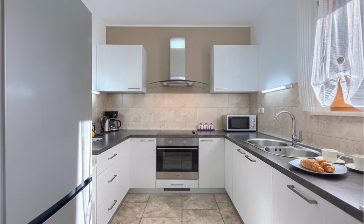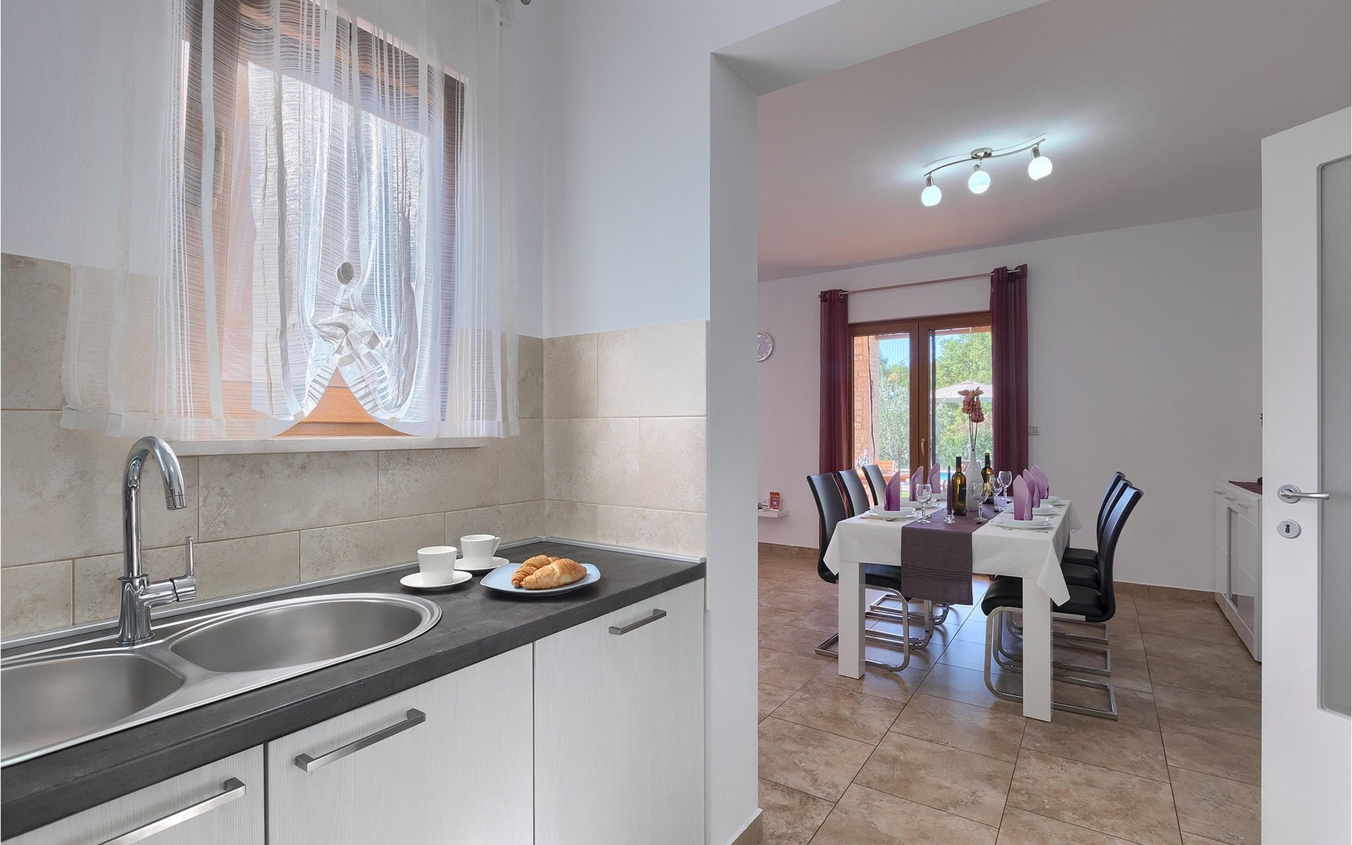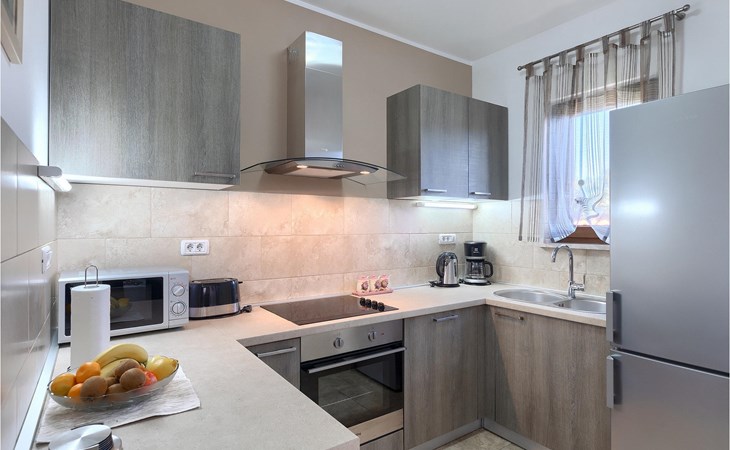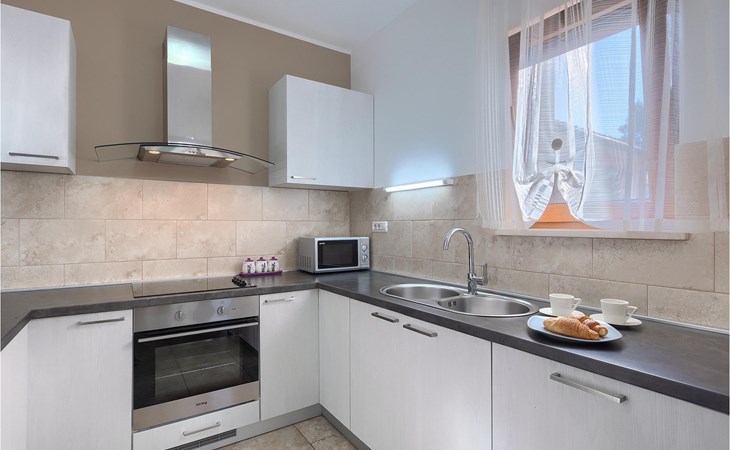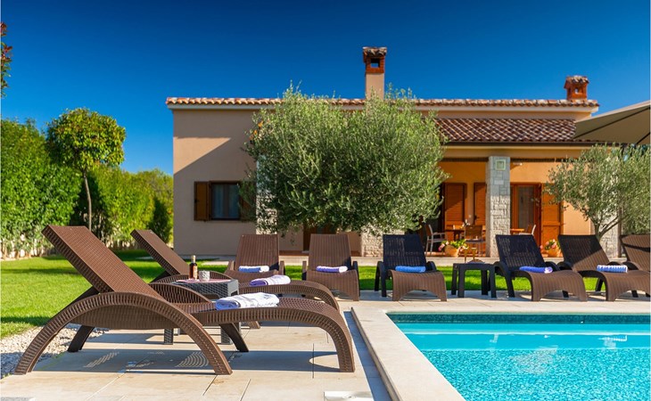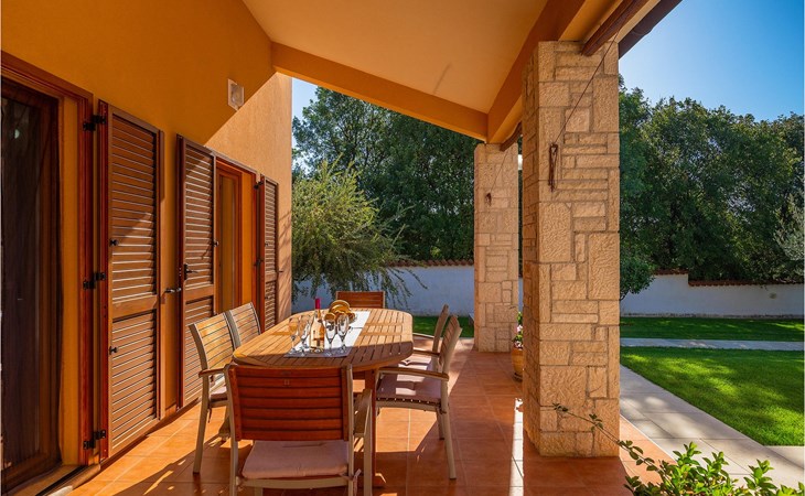 Villa Tina Barban heeft een totale oppervlakte van 170 m2 en is verdeeld in 2 huizen. Omdat het twee aparte huizen zijn op een gedeeld terrein, is dit perfect voor twee families of twee groepen vrienden. De villa is geschikt voor maximaal 12 personen in totaal. Elk huis bestaat uit een woonkamer met een open haard die een gezellige sfeer creëert, een volledig uitgeruste keuken, een eetkamer, twee slaapkamers en twee badkamers. Beide stijlvol ingerichte huizen hebben een overdekt terras met een eethoek en een barbecue waar je kunt genieten van onvergetelijke momenten met je familie of vrienden. De olijfbomen geven de verzorgde tuin een traditioneel Istrisch tintje. Een groot buitenzwembad nodigt je uit om jezelf te verfrissen op warme zomerdagen! Er zijn ligstoelen en een buitendouche rond het zwembad. Uw kinderen zullen zeker genieten van de kleine speeltuin in de tuin! Er is ook een privéparking voor 4 auto's. De villa biedt alles wat je maar kunt wensen voor een ontspannen vakantie in Istrië! Villa Tina Barban ligt in het kleine dorpje Dobrani, dat behoort tot de gemeente Barban. De schilderachtige baai van Raski Zaljev, met talloze natuurlijke stranden en een kristalheldere zee, ligt op 3 kilometer afstand. Dankzij de centrale ligging is het dorp Dobrani een uitstekend uitgangspunt voor excursies, fietstochten of wandeltochten. De regio Istrië biedt een verscheidenheid aan natuurlijke schoonheden en culturele bezienswaardigheden die je niet mag missen. De villa ligt op ongeveer 20-30 kilometer van de toeristische kustplaatsen zoals Pula, Pore, Rovinj, Labin en Rabac. Deze steden hebben talloze cafés, clubs en restaurants waar je zeker eersteklas gastronomische lekkernijen zoals Istrische gerookte ham en olijfolie moet proberen. Voor gezinnen met kinderen raden we een uitstapje naar een waterpark aan. De ideale keuze voor een ontspannen en toch spannende vakantie!