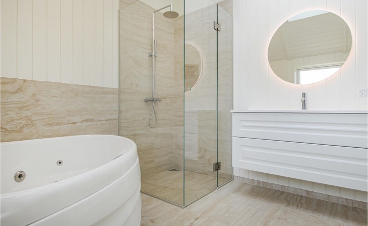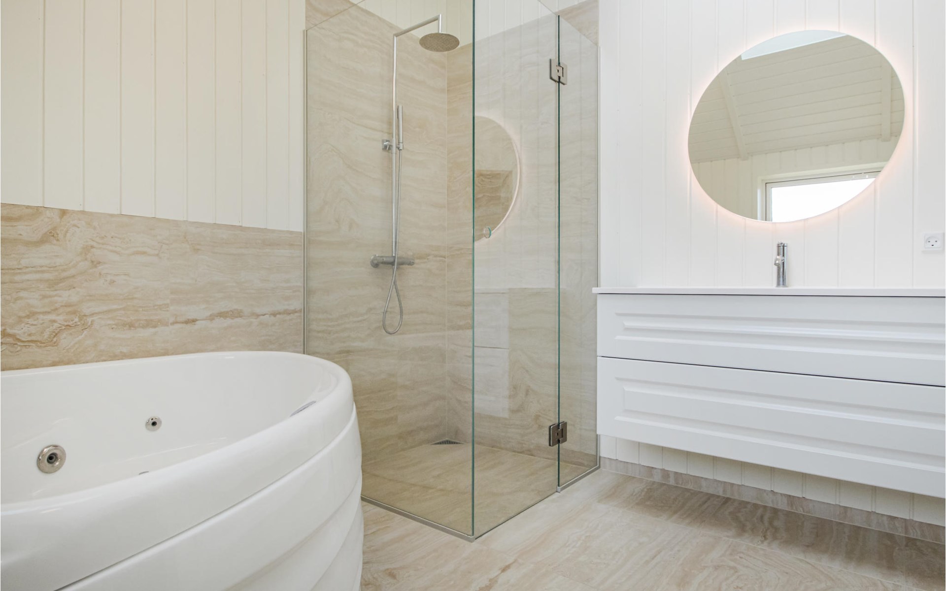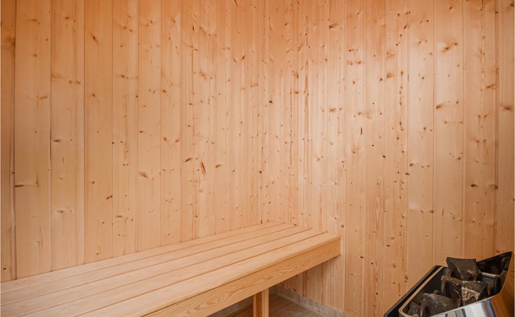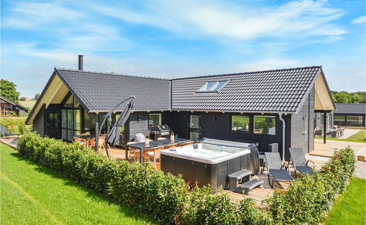 Wellness vakantiehuis met een prachtige outdoor hot tub en een hot tub en sauna in de badkamer.