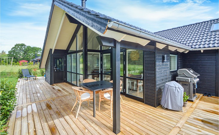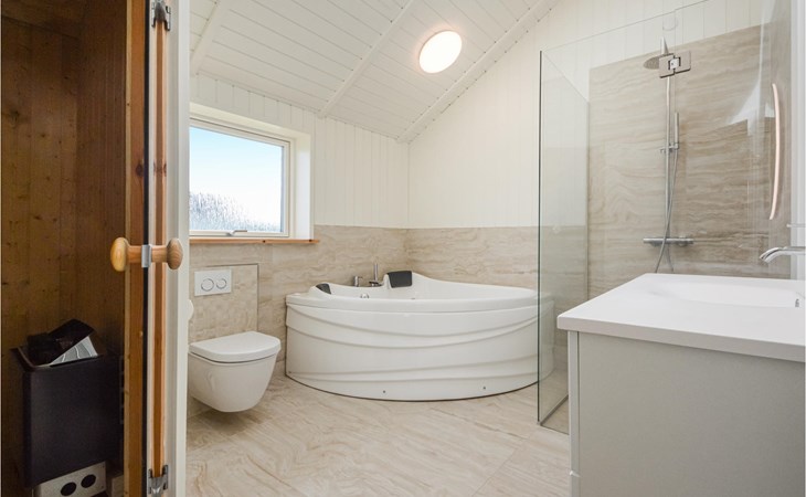 Het huis ligt in een nieuwer vakantiehuisgebied aan het mooie Kelstrup Strand, dat met zijn prachtige natuur uitnodigt tot een geweldige vakantie. Het huis is licht ingericht met 4 goede slaapkamers. Verder is er een uitnodigende en ruime woonkamer, die direct verbonden is met de open keuken en eetkamer. Verder zijn er 2 mooie badkamers, waarvan één met sauna en whirlpool. Op het grote terras vindt u de prachtige buitenspa, die het hele jaar door gebruikt kan worden. Er zijn hoogwaardige bouwmaterialen gebruikt en het huis is ingericht met comfortabel meubilair. Geniet van uw vakantie en uw maaltijden op het grote terras met tuinmeubelen en ligstoelen. Er is ook een afdak in het huis dat in de zomer als alternatieve slaapruimte kan worden gebruikt.