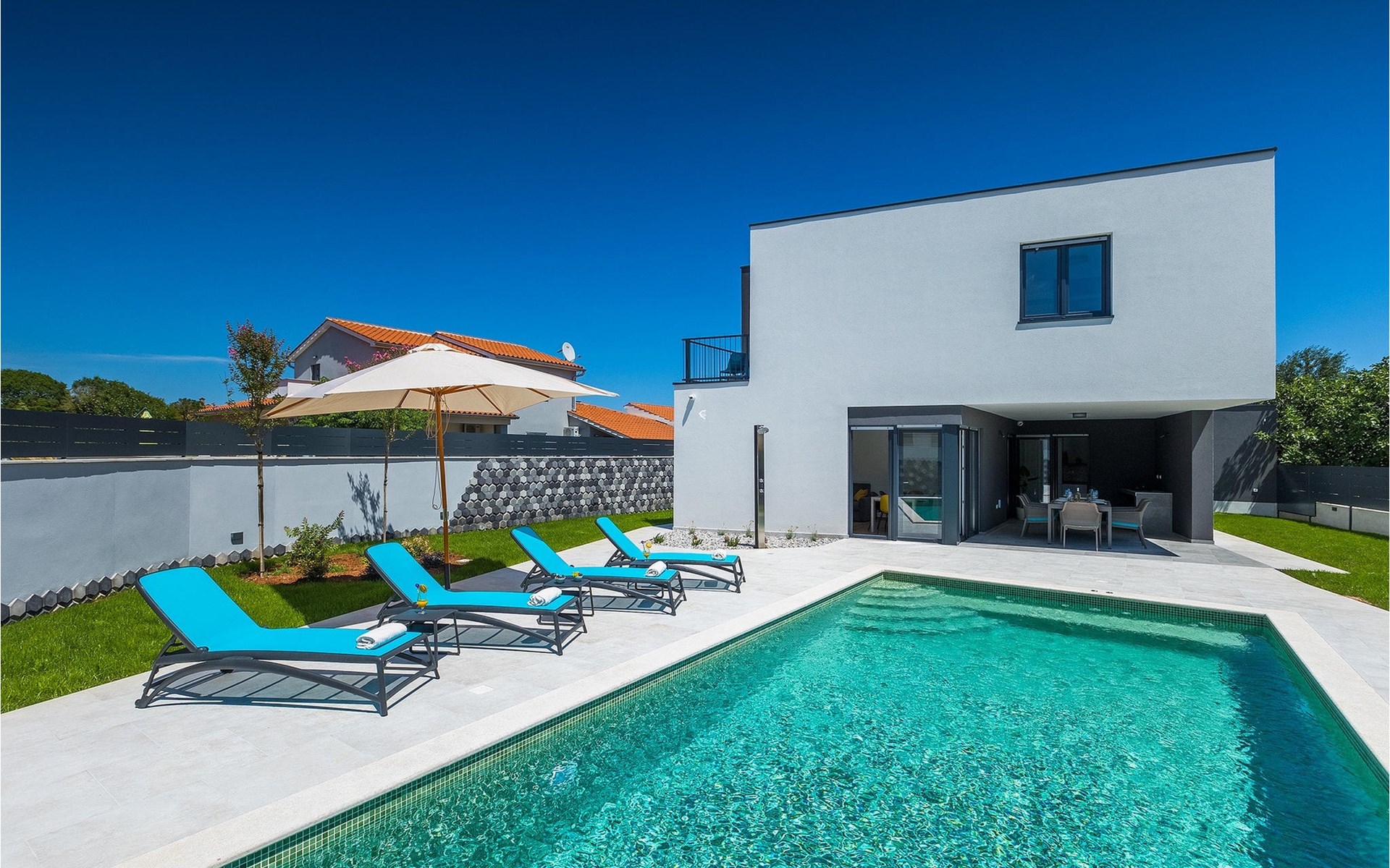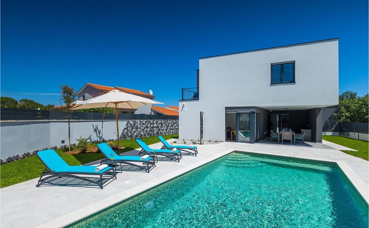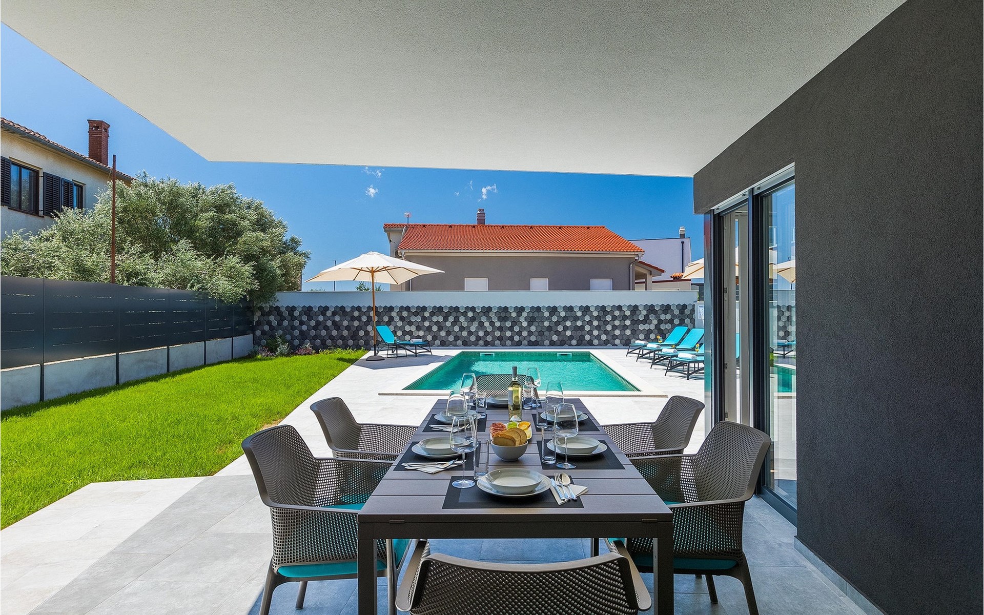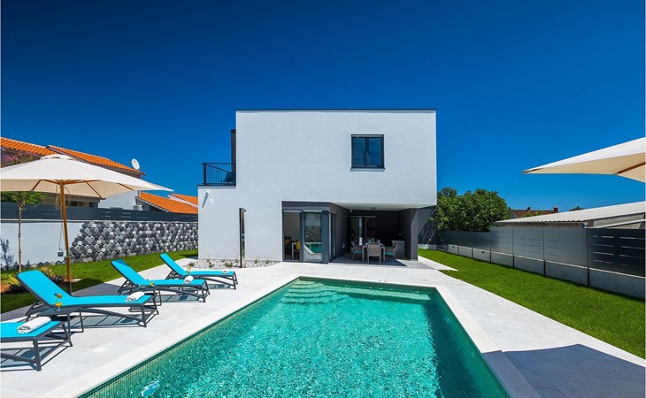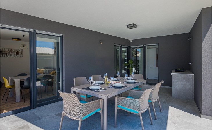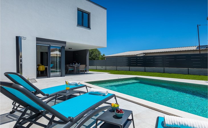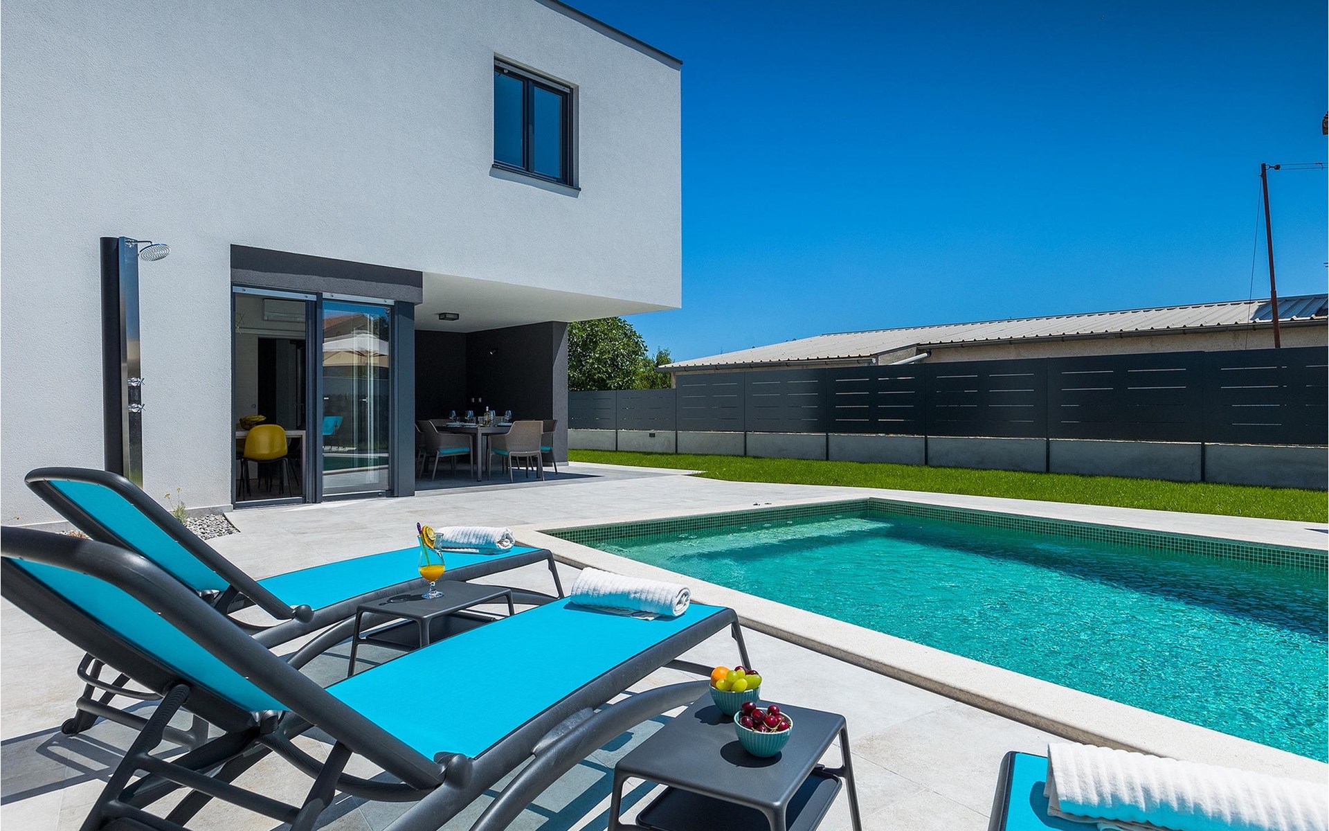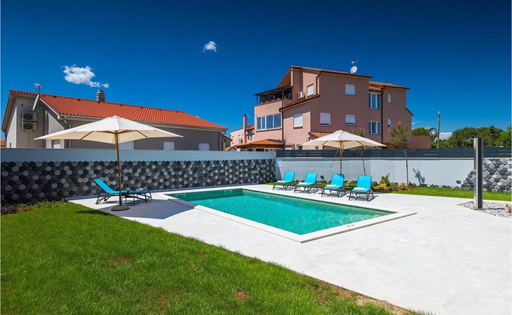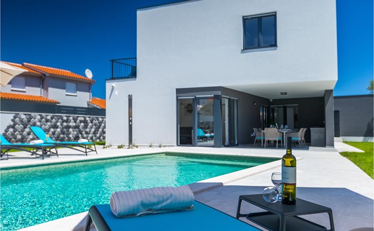 Villa Moderna is een prachtig vakantiehuis met 3 slaapkamers dat alles biedt voor een geweldige en ontspannen vakantie. De villa ligt in een rustige wijk in Pula en is slechts een paar kilometer verwijderd van de stranden van Pula of de nabijgelegen stad Medulin. De villa bestaat uit twee verdiepingen. De woonkamer en de volledig uitgeruste keuken met eethoek bevinden zich op de begane grond. Deze ruimte wordt overspoeld met licht dankzij grote glazen oppervlakken en heeft directe toegang tot de buitenruimte met de overdekte eethoek, waar je samen kunt zitten en genieten van al fresco dineren. Een wasruimte en een apart toilet bevinden zich ook op de begane grond. De bovenverdieping bestaat uit drie slaapkamers. Ze hebben allemaal een tweepersoonsbed, airconditioning, tv en een en-suite badkamer met douche. Het interieur van de villa is modern maar eenvoudig en gezellig, terwijl de buitenruimte met privézwembad zorgt voor ontspannende momenten. Daarnaast biedt de locatie vele mogelijkheden voor een actieve vakantie.Villa Moderna ligt in het zuidelijke deel van vIstrië, op slechts een paar kilometer van Pula. Pula is een van de belangrijkste toeristische steden in Istrië en biedt een verscheidenheid aan attracties voor cultuurliefhebbers. De ligging van de villa is zeer gunstig - de stranden van Medulin liggen op slechts 8 km afstand, terwijl alle delen van de stad Pula en alle voorzieningen die Pula biedt vlakbij liggen. In de omgeving kun je prachtige kleine Istrische stadjes bezoeken, natuurlijke stranden verkennen en gaan wandelen, fietsen of duiken. Zorg ervoor dat je tijdens je verblijf Istrische specialiteiten proeft. Een van de nabijgelegen plaatsen die zeker een bezoek waard is, is Rt Kamenjak.