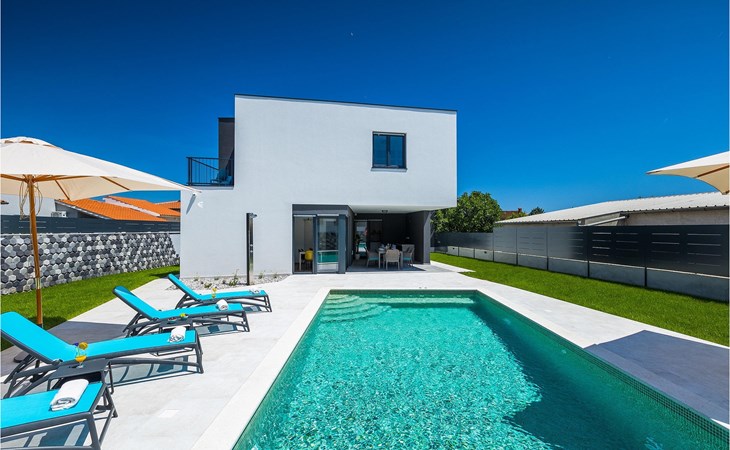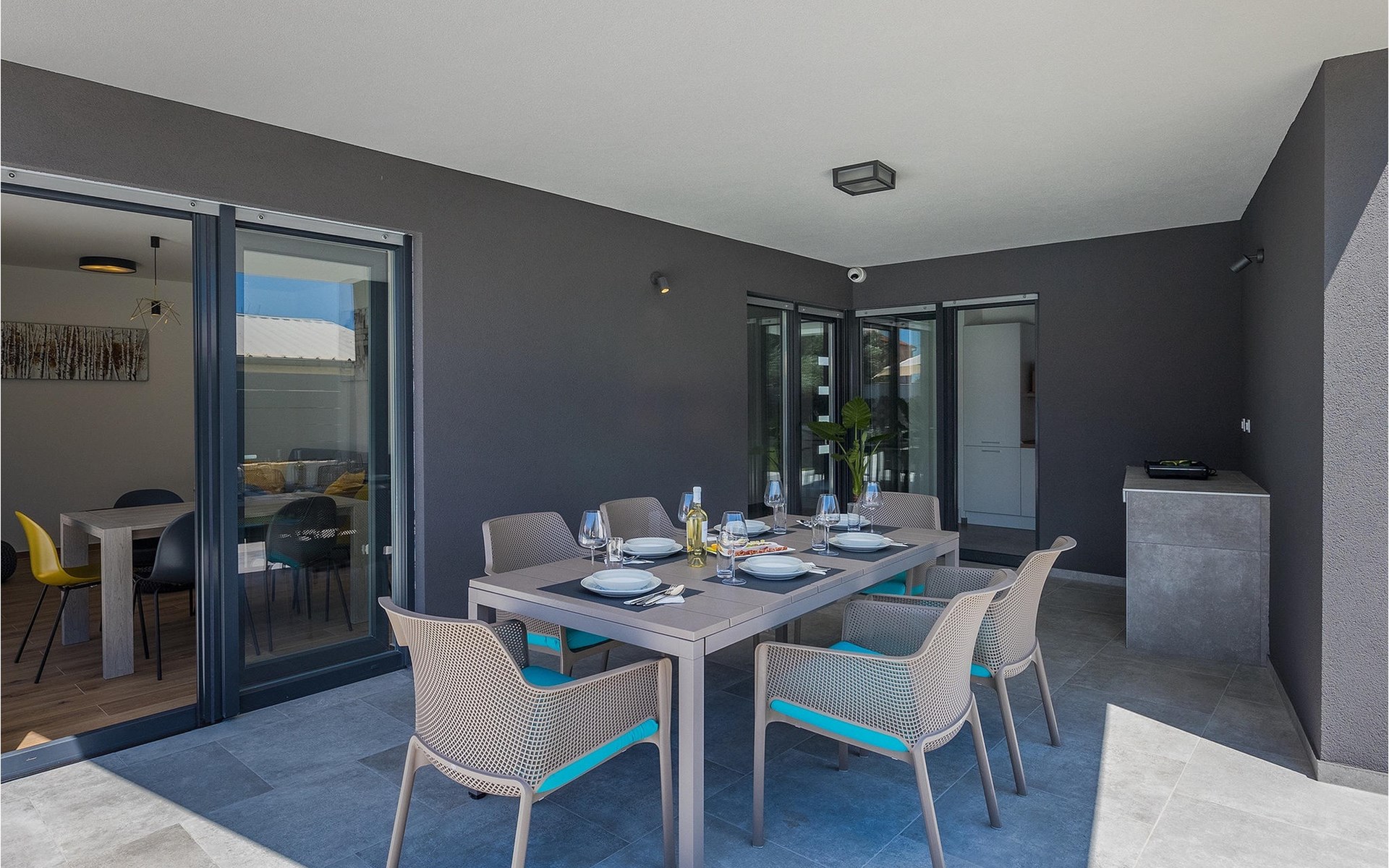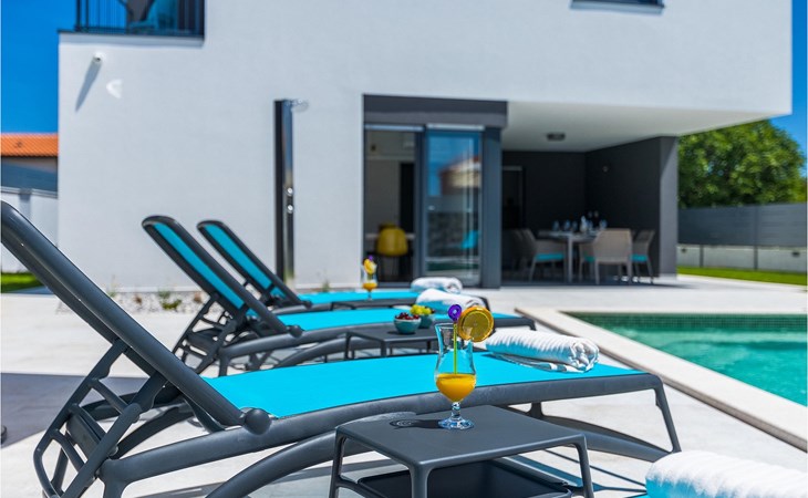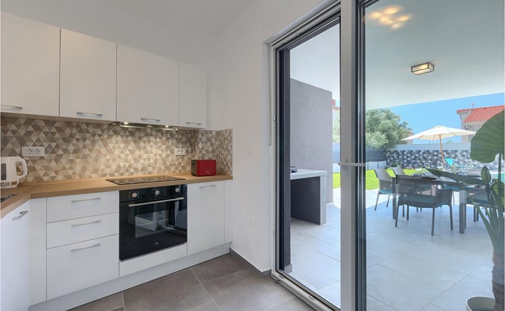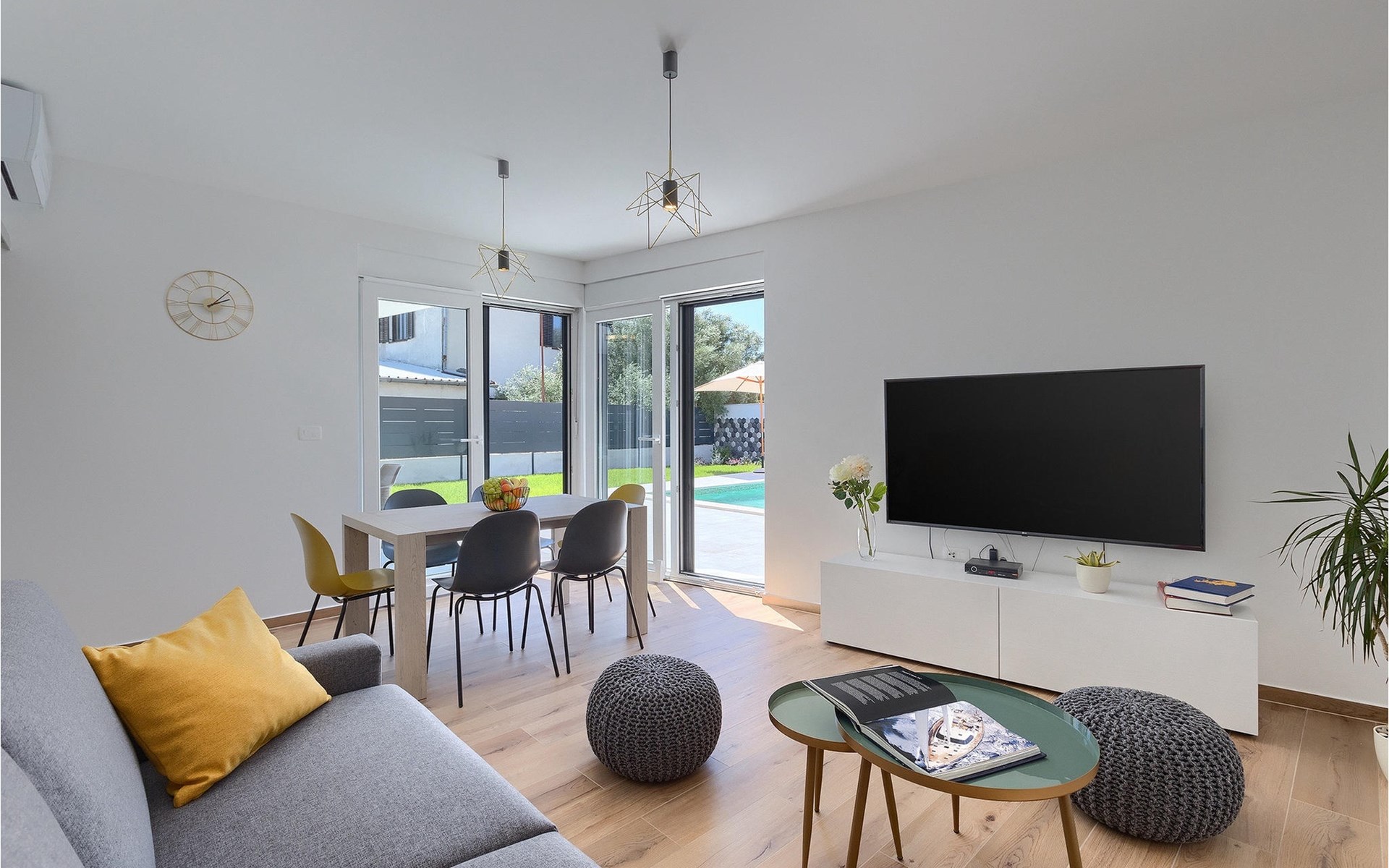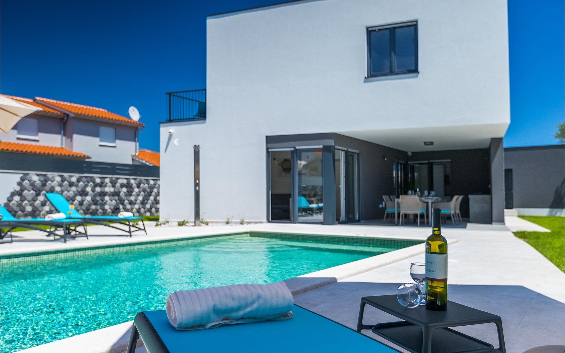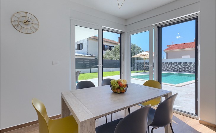 Villa Moderna is een prachtig vakantiehuis met 3 slaapkamers dat alles biedt voor een geweldige en ontspannen vakantie. De villa ligt in een rustige wijk in Pula en is slechts een paar kilometer verwijderd van de stranden van Pula of de nabijgelegen stad Medulin. De villa bestaat uit twee verdiepingen. De woonkamer en de volledig uitgeruste keuken met eethoek bevinden zich op de begane grond. Deze ruimte wordt overspoeld met licht dankzij grote glazen oppervlakken en heeft directe toegang tot de buitenruimte met de overdekte eethoek, waar je samen kunt zitten en genieten van al fresco dineren. Een wasruimte en een apart toilet bevinden zich ook op de begane grond. De bovenverdieping bestaat uit drie slaapkamers. Ze hebben allemaal een tweepersoonsbed, airconditioning, tv en een en-suite badkamer met douche. Het interieur van de villa is modern maar eenvoudig en gezellig, terwijl de buitenruimte met privézwembad zorgt voor ontspannende momenten. Daarnaast biedt de locatie vele mogelijkheden voor een actieve vakantie.Villa Moderna ligt in het zuidelijke deel van vIstrië, op slechts een paar kilometer van Pula. Pula is een van de belangrijkste toeristische steden in Istrië en biedt een verscheidenheid aan attracties voor cultuurliefhebbers. De ligging van de villa is zeer gunstig - de stranden van Medulin liggen op slechts 8 km afstand, terwijl alle delen van de stad Pula en alle voorzieningen die Pula biedt vlakbij liggen. In de omgeving kun je prachtige kleine Istrische stadjes bezoeken, natuurlijke stranden verkennen en gaan wandelen, fietsen of duiken. Zorg ervoor dat je tijdens je verblijf Istrische specialiteiten proeft. Een van de nabijgelegen plaatsen die zeker een bezoek waard is, is Rt Kamenjak.