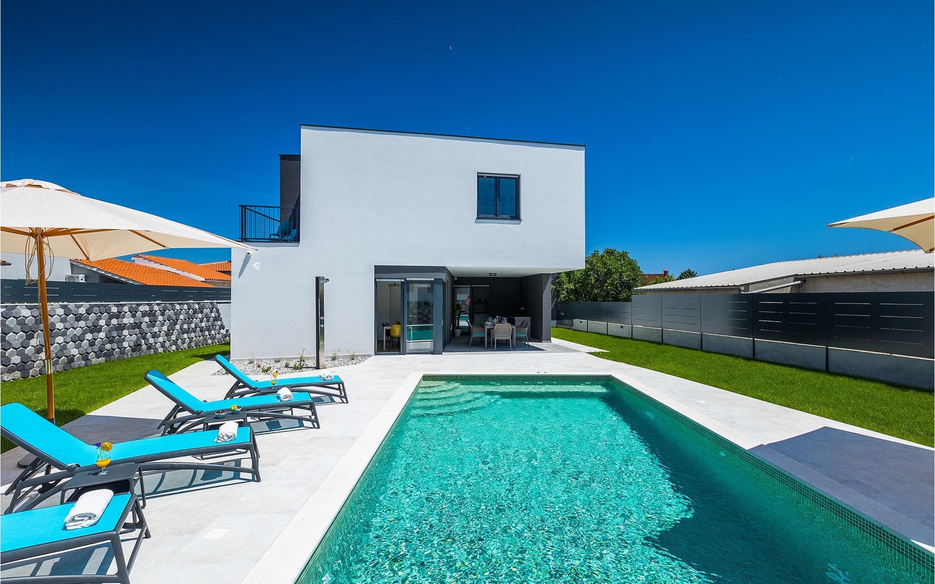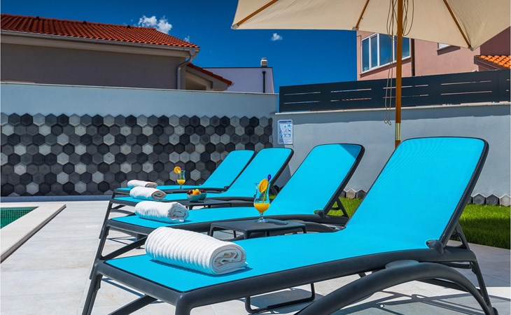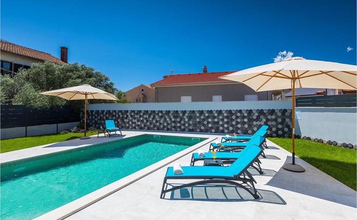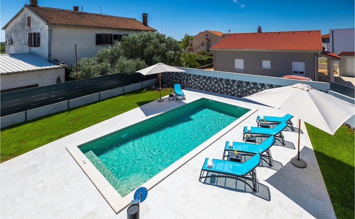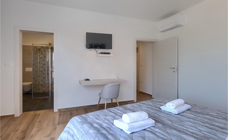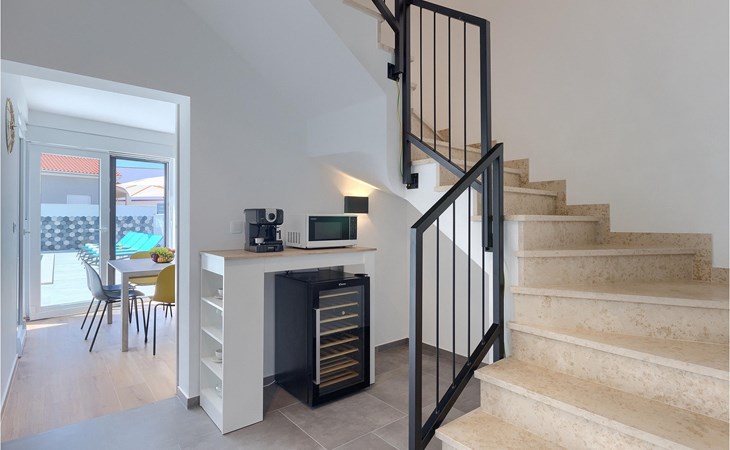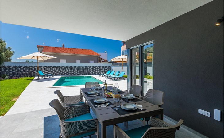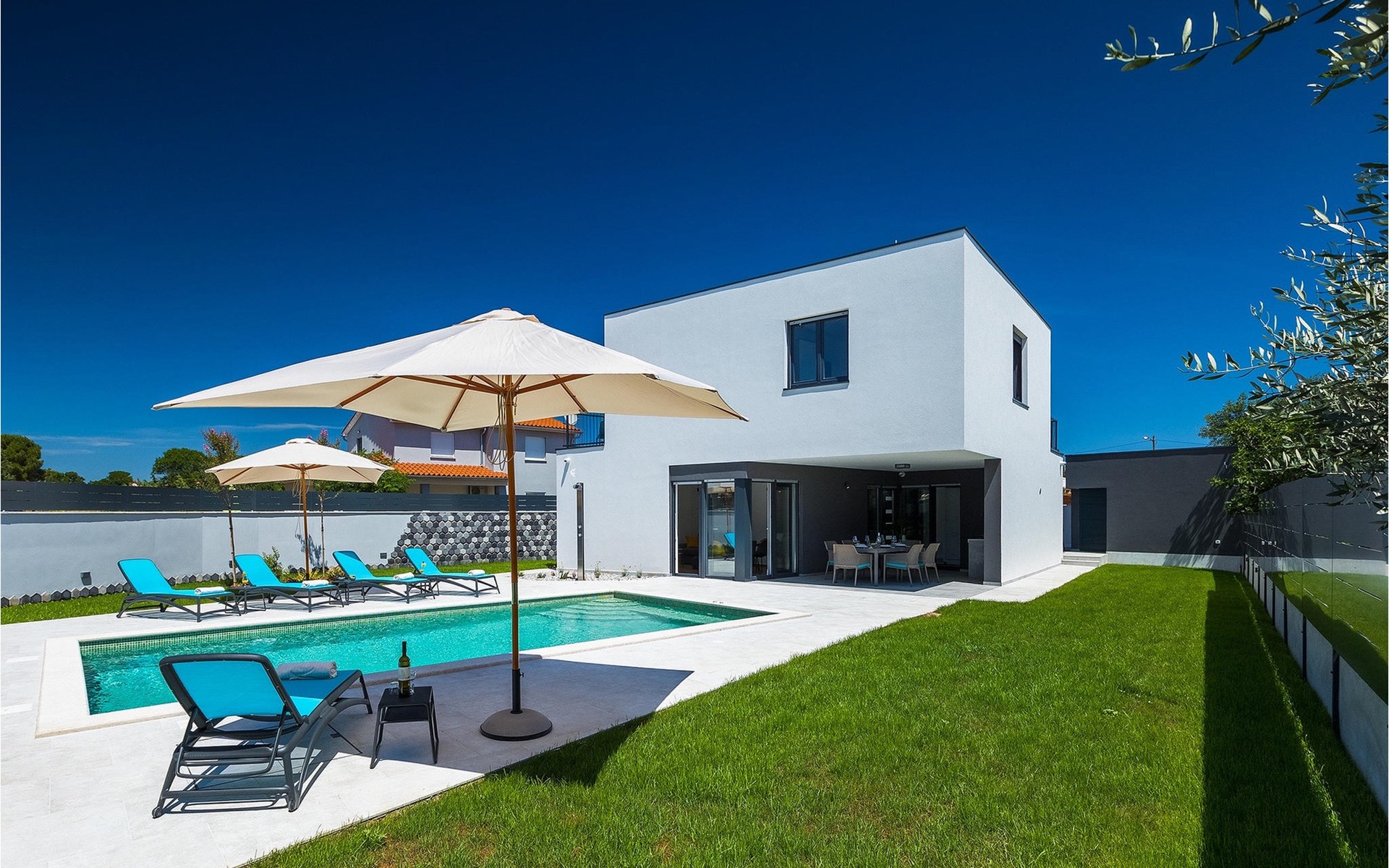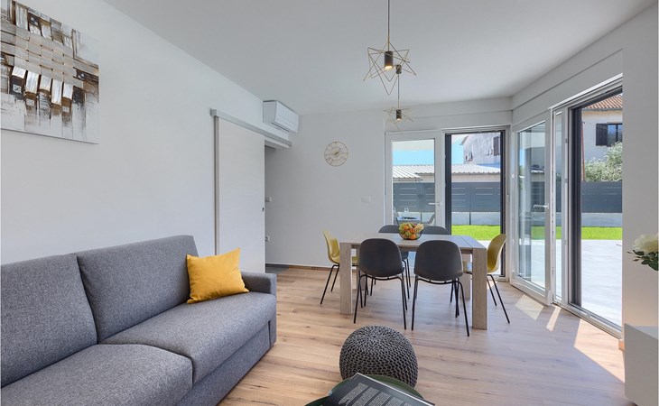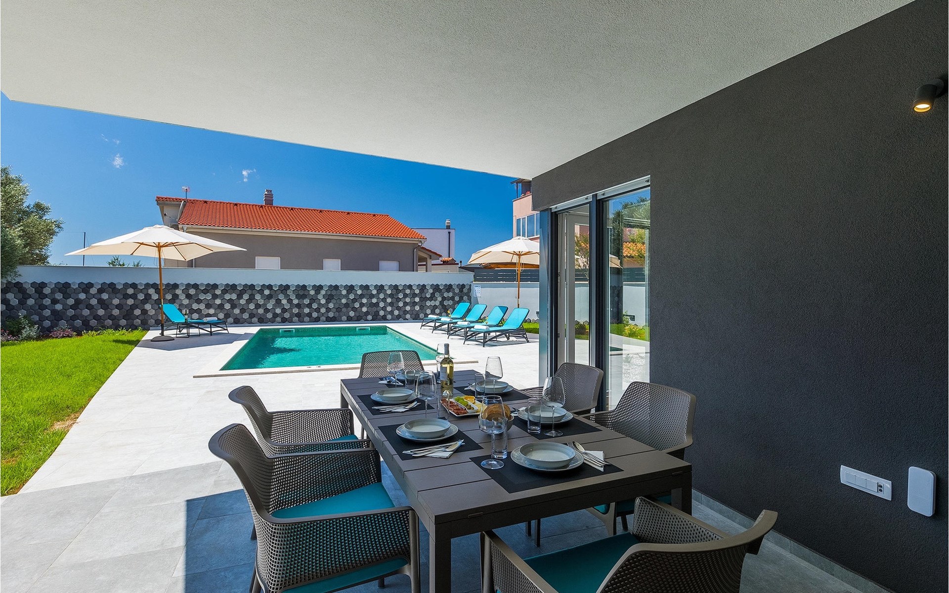 Villa Moderna is een prachtig vakantiehuis met 3 slaapkamers dat alles biedt voor een geweldige en ontspannen vakantie. De villa ligt in een rustige wijk in Pula en is slechts een paar kilometer verwijderd van de stranden van Pula of de nabijgelegen stad Medulin. De villa bestaat uit twee verdiepingen. De woonkamer en de volledig uitgeruste keuken met eethoek bevinden zich op de begane grond. Deze ruimte wordt overspoeld met licht dankzij grote glazen oppervlakken en heeft directe toegang tot de buitenruimte met de overdekte eethoek, waar je samen kunt zitten en genieten van al fresco dineren. Een wasruimte en een apart toilet bevinden zich ook op de begane grond. De bovenverdieping bestaat uit drie slaapkamers. Ze hebben allemaal een tweepersoonsbed, airconditioning, tv en een en-suite badkamer met douche. Het interieur van de villa is modern maar eenvoudig en gezellig, terwijl de buitenruimte met privézwembad zorgt voor ontspannende momenten. Daarnaast biedt de locatie vele mogelijkheden voor een actieve vakantie.Villa Moderna ligt in het zuidelijke deel van vIstrië, op slechts een paar kilometer van Pula. Pula is een van de belangrijkste toeristische steden in Istrië en biedt een verscheidenheid aan attracties voor cultuurliefhebbers. De ligging van de villa is zeer gunstig - de stranden van Medulin liggen op slechts 8 km afstand, terwijl alle delen van de stad Pula en alle voorzieningen die Pula biedt vlakbij liggen. In de omgeving kun je prachtige kleine Istrische stadjes bezoeken, natuurlijke stranden verkennen en gaan wandelen, fietsen of duiken. Zorg ervoor dat je tijdens je verblijf Istrische specialiteiten proeft. Een van de nabijgelegen plaatsen die zeker een bezoek waard is, is Rt Kamenjak.