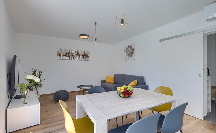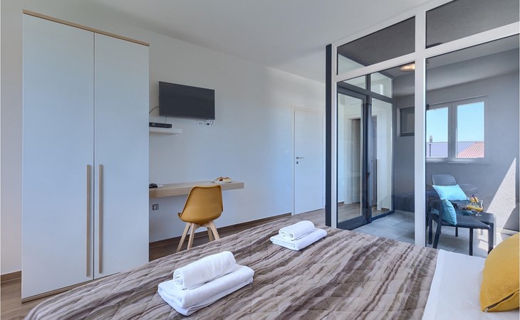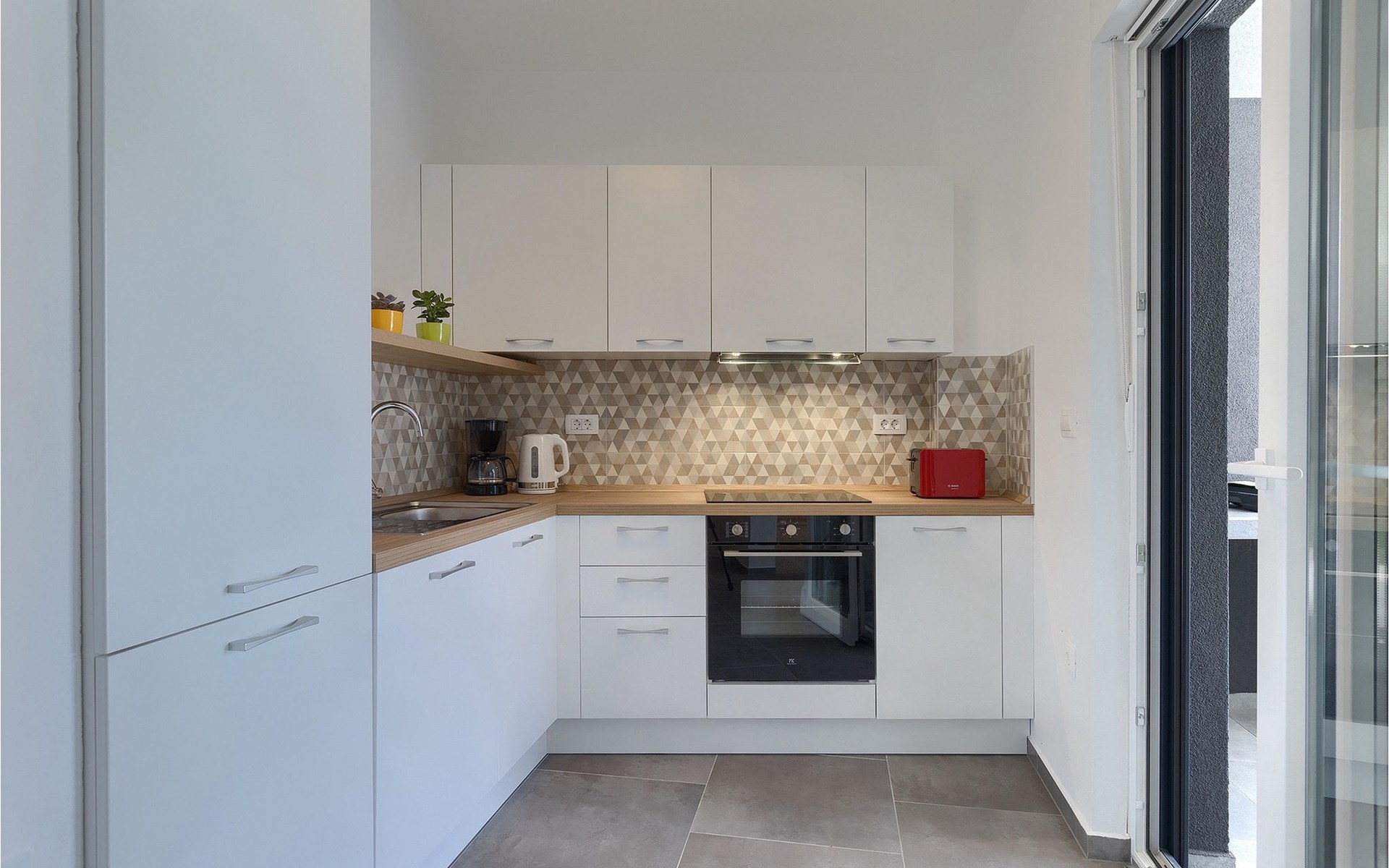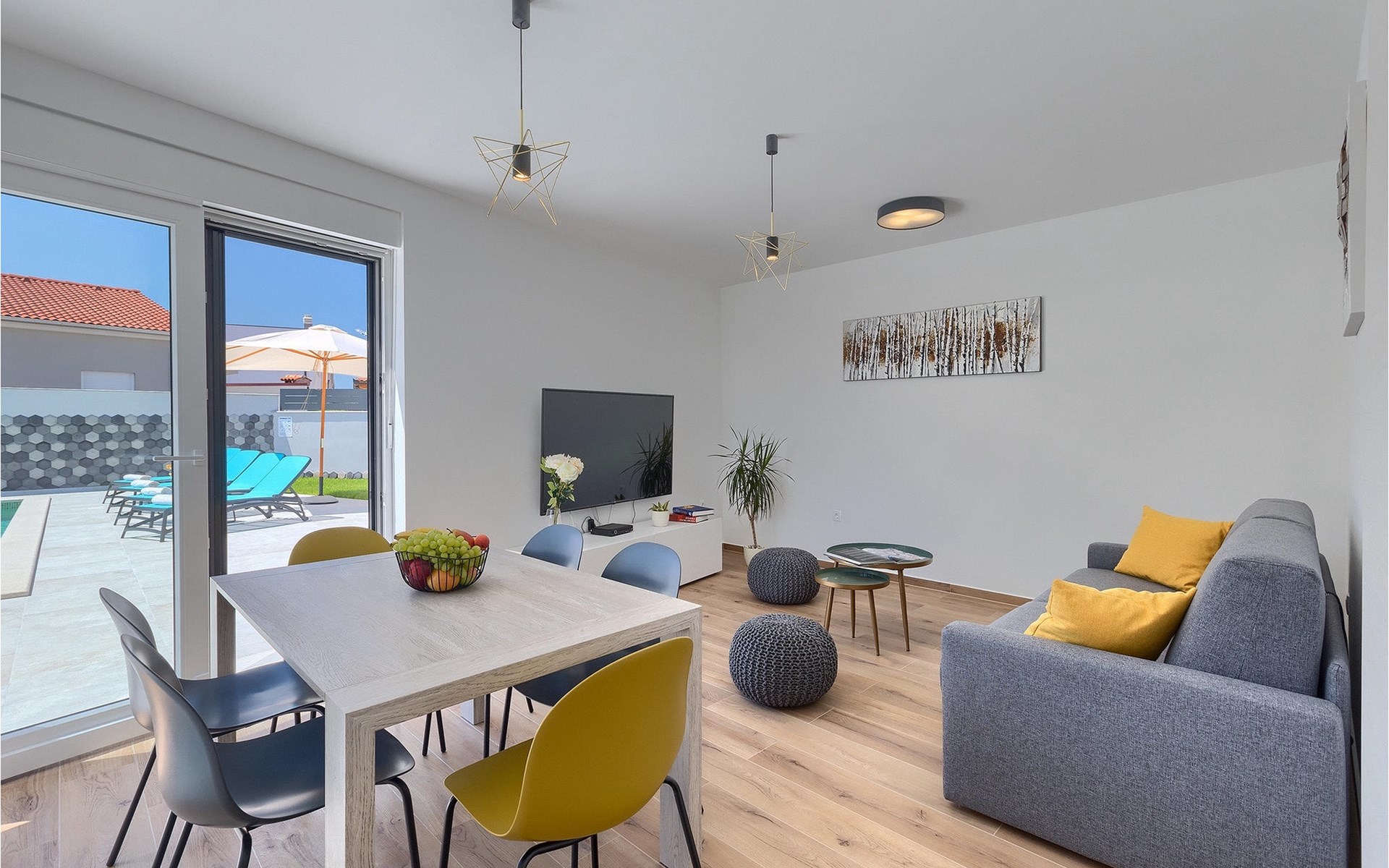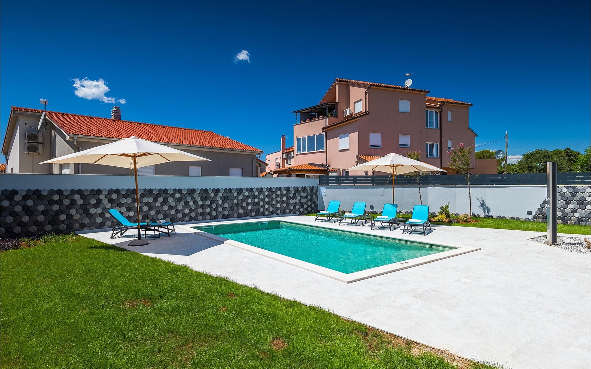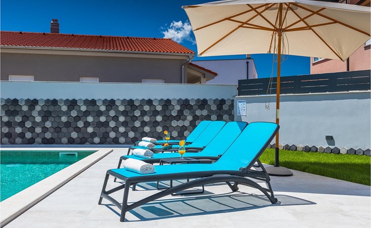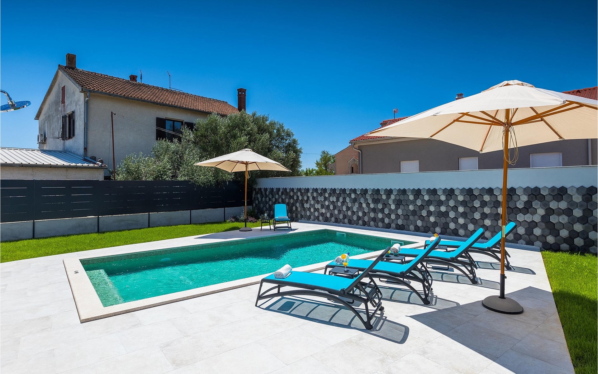 Villa Moderna is een prachtig vakantiehuis met 3 slaapkamers dat alles biedt voor een geweldige en ontspannen vakantie. De villa ligt in een rustige wijk in Pula en is slechts een paar kilometer verwijderd van de stranden van Pula of de nabijgelegen stad Medulin. De villa bestaat uit twee verdiepingen. De woonkamer en de volledig uitgeruste keuken met eethoek bevinden zich op de begane grond. Deze ruimte wordt overspoeld met licht dankzij grote glazen oppervlakken en heeft directe toegang tot de buitenruimte met de overdekte eethoek, waar je samen kunt zitten en genieten van al fresco dineren. Een wasruimte en een apart toilet bevinden zich ook op de begane grond. De bovenverdieping bestaat uit drie slaapkamers. Ze hebben allemaal een tweepersoonsbed, airconditioning, tv en een en-suite badkamer met douche. Het interieur van de villa is modern maar eenvoudig en gezellig, terwijl de buitenruimte met privézwembad zorgt voor ontspannende momenten. Daarnaast biedt de locatie vele mogelijkheden voor een actieve vakantie.Villa Moderna ligt in het zuidelijke deel van vIstrië, op slechts een paar kilometer van Pula. Pula is een van de belangrijkste toeristische steden in Istrië en biedt een verscheidenheid aan attracties voor cultuurliefhebbers. De ligging van de villa is zeer gunstig - de stranden van Medulin liggen op slechts 8 km afstand, terwijl alle delen van de stad Pula en alle voorzieningen die Pula biedt vlakbij liggen. In de omgeving kun je prachtige kleine Istrische stadjes bezoeken, natuurlijke stranden verkennen en gaan wandelen, fietsen of duiken. Zorg ervoor dat je tijdens je verblijf Istrische specialiteiten proeft. Een van de nabijgelegen plaatsen die zeker een bezoek waard is, is Rt Kamenjak.