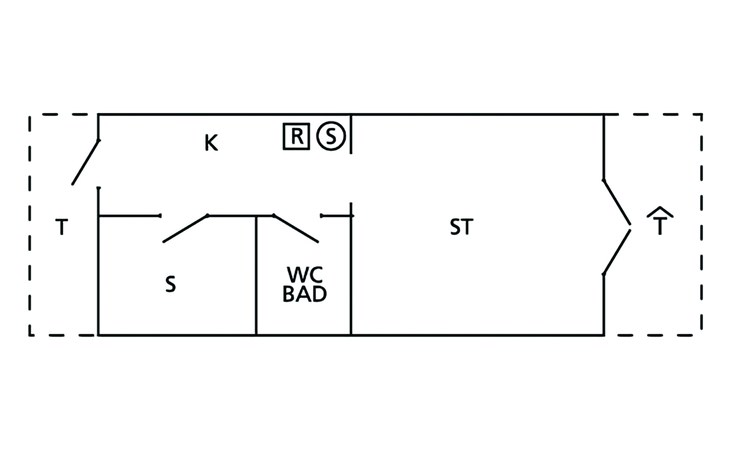 Opmerking: De ingang is aan de achterkant op de begane grond, d.w.z. de flat heeft geen trappen.
