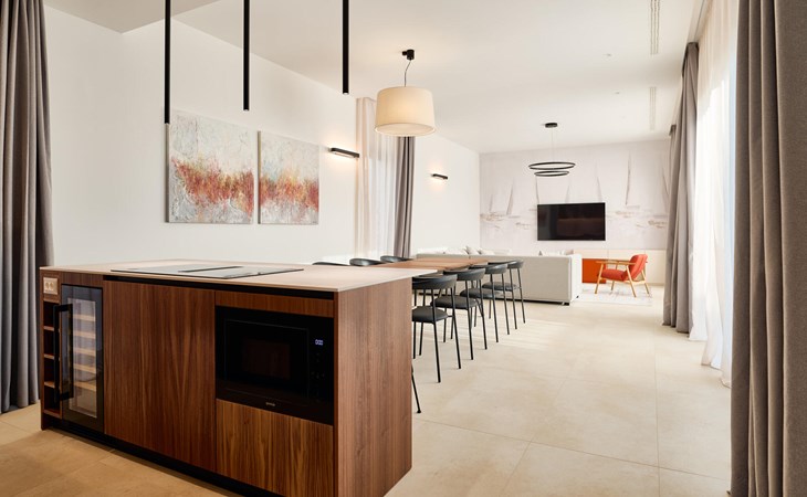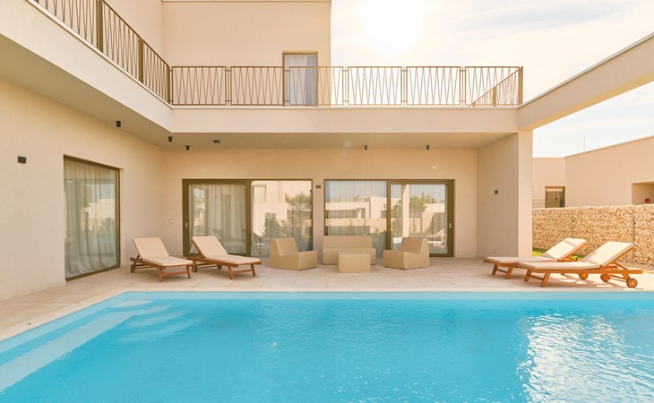 Stap naar buiten en geniet van de luxe van het privézwembad, dat direct toegankelijk is vanaf het terras. Ga liggen op een van de ligstoelen en ontspan in de zon. Gebruik het overdekte gedeelte voor je eerste kopje koffie in de ochtend of breng hier de avond door met een glas wijn. De eerste verdieping biedt ook een prachtig uitzicht op zee.