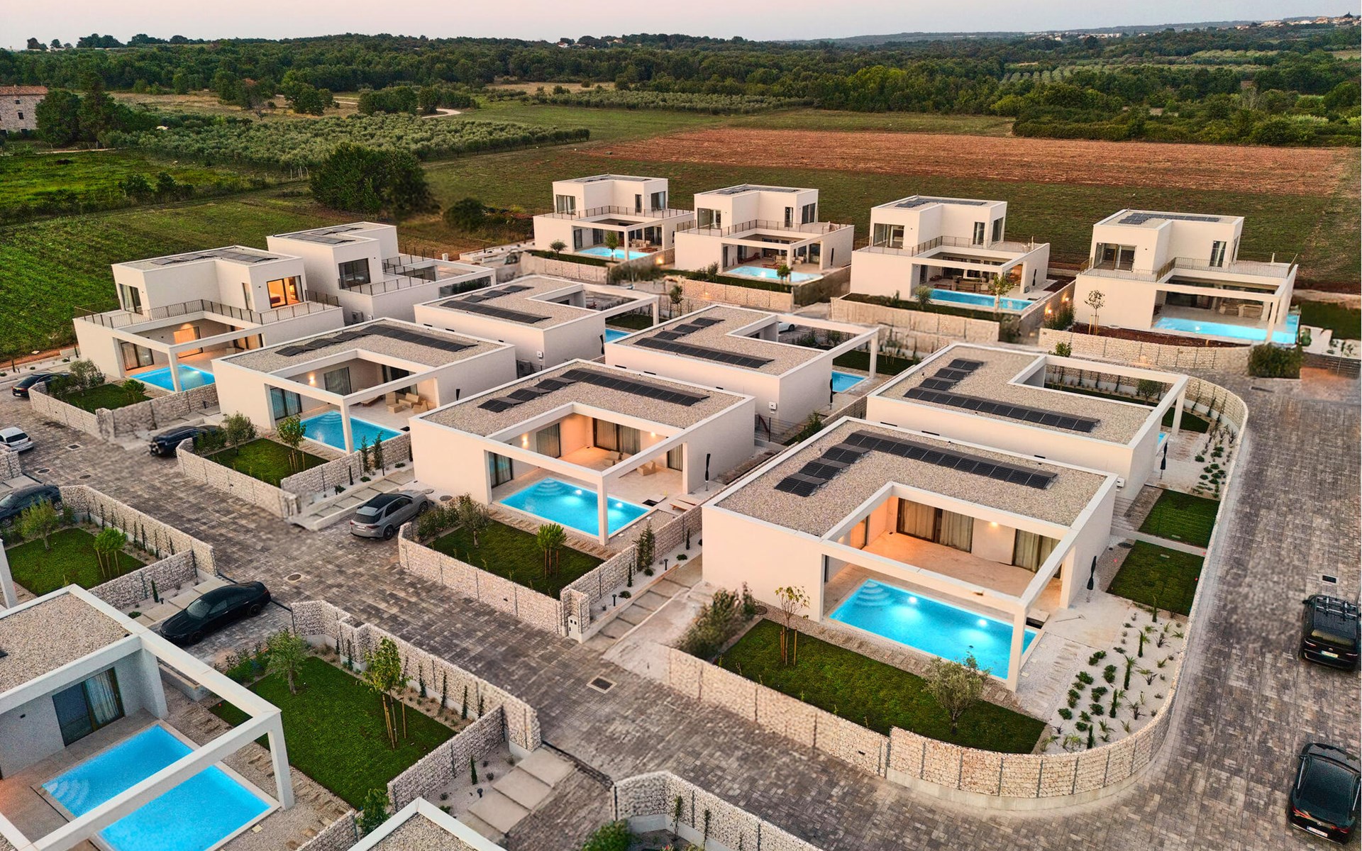 Dit resort in het pittoreske stadje Tar combineert luxe op harmonieuze wijze met de natuurlijke schoonheid van het Istrische landschap. Alle villa's zijn ontworpen als privé-eenheden, elk met een eigen tuin, zwembad en parkeerplaats om de bewoners maximaal comfort en privacy te bieden. Er is ook een centraal gebouw met receptie.