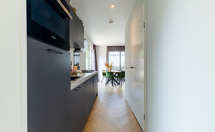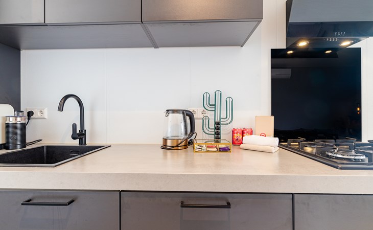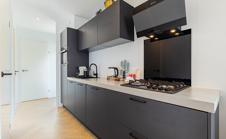 De keuken heeft alles wat je nodig hebt om uitgebreid te koken: een kookplaat, combi-magnetron, oven, koelkast met vriesvakje en een vaatwasser. Ook aan extra comforts is gedacht: van een grillplaat tot toaster, shaker, melkopschuimer en zelfs een Nespresso-apparaat met waterkoker. Je hoeft dus niets te missen van je eigen keukencomfort.