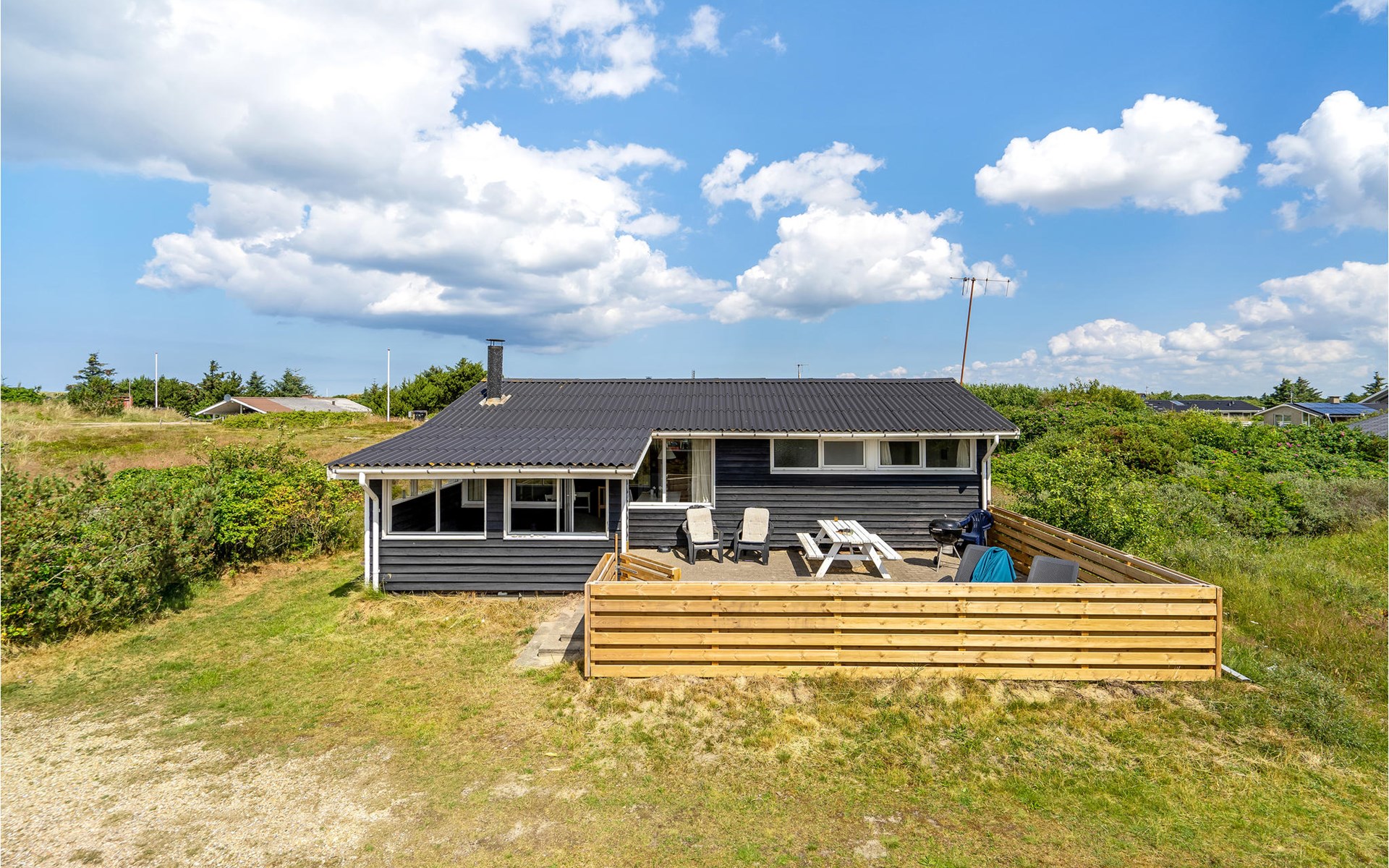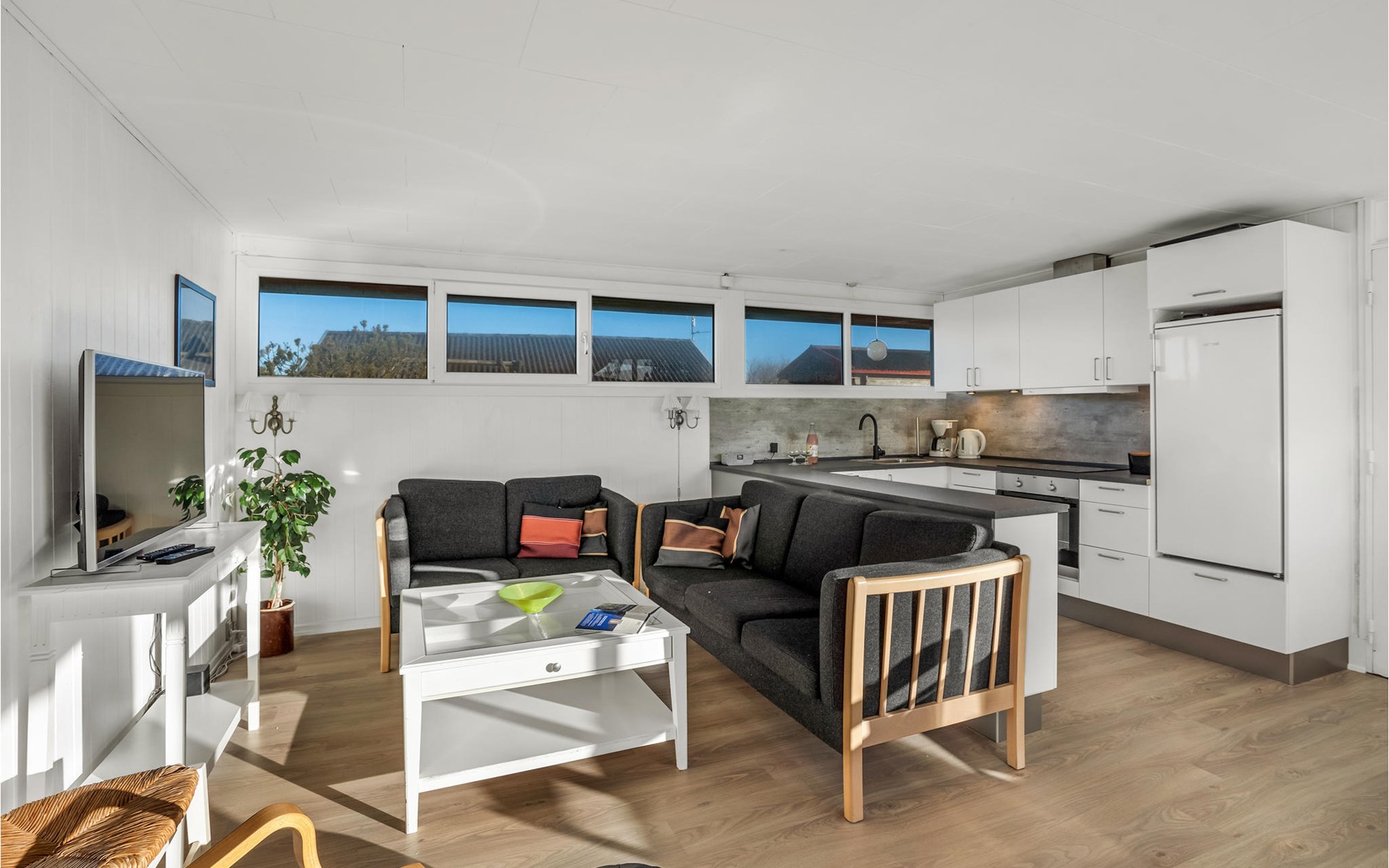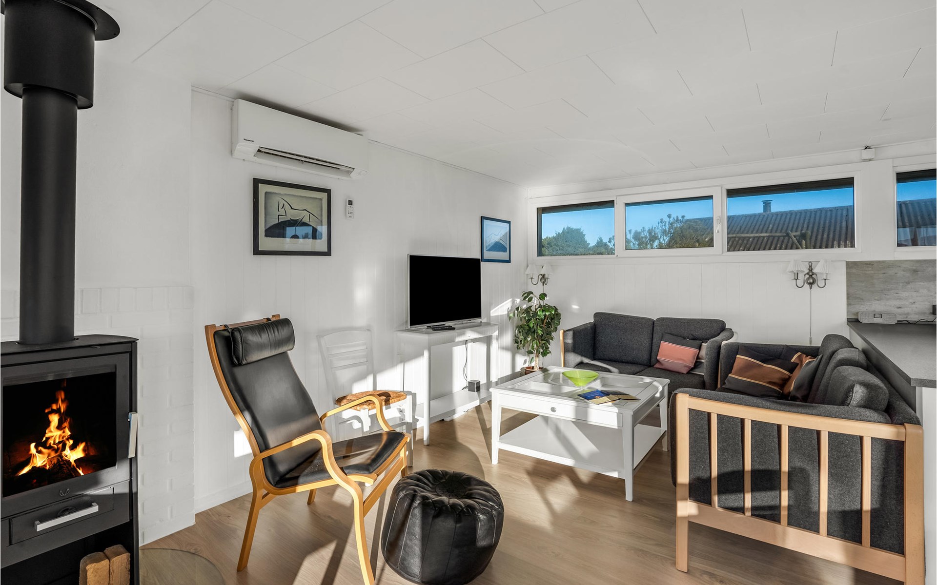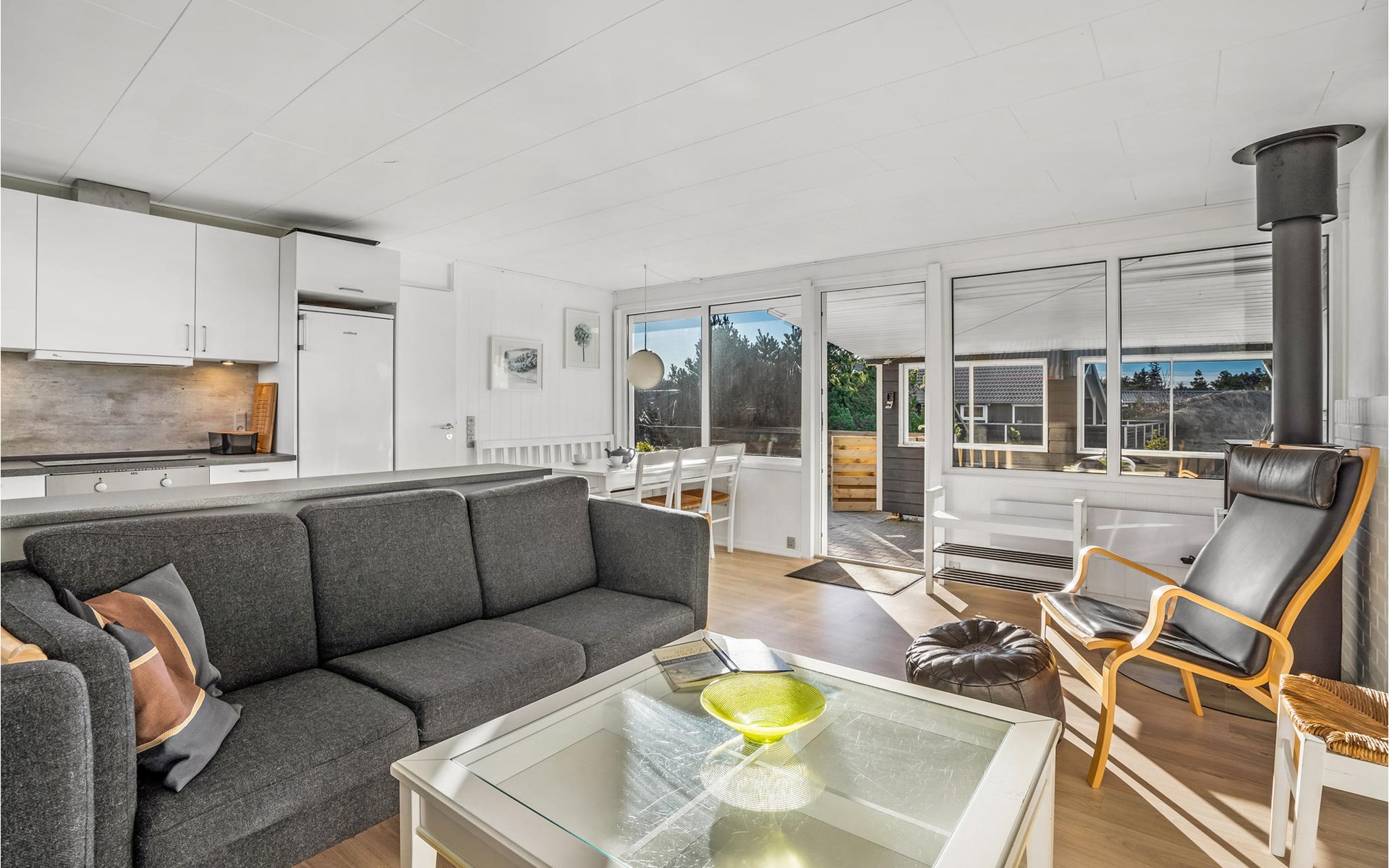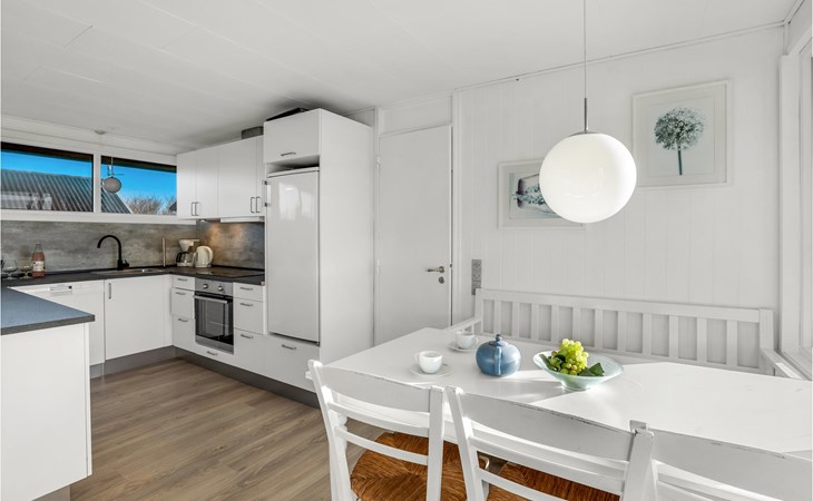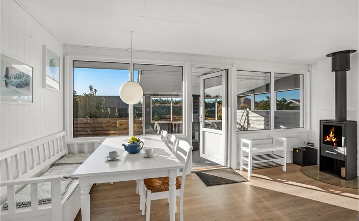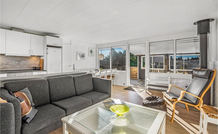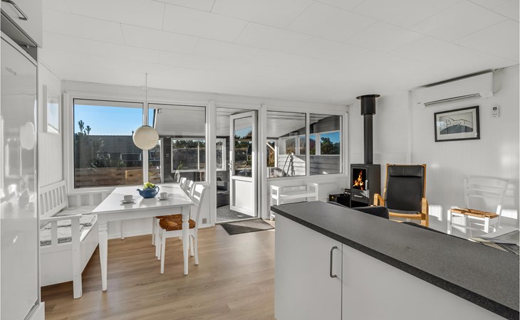Je vakantiehuis biedt je een eenvoudige maar comfortabele uitvalsbasis voor een ontspannen vakantie in Bjerregård. Het huis ligt op een mooi natuurgrondstuk. Het huis is licht en vriendelijk en heeft een moderne vakantiehuisstijl. De woonkamer heeft een gezellige zithoek met een houtkachel. De grote ramen laten veel licht binnen en bieden een prachtig uitzicht op de omgeving. Direct aangrenzend is de open eethoek, ideaal voor gezellige maaltijden. De moderne keuken heeft alles wat je nodig hebt om eenvoudige maaltijden te bereiden.