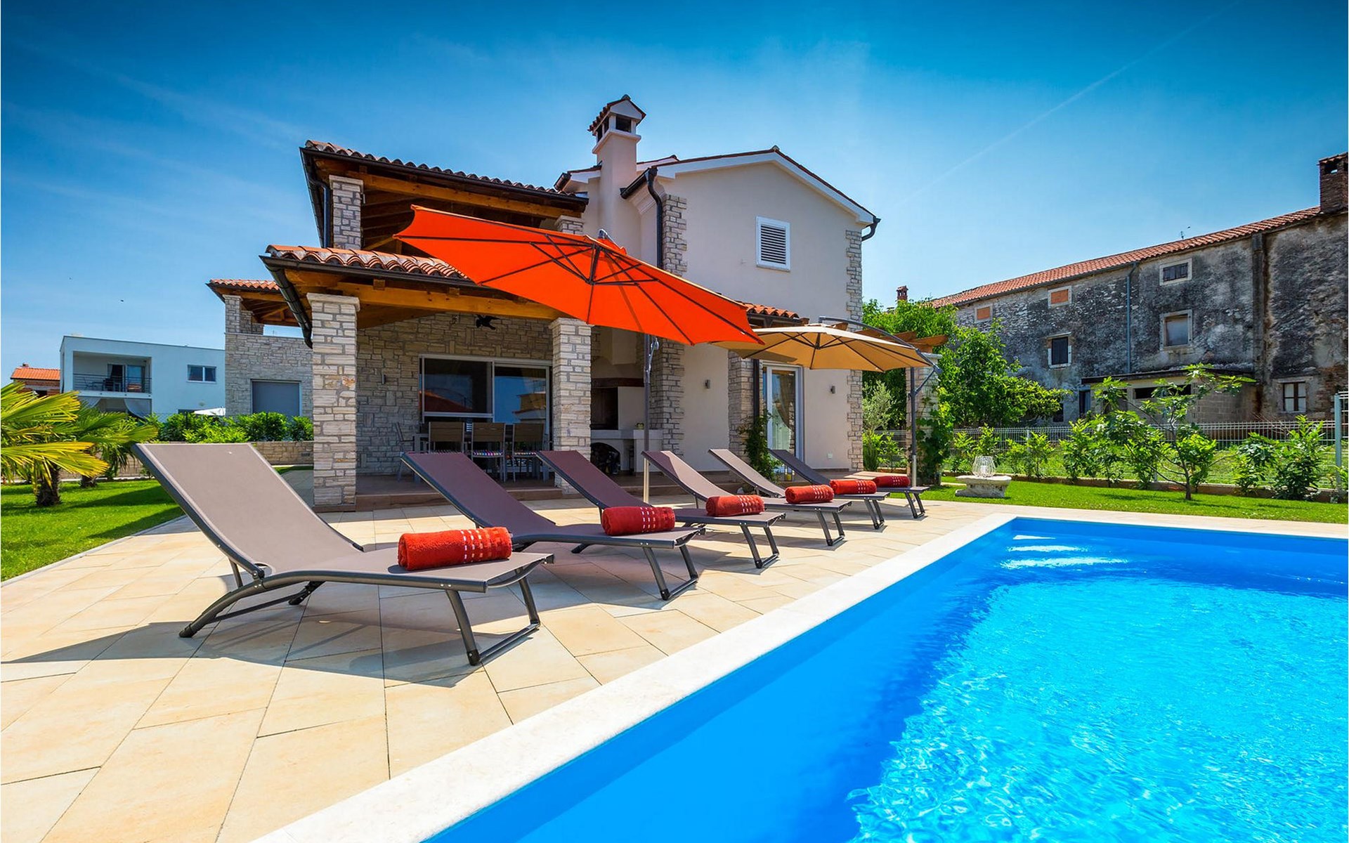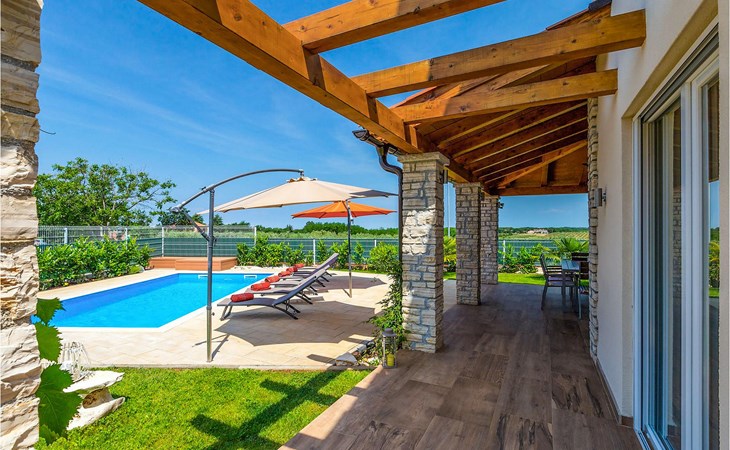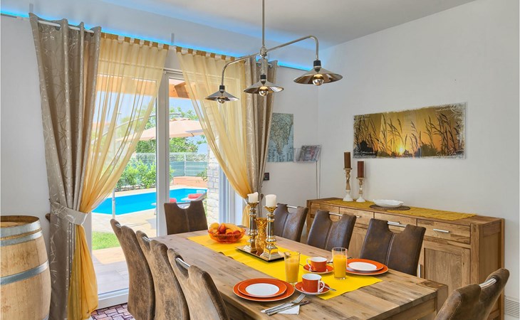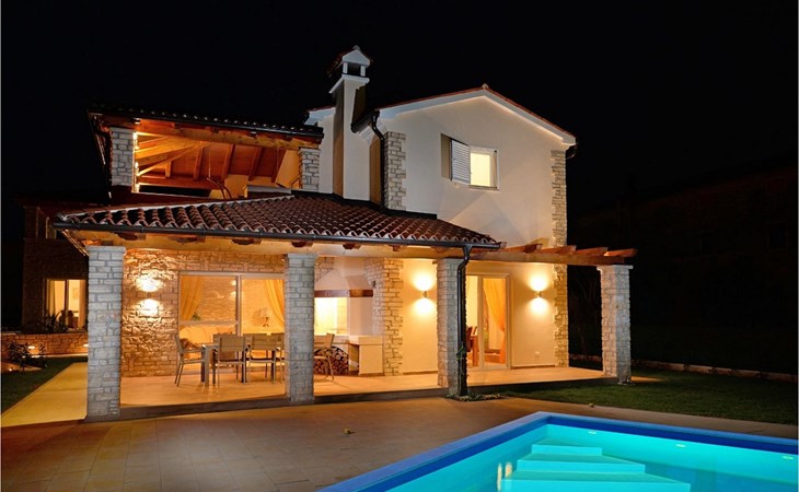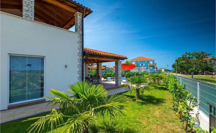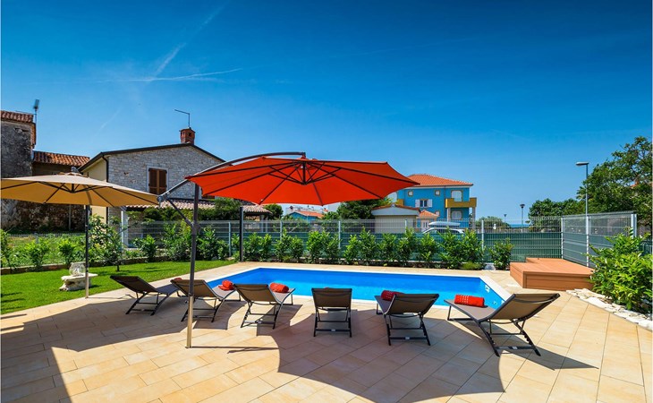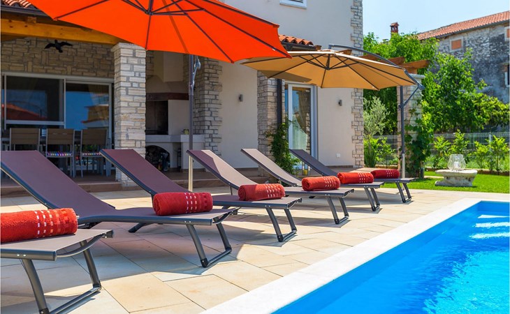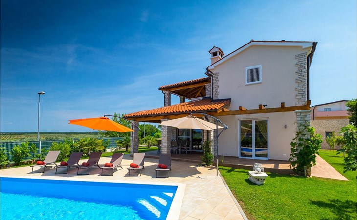 Met zijn prachtige rustige locatie lost deze prachtige villa het dilemma platteland of kust op, omdat het wordt omringd door idyllische olijfgaarden, beboste heuvels en smaragdgroene weiden, terwijl binnen handbereik de populaire kustplaats Novigrad ligt, waar een ruime keuze aan winkels, bars, cafés en restaurants te vinden is, evenals een mooie jachthaven en talloze stranden. Deze nieuw gebouwde villa is zorgvuldig ontworpen voor het vakantieseizoen en is ingericht in een moderne stijl met een prachtige collage van texturen en kleuren om een gezellige sfeer te creëren.