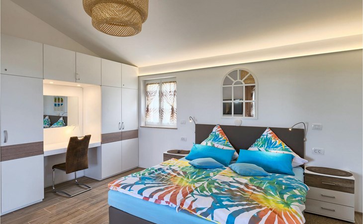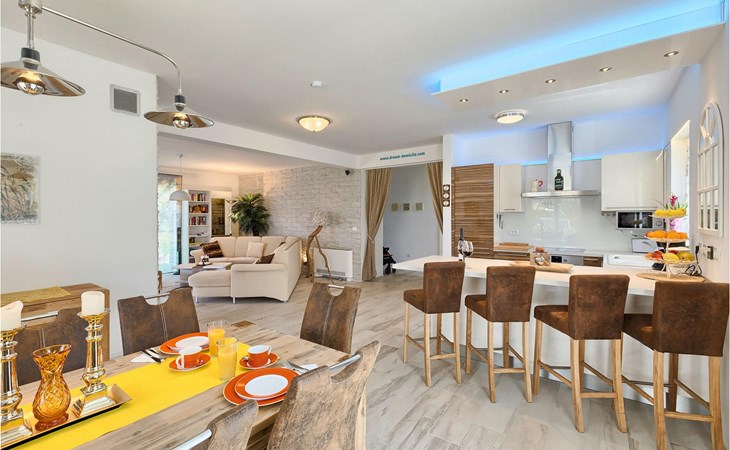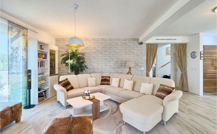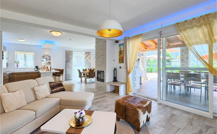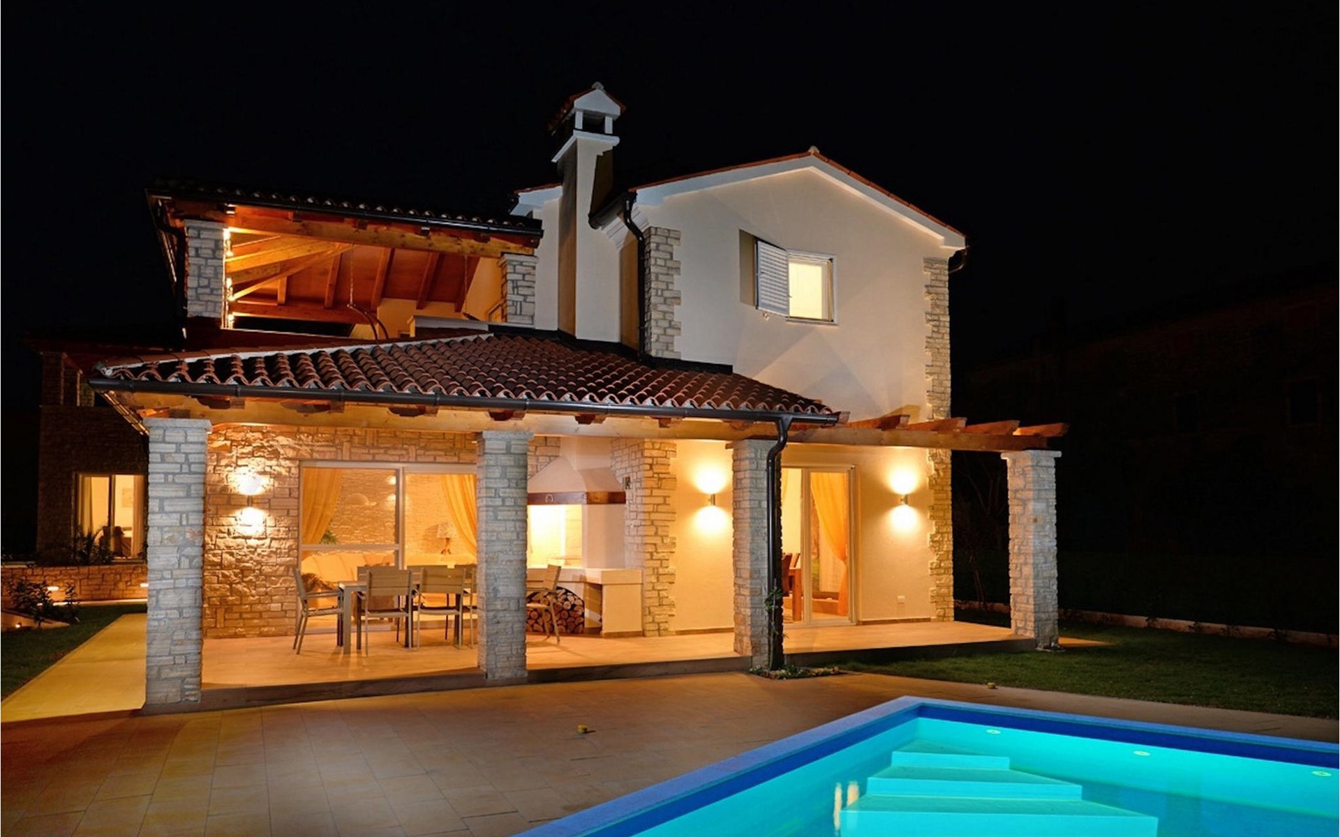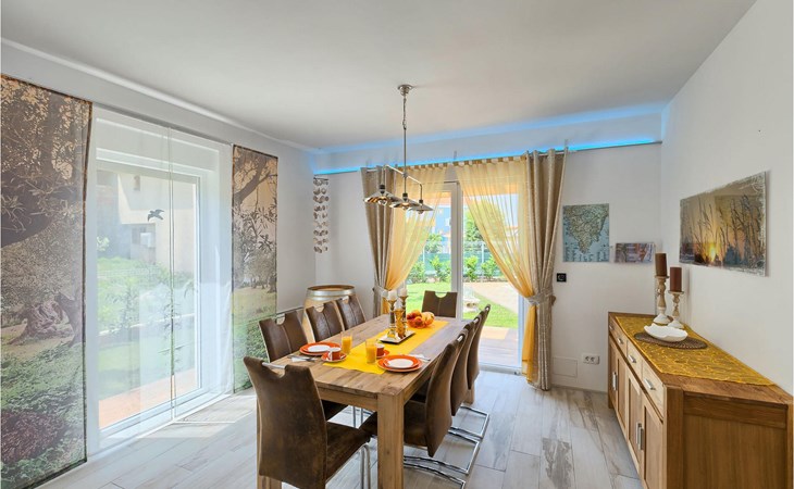 Met zijn prachtige rustige locatie lost deze prachtige villa het dilemma platteland of kust op, omdat het wordt omringd door idyllische olijfgaarden, beboste heuvels en smaragdgroene weiden, terwijl binnen handbereik de populaire kustplaats Novigrad ligt, waar een ruime keuze aan winkels, bars, cafés en restaurants te vinden is, evenals een mooie jachthaven en talloze stranden. Deze nieuw gebouwde villa is zorgvuldig ontworpen voor het vakantieseizoen en is ingericht in een moderne stijl met een prachtige collage van texturen en kleuren om een gezellige sfeer te creëren.