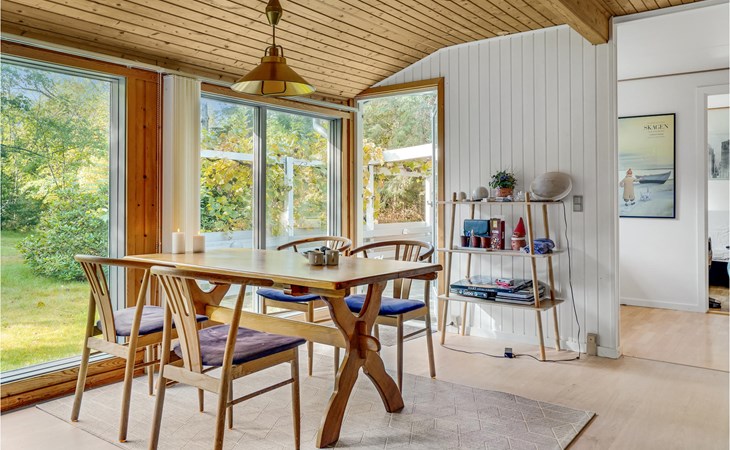 Dit praktische vakantiehuis wacht op u en uw familie in Ellinge Lyng. Uw viervoetige familieleden zijn hier ook welkom. Breng uw familietijd door in de lichtovergoten woonkamer, waar u samen kunt genieten van de kachel terwijl u speelt, ontspant of samen eet.