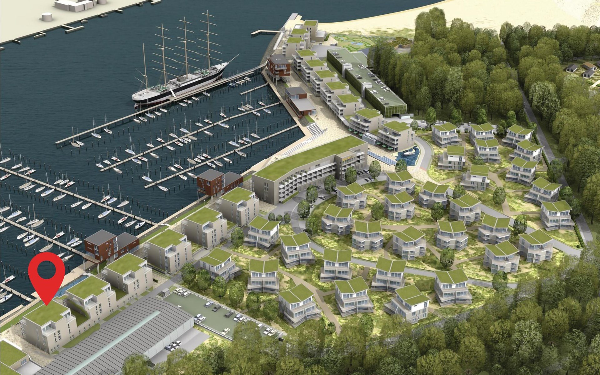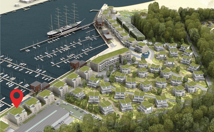 Dit exclusieve vakantieappartement in een promenadevilla ligt in het hart van het nieuwe vakantieresort BeachBay in Travemünde aan de Baltische kust van Sleeswijk-Holstein.