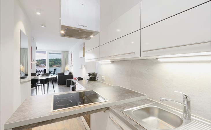 Het appartement is stijlvol, hoogwaardig en modern ingericht. Een bijzonder hoogtepunt is de badkamer, je persoonlijke kleine wellnessruimte met sauna, whirlpool en stoombad met geïntegreerde regendouche. Het feel-good programma wordt voortgezet in de woonkamer, waar de flakkerende vlammen van de bio-ethanol open haard de kamer in een bijzonder gezellig licht baden. De bank kan in een paar eenvoudige stappen worden omgebouwd tot twee comfortabele slaapgedeeltes.
