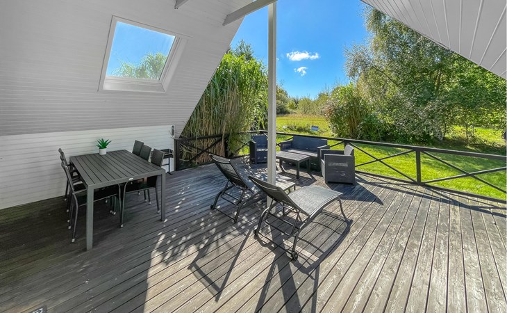 Open de deuren naar het gedeeltelijk overdekte terras en breng de zonnige uren buiten door. Ga liggen op de ligstoelen en lees een goed boek of zit samen aan de eettafel. Gebruik de gezellige loungemeubels voor ontspannen avonden met een glas wijn. De ruime tuin nodigt kinderen uit om te spelen en biedt tegelijkertijd veel privacy.