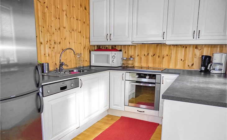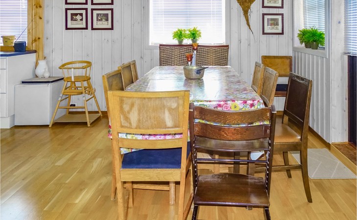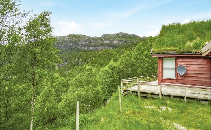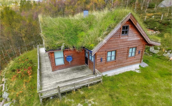 Met zijn bruin geschilderde muren en weelderig gras op het dak past dit vakantiehuis perfect in de prachtige natuurlijke omgeving. Op mooie dagen kunt u vanaf het grote terras genieten van het uitzicht en de omgeving. In de tuin is er ruimte voor balspelen en buitenspelen, perfecte omstandigheden voor kinderen! Voor degenen die geïnteresseerd zijn in vissen is er hier goed te vissen in zowel rivieren als meren. Het wordt aanbevolen om het zalmvissen in Bjerkreimselva te proberen (visvergunning vereist). U bent ook heel dicht bij geweldige wandelgebieden.