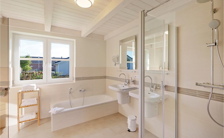 Het vakantiehuis ligt op slechts een paar honderd meter van de Noordzee en het altijd groene strand van Dagebüll, waar je perfect kunt zwemmen. De vele dijken rondom bieden perfect terrein voor fietsers - je vindt een fietsverhuurwinkel in het vakantiedorp. In het centrum van Dagebüll, dat direct aan de vakantiehuizen grenst, vind je kleine winkeltjes, restaurants en een winkel. De veerboten naar de Noordzee-eilanden Amrum en Föhr vertrekken direct aan de overkant - perfect voor een dagtocht! Vanuit de nabijgelegen haven in Schlüttsiel (ca. 8 km) kun je ook de kleine Halligen-eilanden Hooge en Langeneß snel en gemakkelijk per boot bereiken. Dagebüll is ook ideaal gelegen voor een dagtocht naar Sylt, want vanuit het naburige Niebüll (ca. 12 km) kun je met de trein in slechts een half uur rechtstreeks naar Westerland reizen.